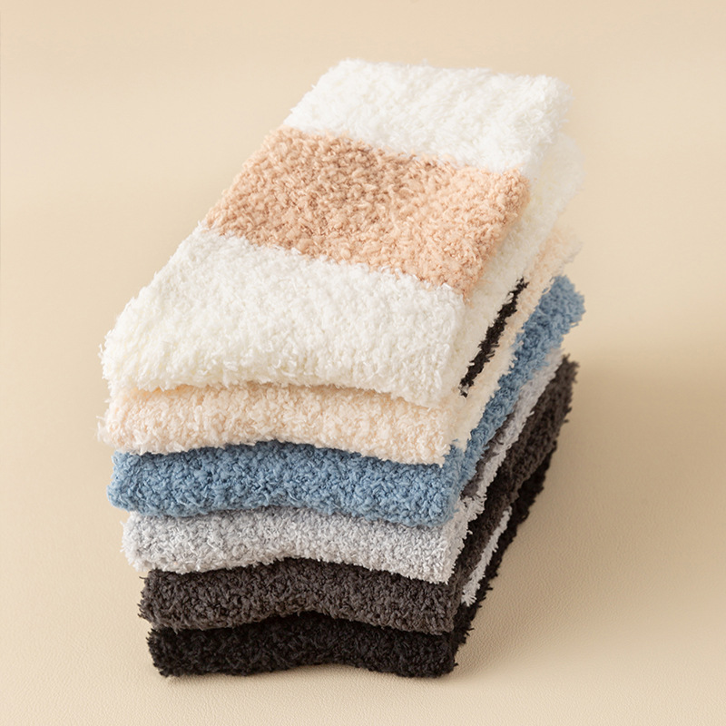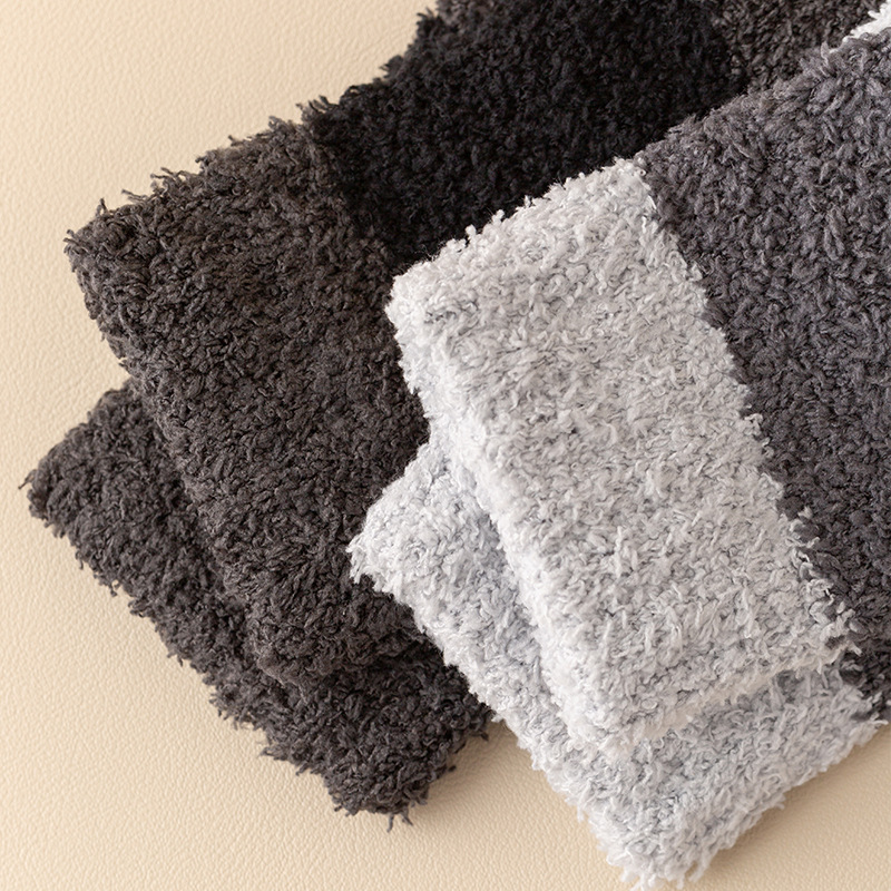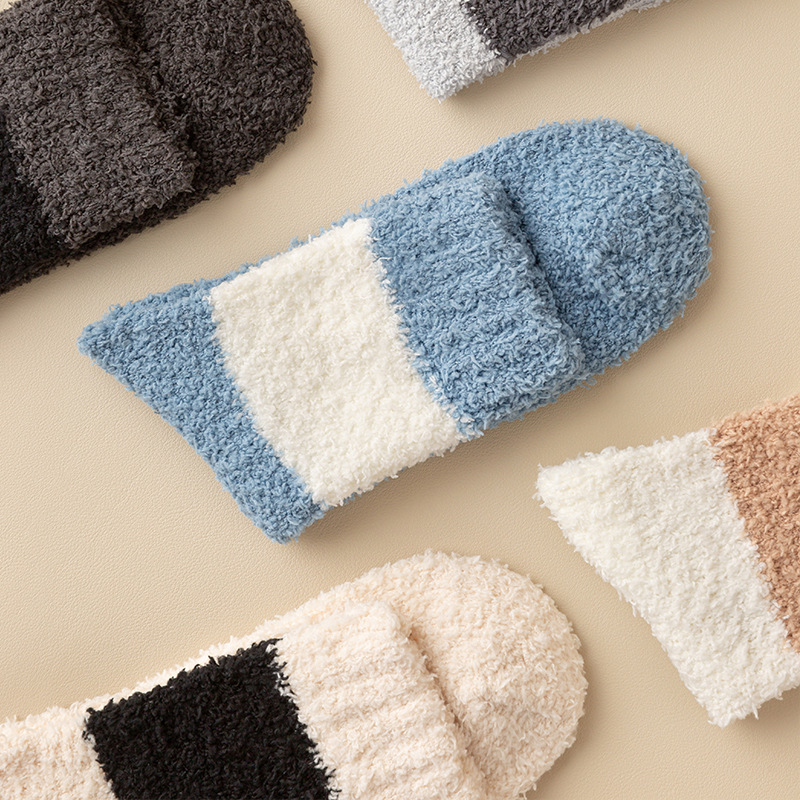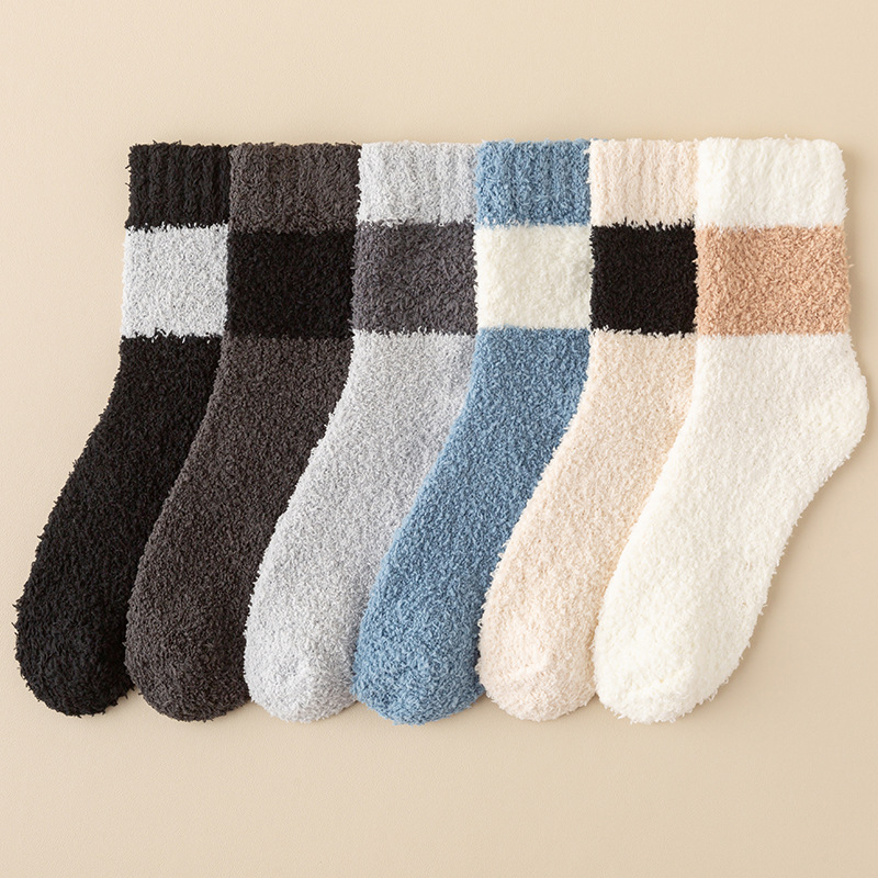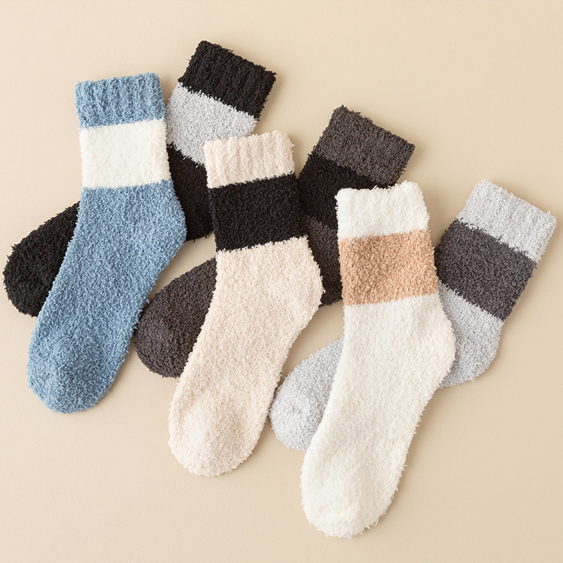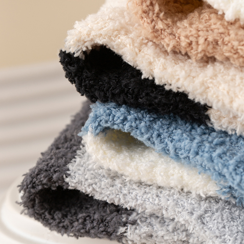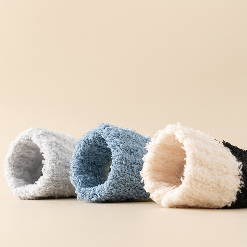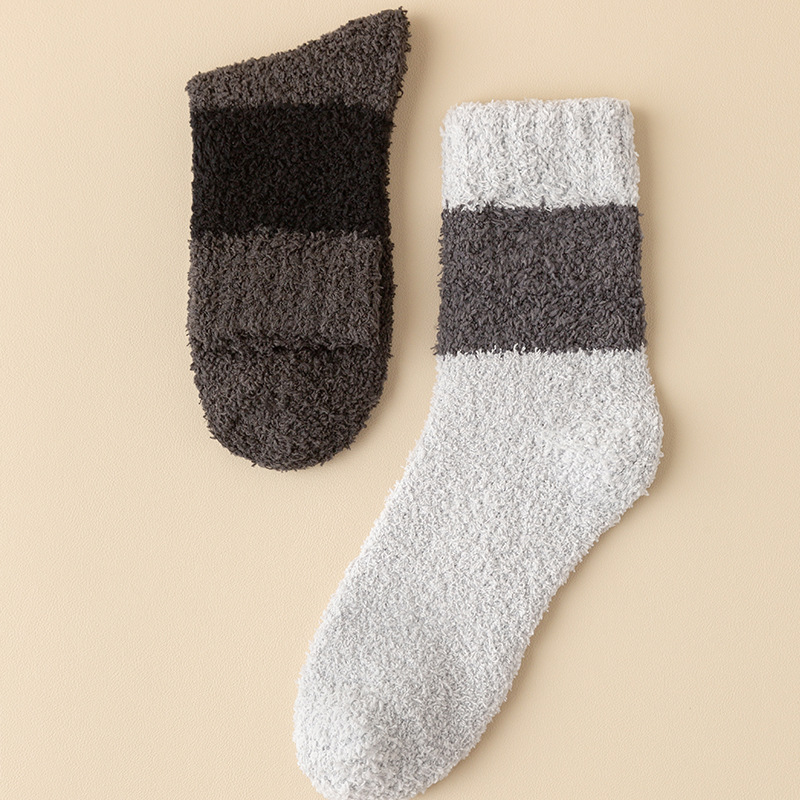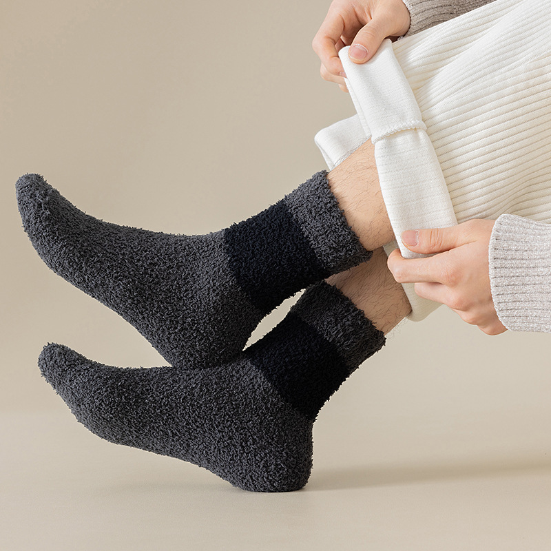 가을 겨울 새로운 산호 벨벳 양말 남성용 종아리 중간 양말 색상 일치 두꺼운 벨벳 수면 양말 따뜻한 바닥 양말 도매스토어 가기