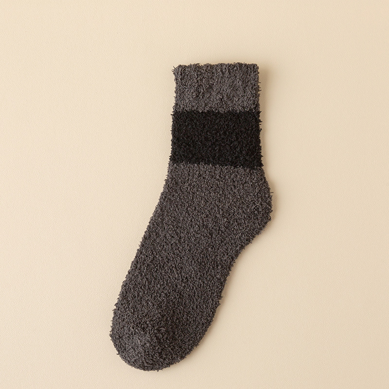 가을 겨울 새로운 산호 벨벳 양말 남성용 종아리 중간 양말 색상 일치 두꺼운 벨벳 수면 양말 따뜻한 바닥 양말 도매
