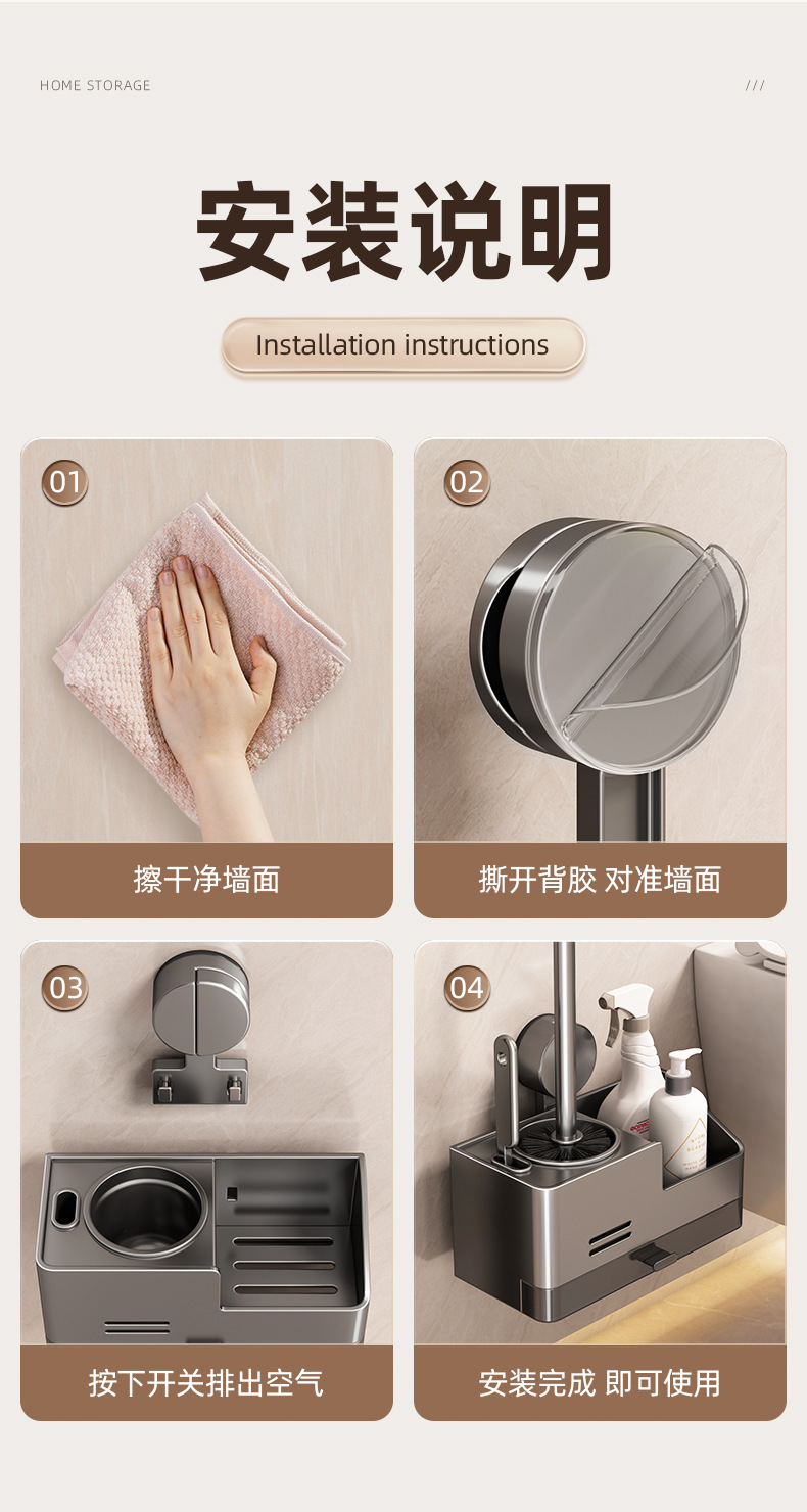 • 공간 알루미늄 흡입 컵 변기 브러시 [배수 트레이 포함]
