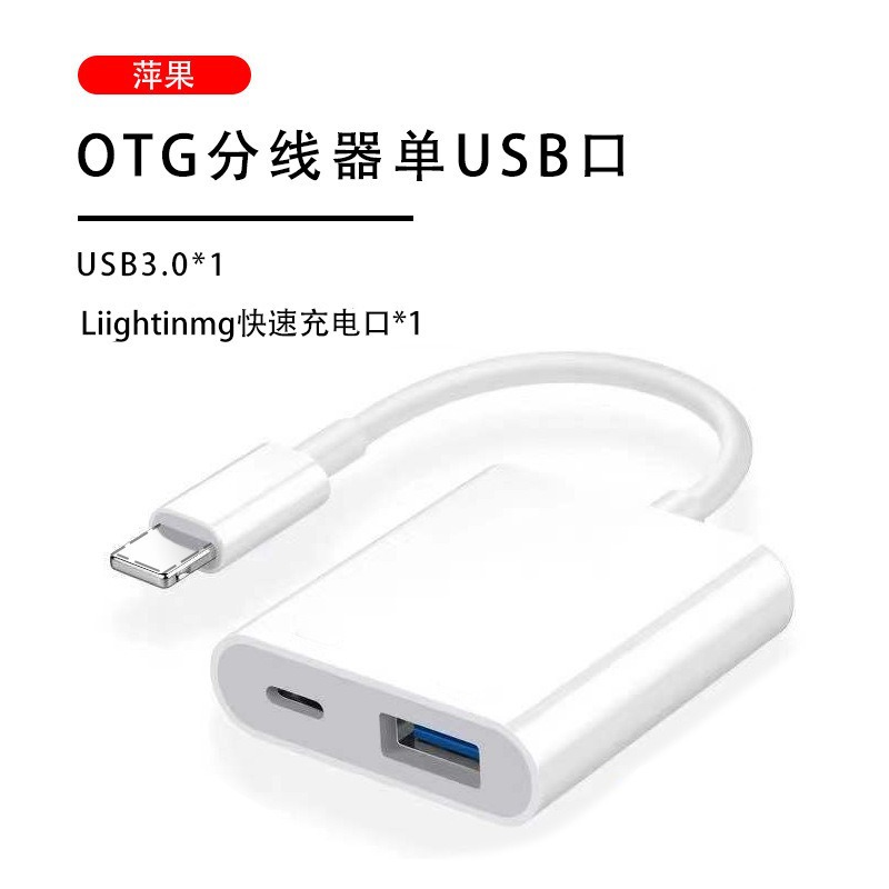 产品功能:苹果 OTG 二合一转接器(USB口+Lighting充电口)
