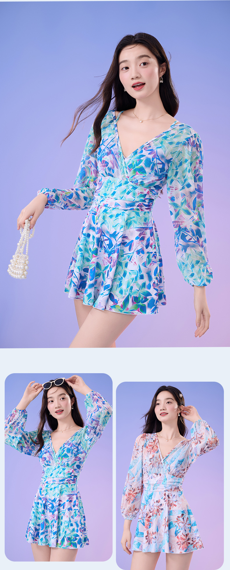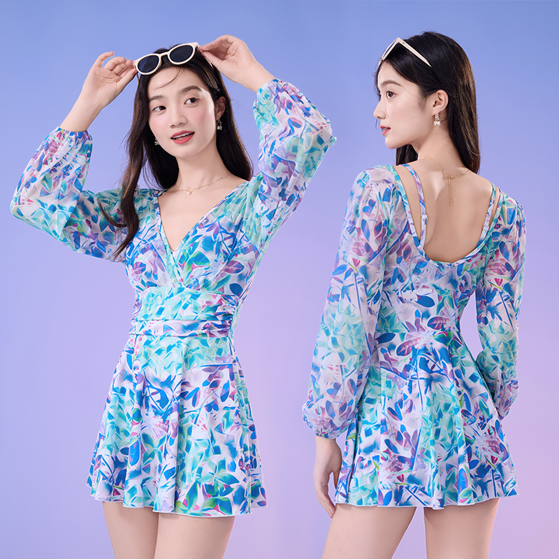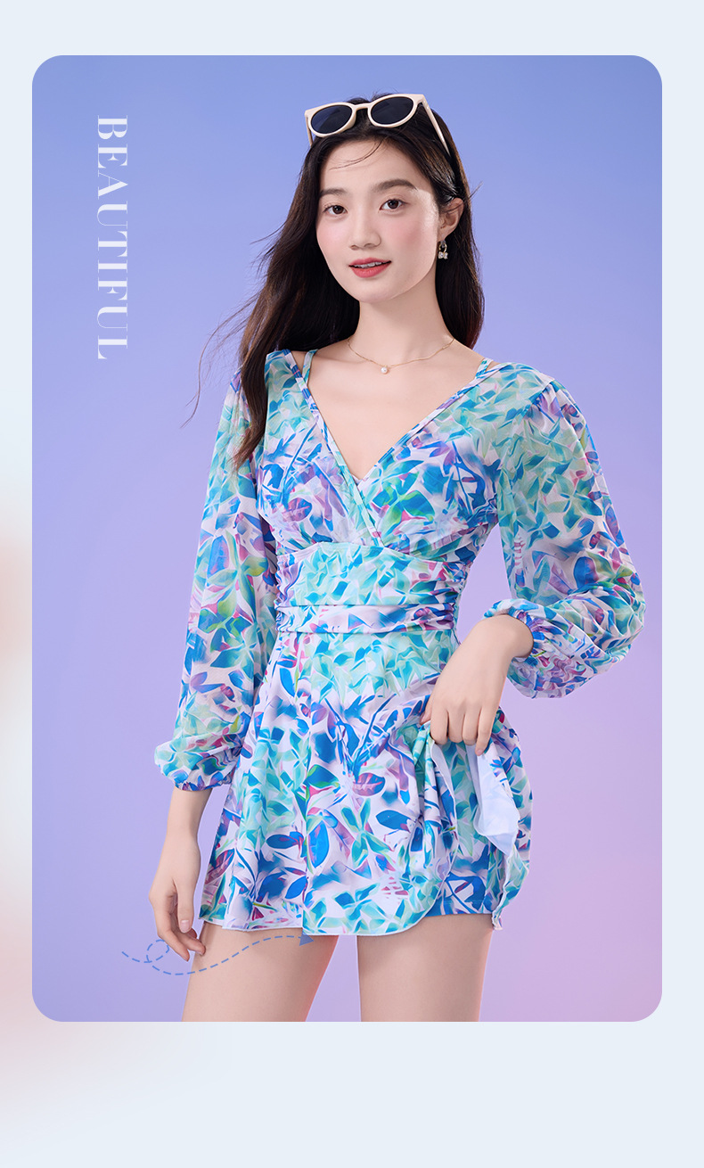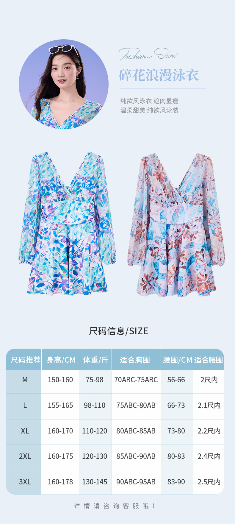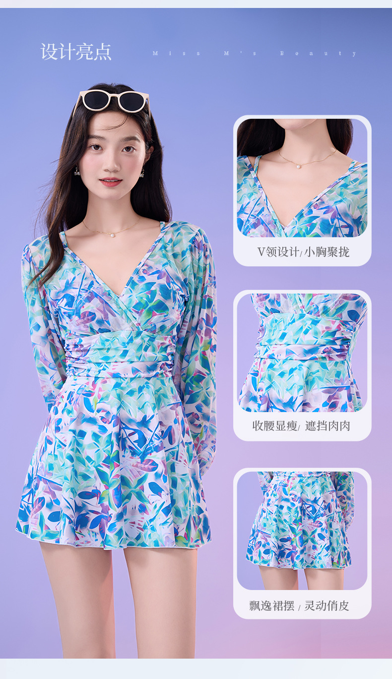 뚱뚱한 여자를 위한 플러스 사이즈 수영복, 살을 커버하고 날씬해 보이는 원피스 수영복, 해변 온천 브이넥 블루 꽃무늬 수영복스토어 가기