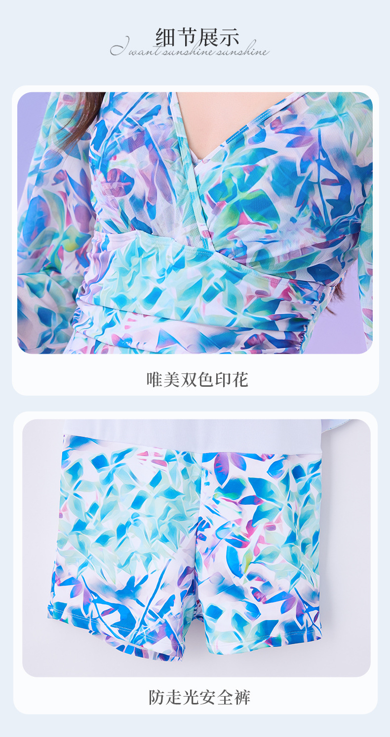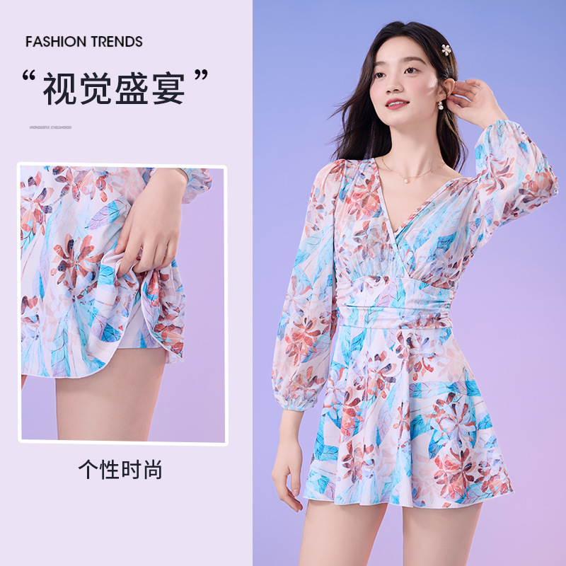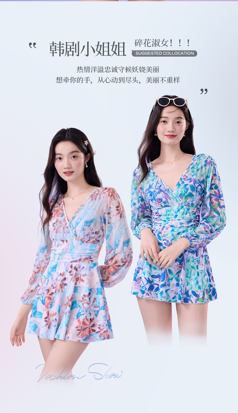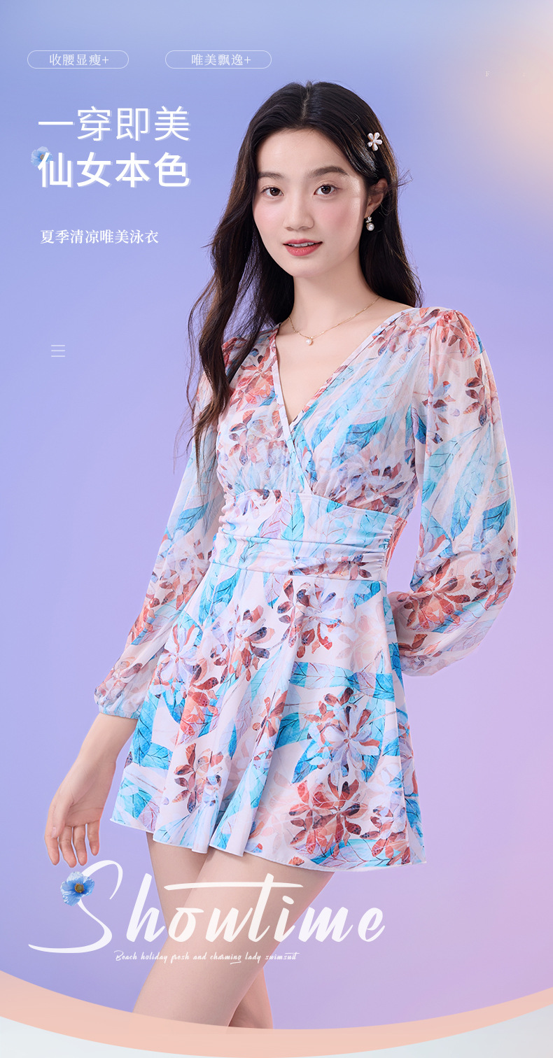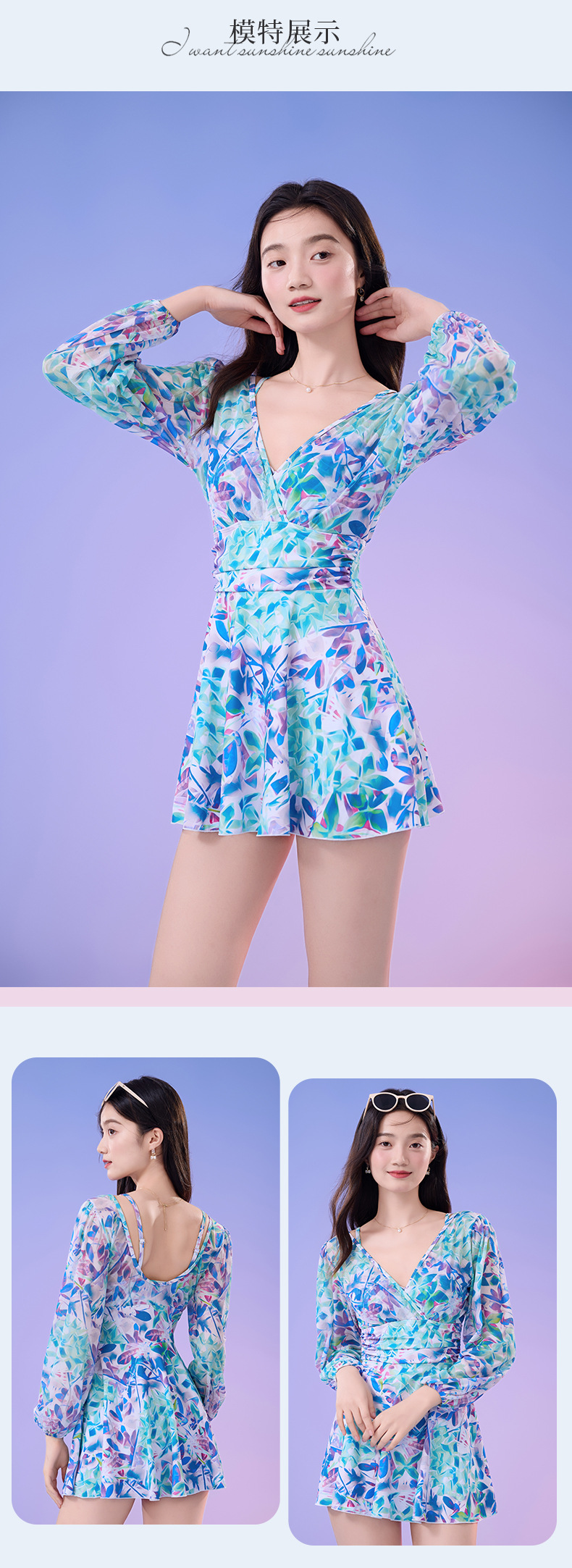 뚱뚱한 여자를 위한 플러스 사이즈 수영복, 살을 커버하고 날씬해 보이는 원피스 수영복, 해변 온천 브이넥 블루 꽃무늬 수영복스토어 가기
