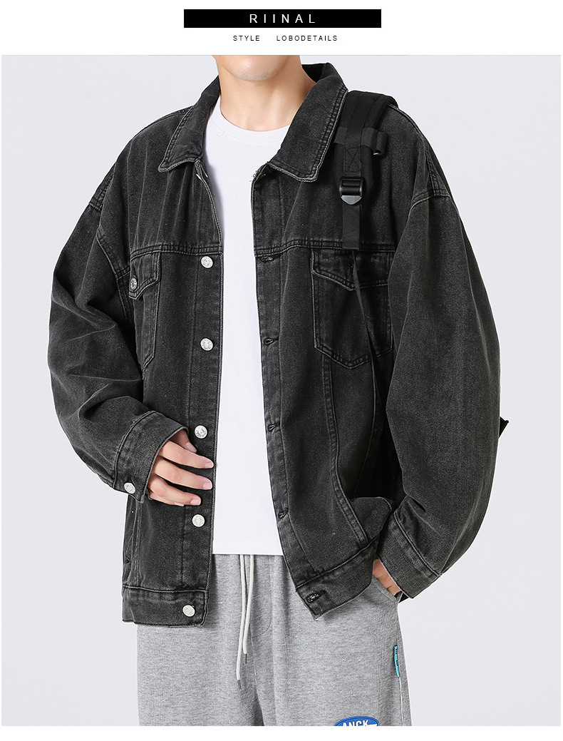 봄과 여름 새로운 데님 재킷 남자 아메리칸 스타일 하이 스트리트 트렌디 브랜드 프록 레트로 유행 재킷 얇은 블랙