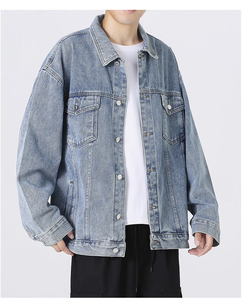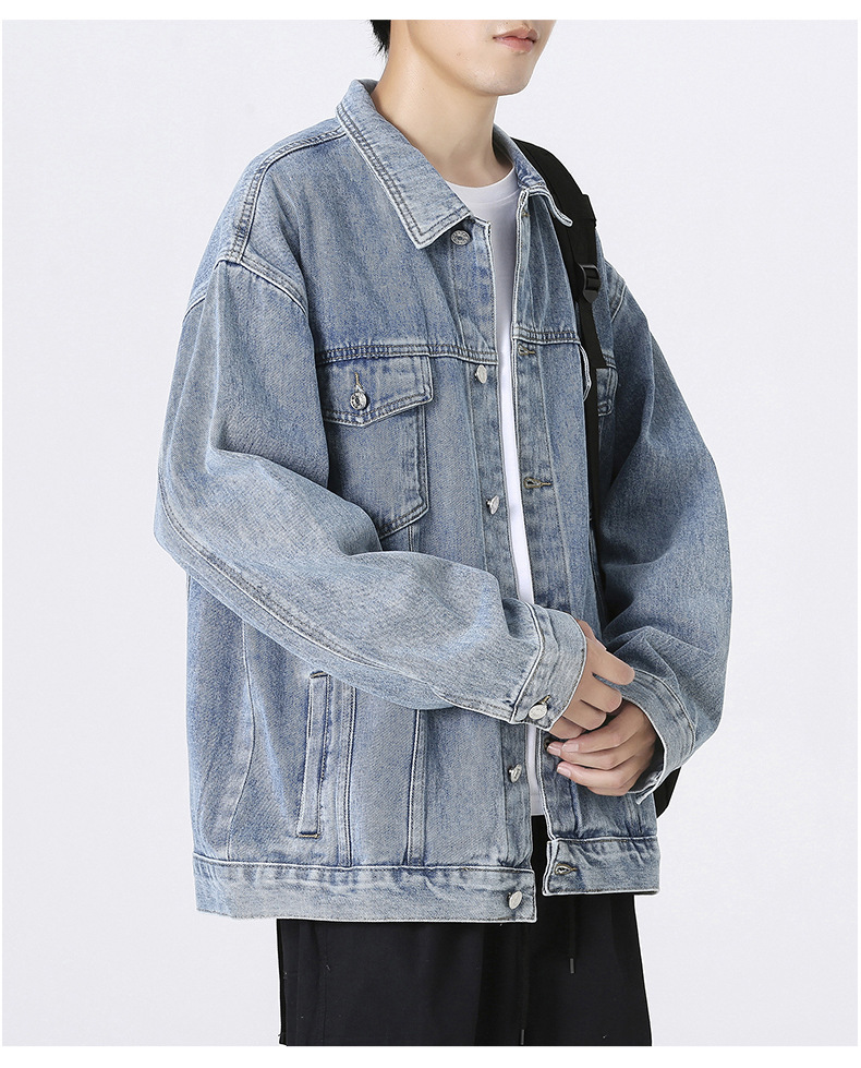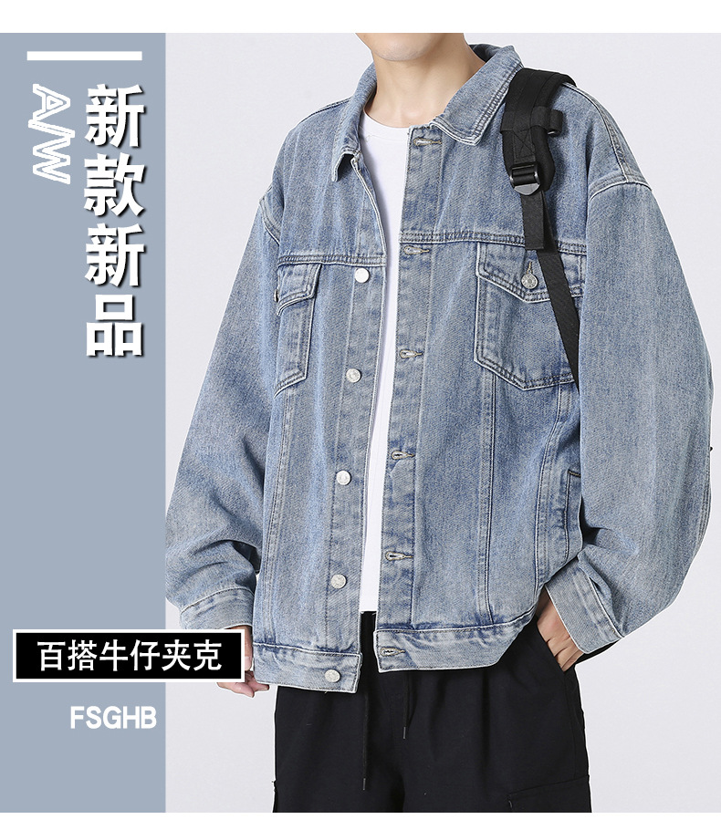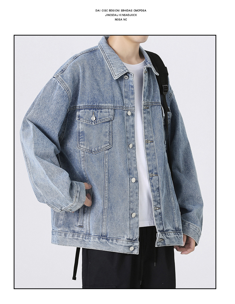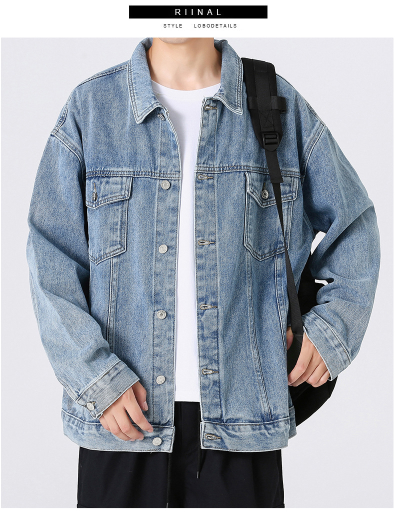 봄과 여름 새로운 데님 재킷 남자 아메리칸 스타일 하이 스트리트 트렌디 브랜드 프록 레트로 유행 재킷 얇은 블랙스토어 가기