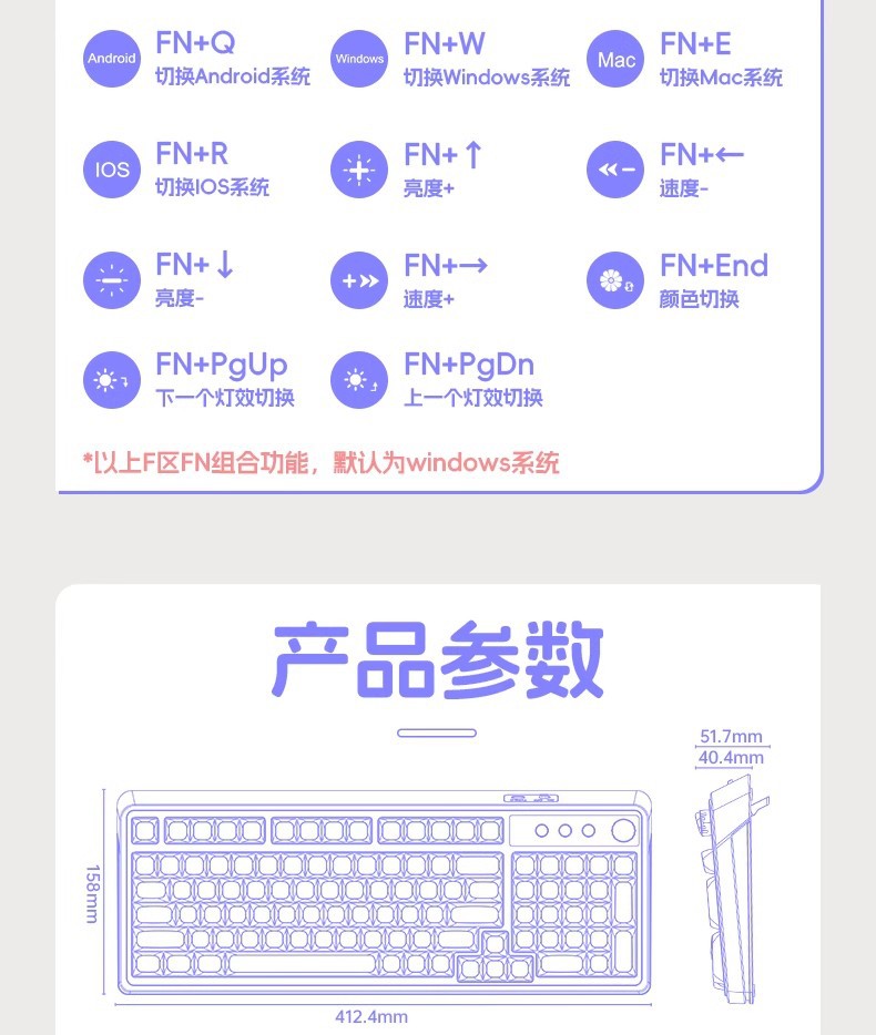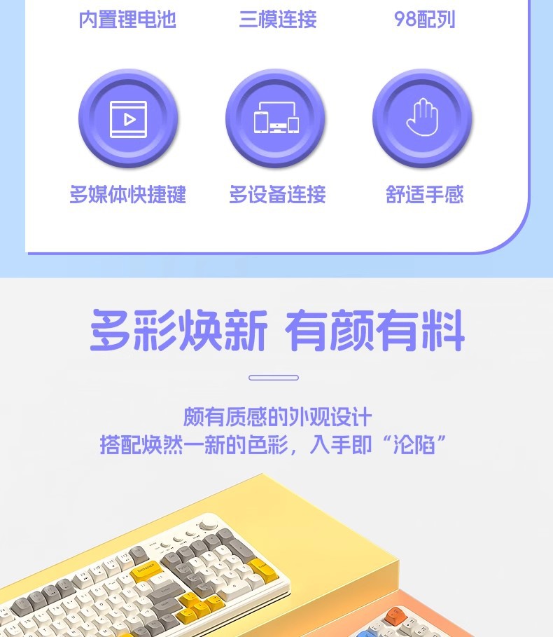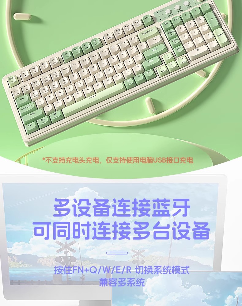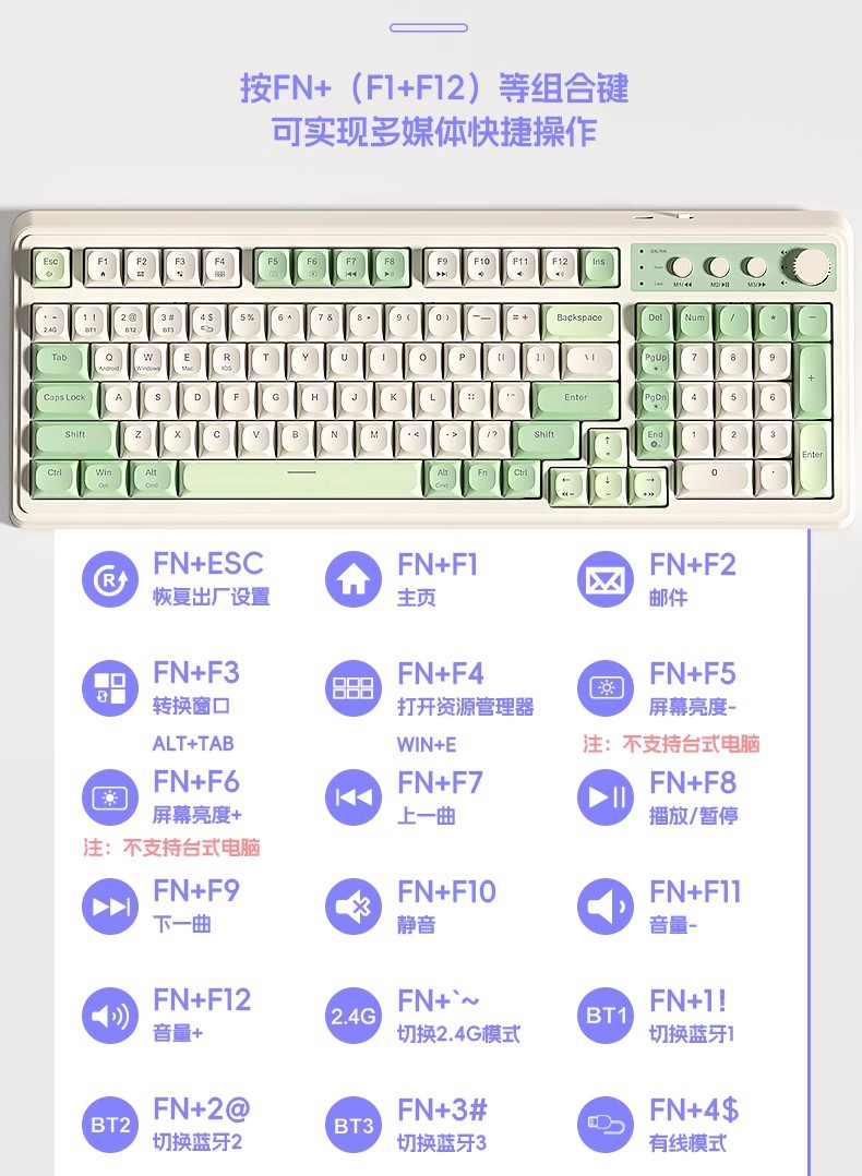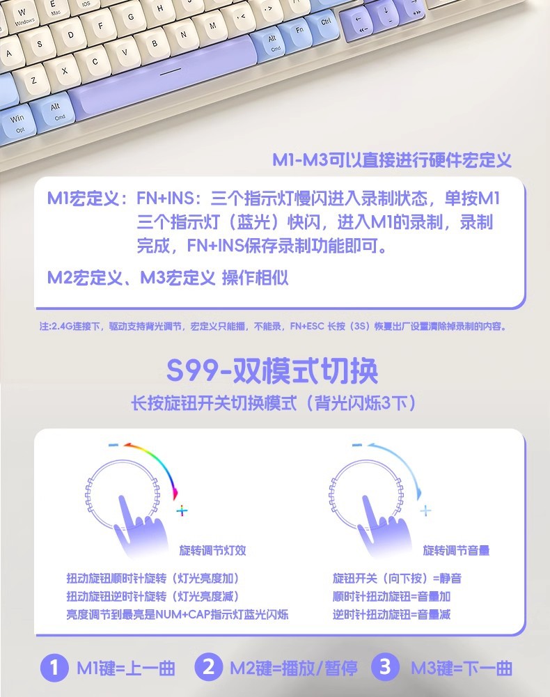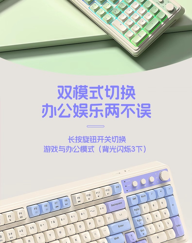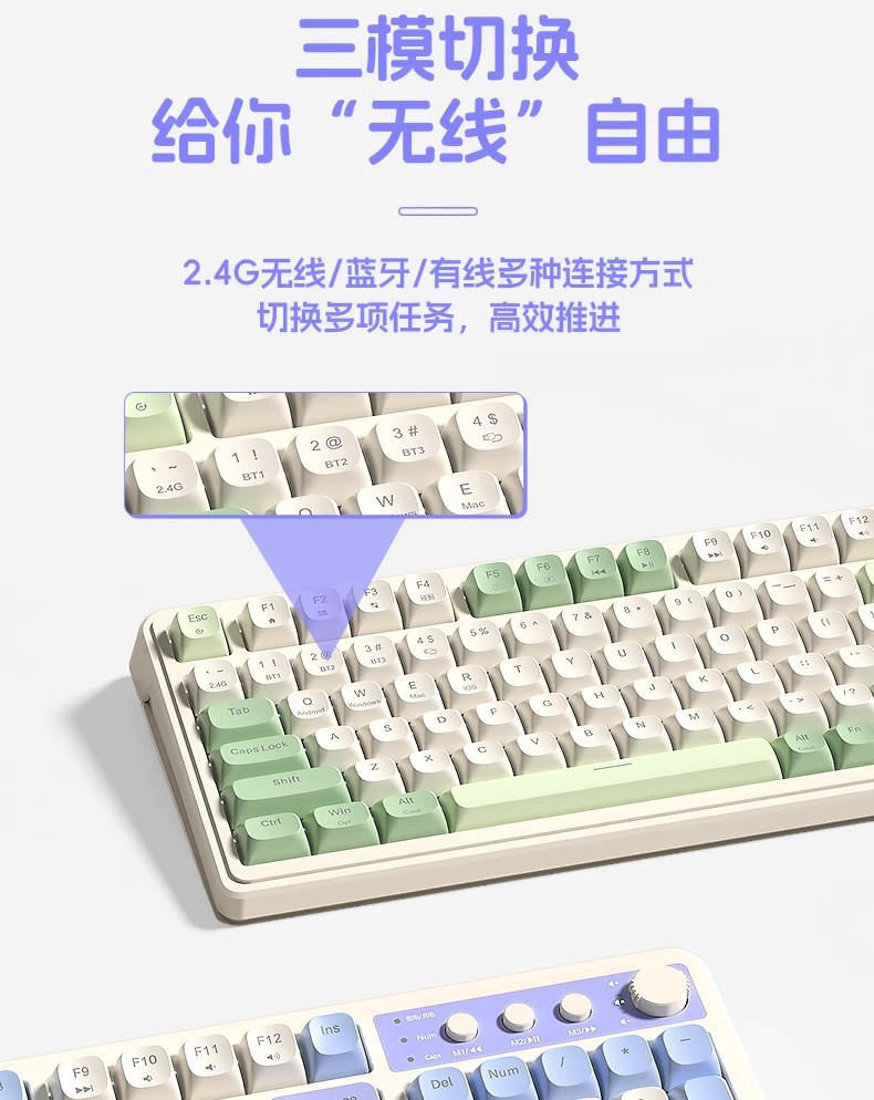 • [Yanyu Blue RGB]-3가지 모드[2.4G 무선 + 블루투스 + 유선]
