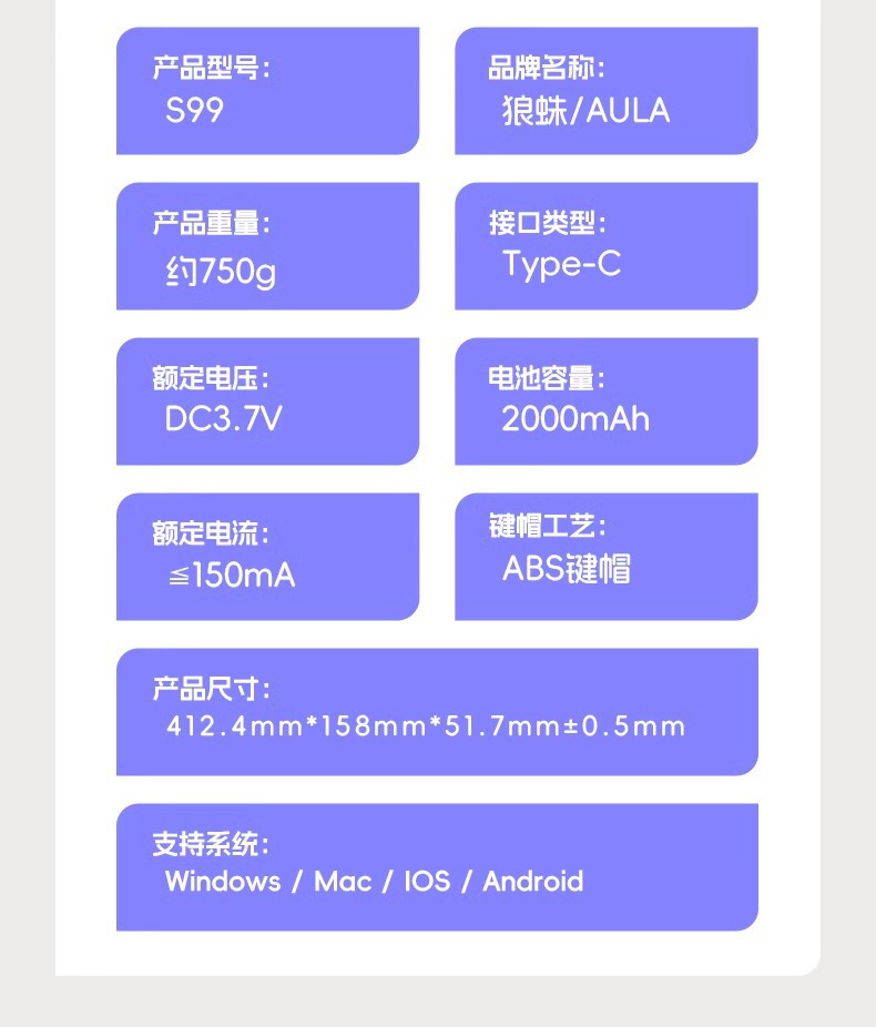 Wolf Spider S99 무선 블루투스 키보드 기계적 느낌 노트북 사무실 e-스포츠 게임 유선 F 고가치