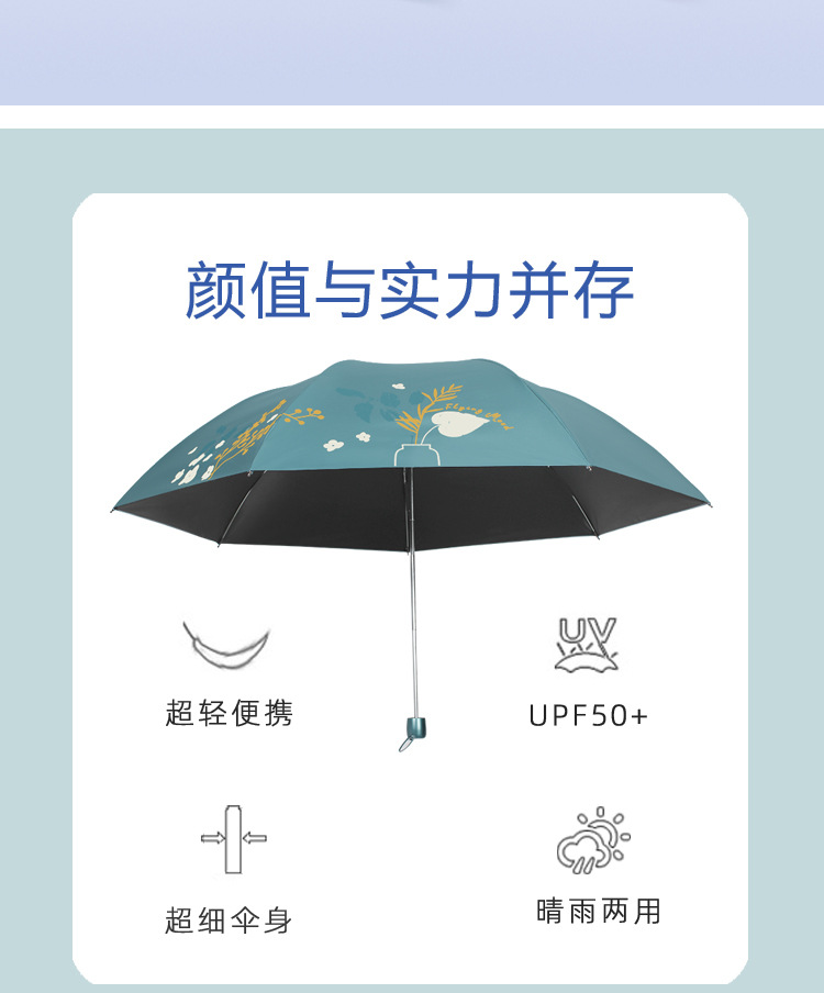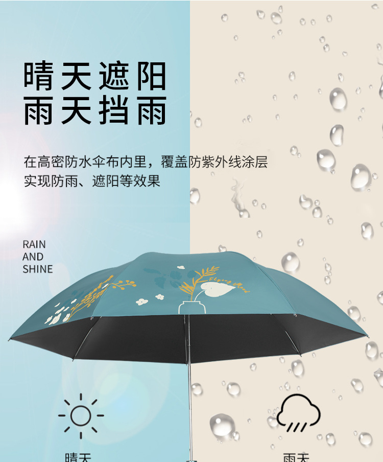 재고 도매 파라다이스 태양 우산 초정밀 초경량 태양 보호 UV 보호 새로운 비닐 3 배 우산 맑고 비 이중 목적 여성 우산스토어 가기