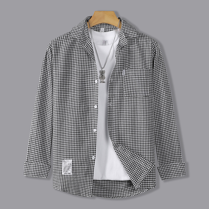 가을 2024 년 새로운 긴 소매 셔츠 남성 패션 트렌드 올 매치 컬러 대비 격자 무늬 셔츠 탑 옷 남성용 재킷