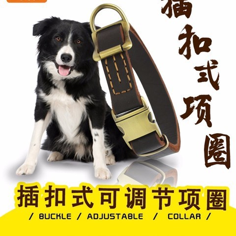 개 목걸이 Cowhide Collar 독일 셰퍼드 개 국경 셰퍼드 블랙 백업 늑대 개 강아지 강아지 성인 개 유니버설 개 목걸이
