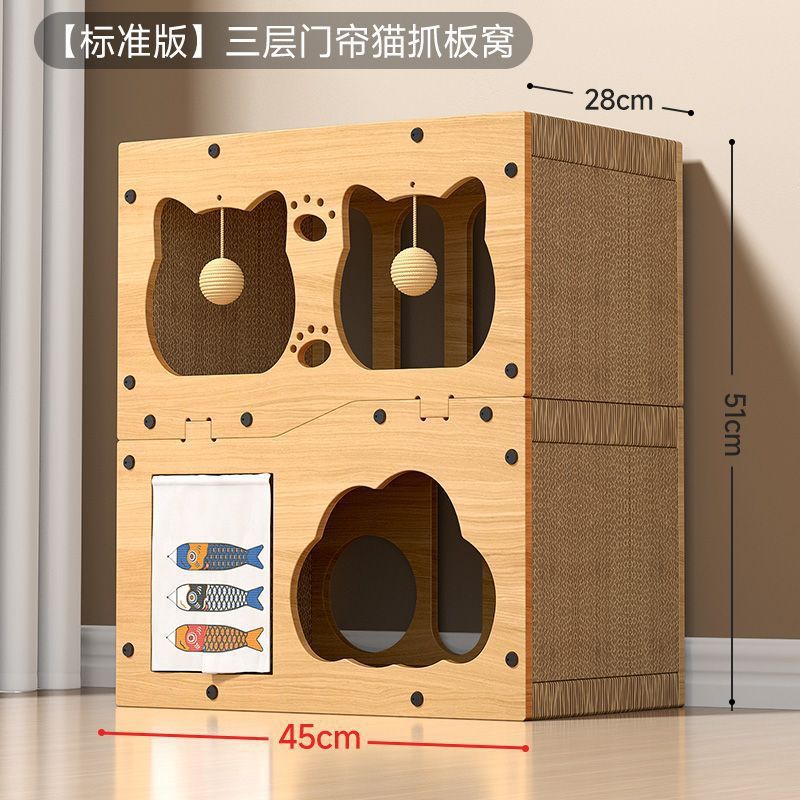 • 3단 고양이 소파 둥지 - 대형 (여러 마리 고양이 수용 가능) / 커튼 없음