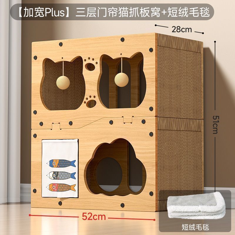 • 3단 고양이 소파 둥지 - 대형 (여러 마리 고양이 수용 가능) + 짧은 털 담요 / 커튼 없음