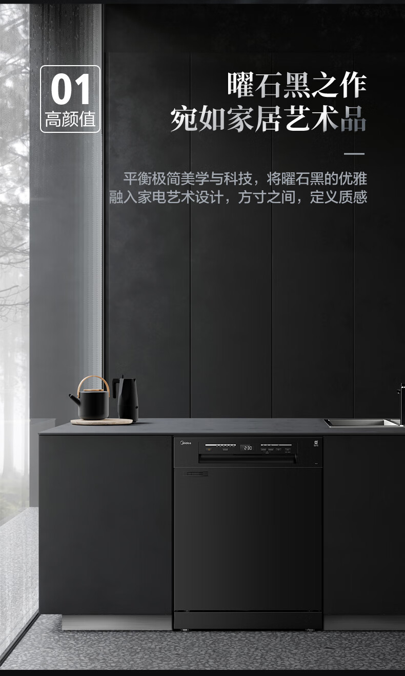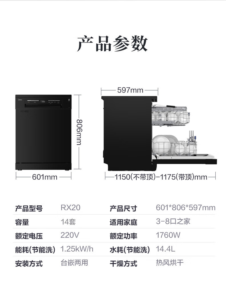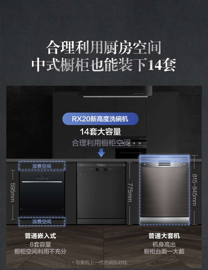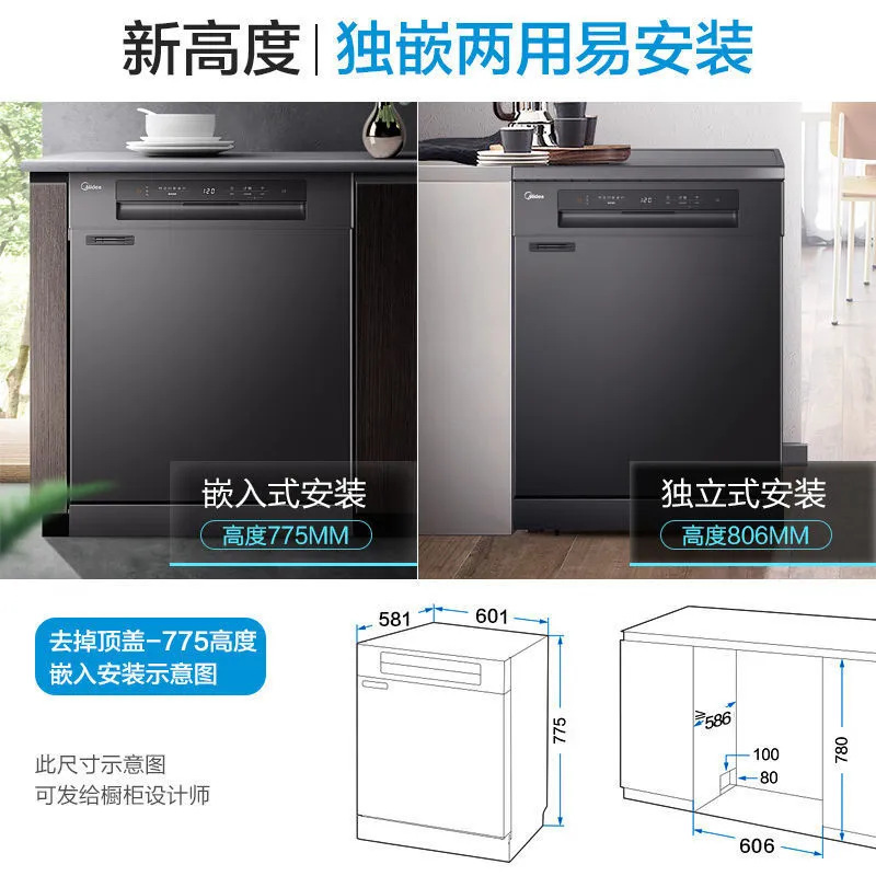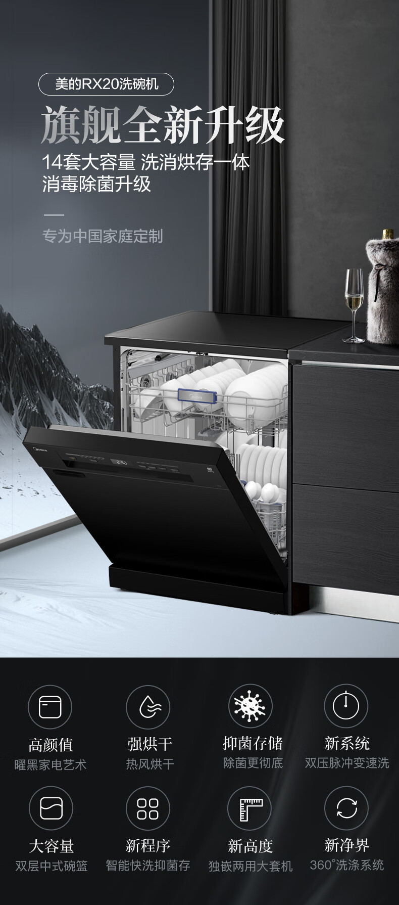 Midea 식기 세척기 가정용 내장형 13/14 세트 대용량 완전 자동 세척, 소독, 건조 및 보관 통합 소형 RX20