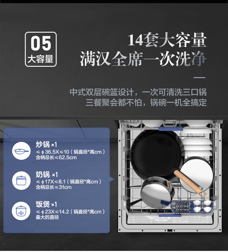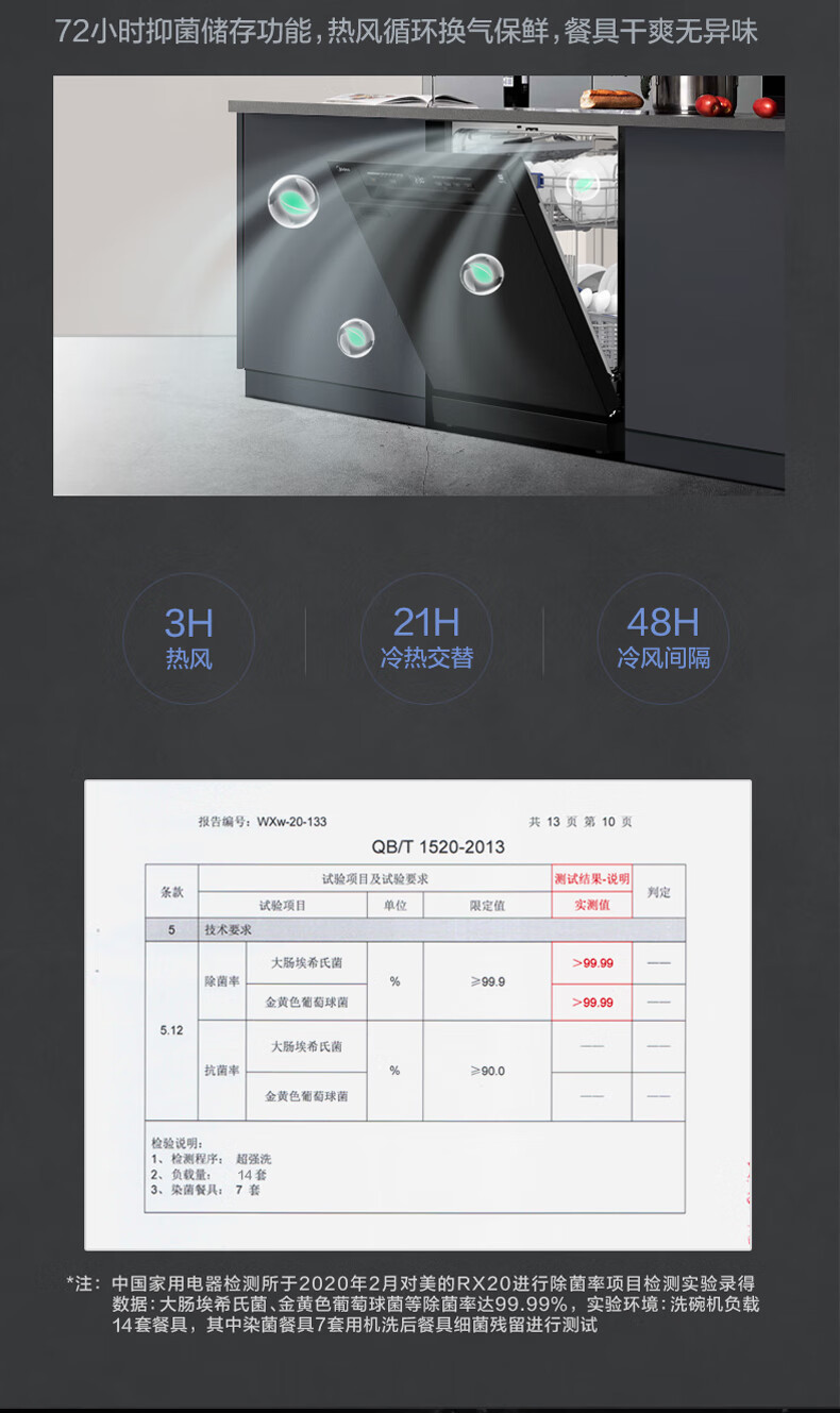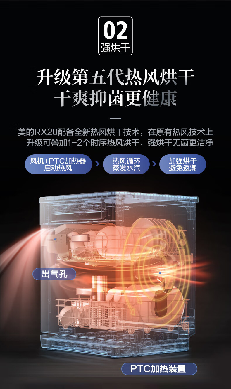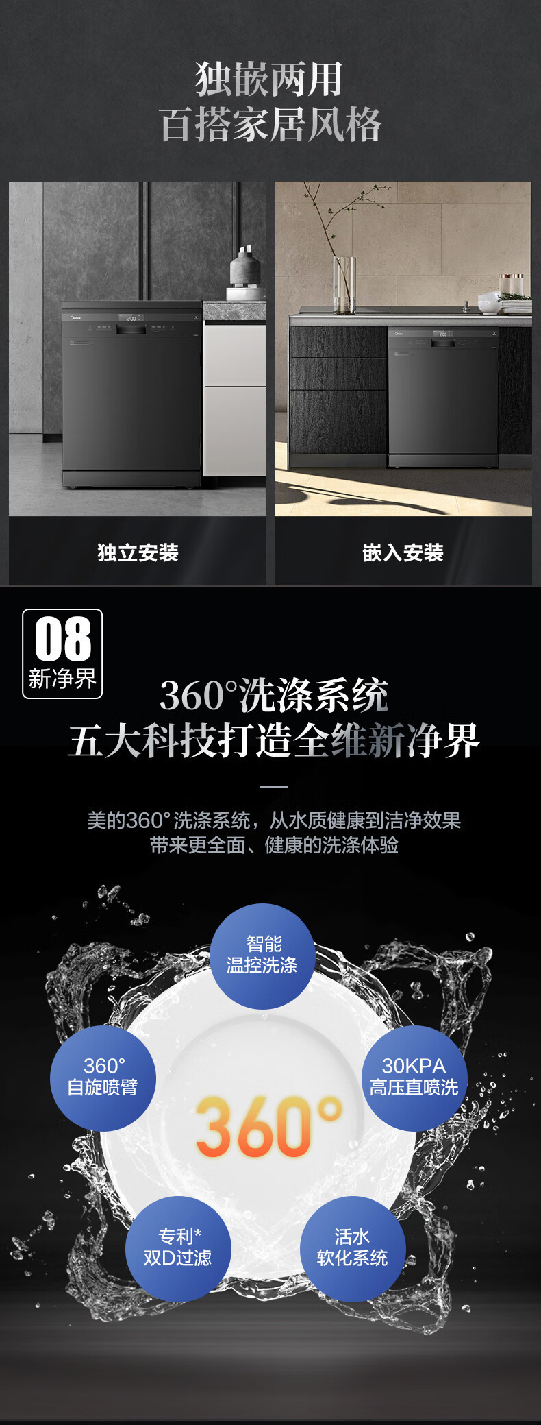 Midea 식기 세척기 가정용 내장형 13/14 세트 대용량 완전 자동 세척, 소독, 건조 및 보관 통합 소형 RX20