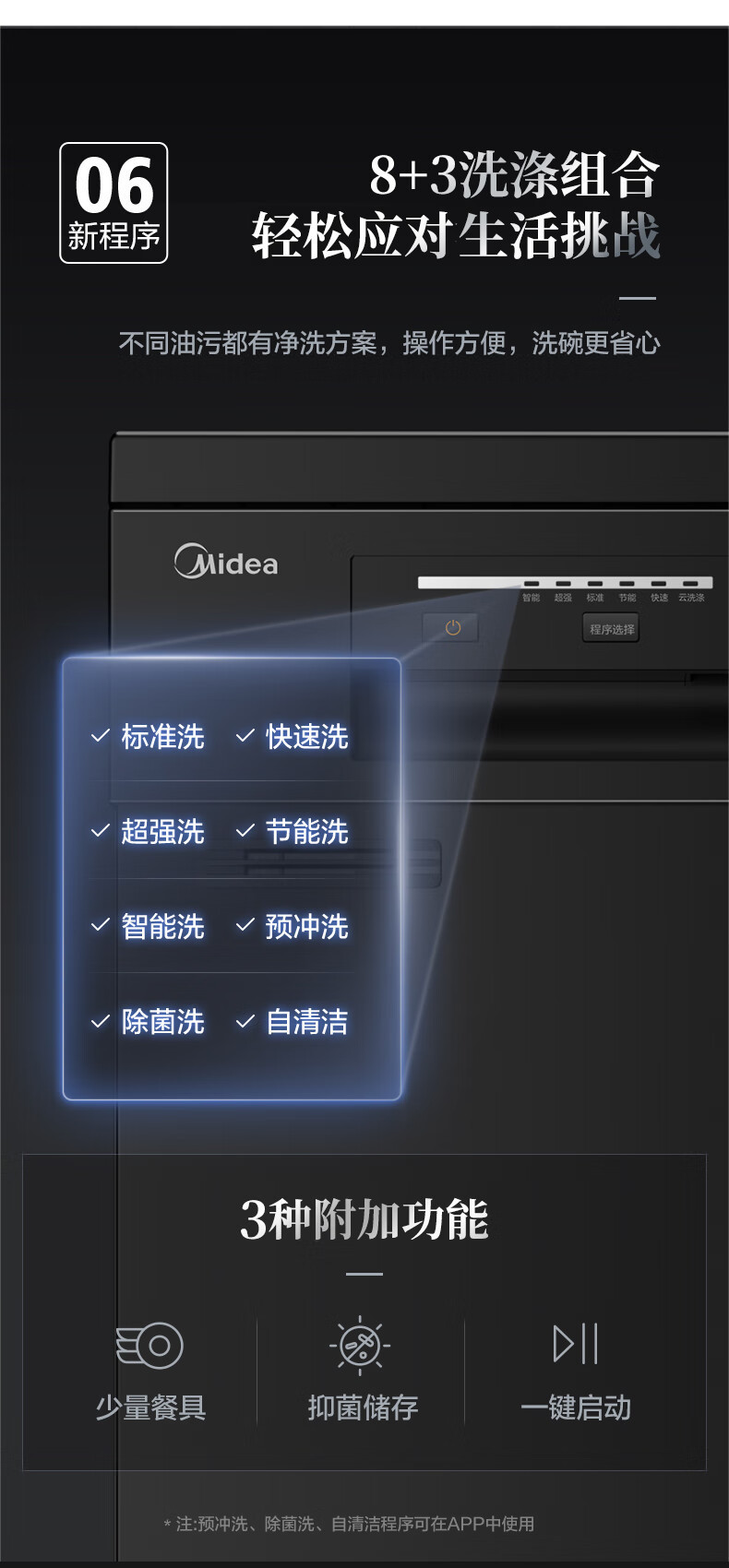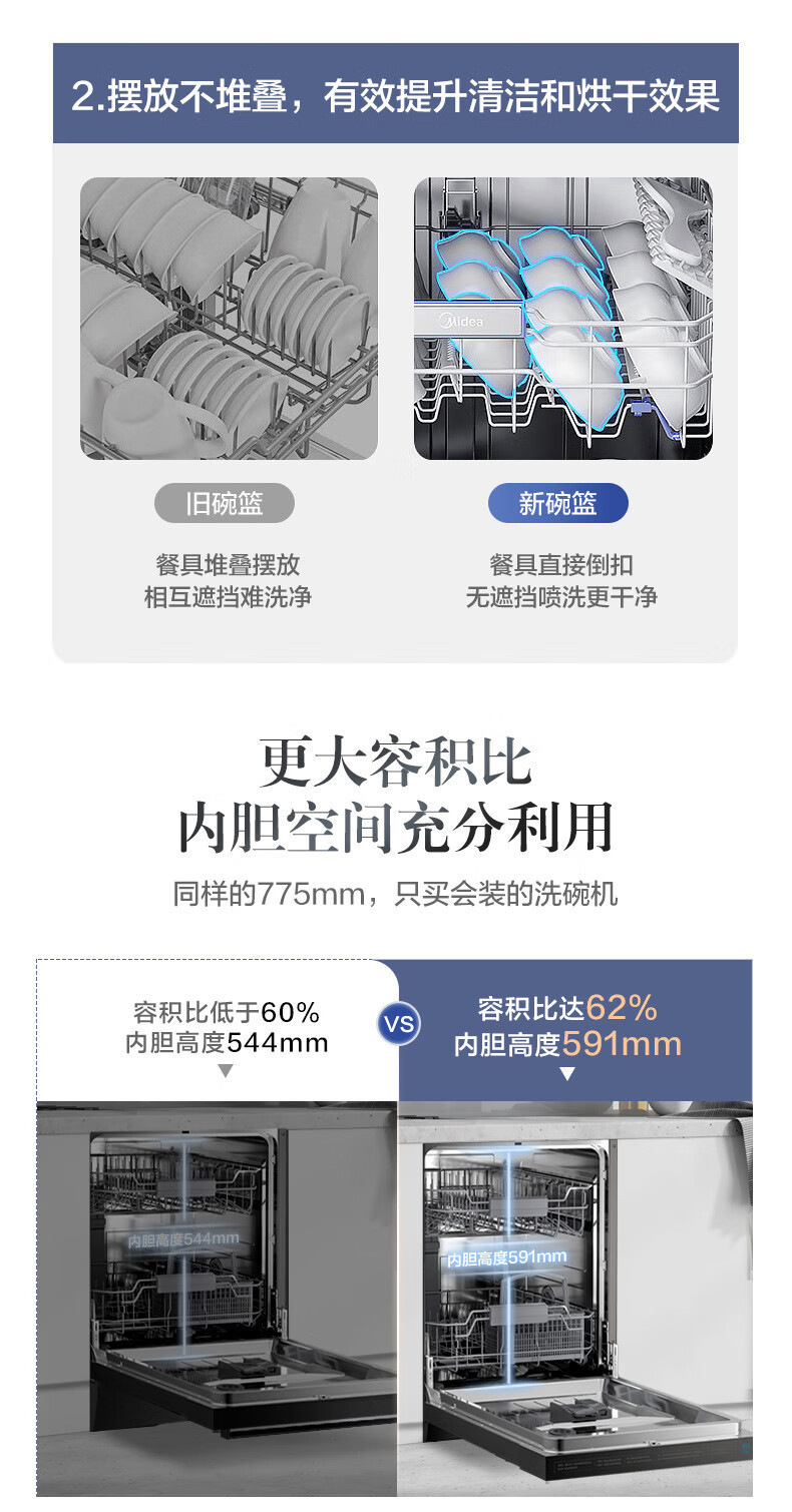 Midea 식기 세척기 가정용 내장형 13/14 세트 대용량 완전 자동 세척, 소독, 건조 및 보관 통합 소형 RX20스토어 가기