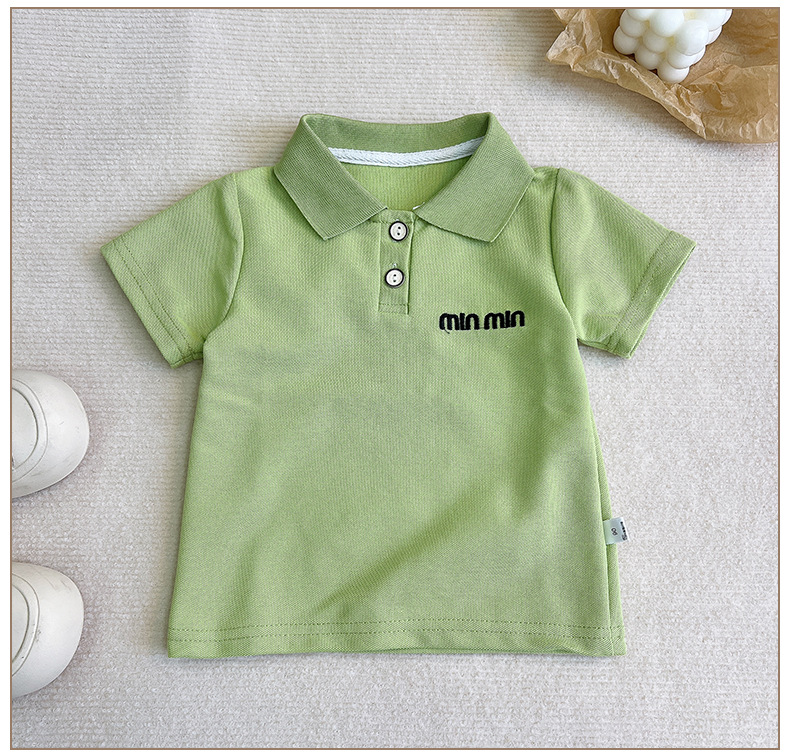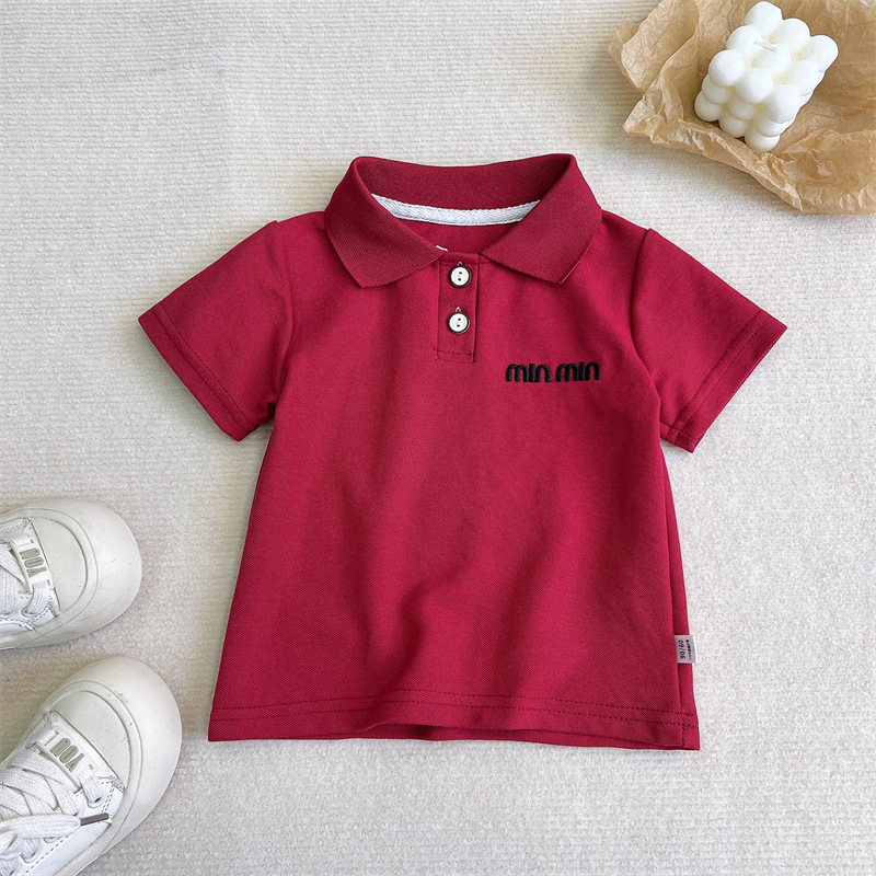 어린이 폴로 셔츠 소년 한국식 엘 반팔 중대형 어린이 여름 단색 자수 편지 티셔츠 학생 클래스 옷