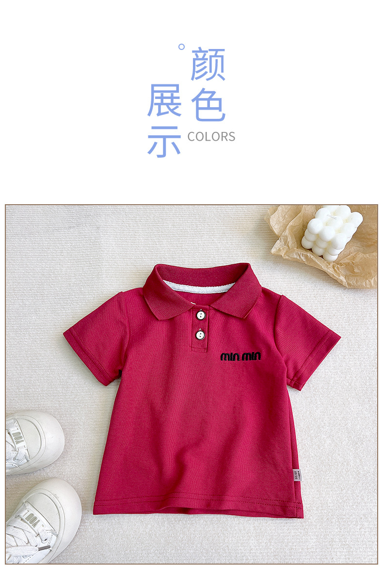 어린이 폴로 셔츠 소년 한국식 엘 반팔 중대형 어린이 여름 단색 자수 편지 티셔츠 학생 클래스 옷스토어 가기