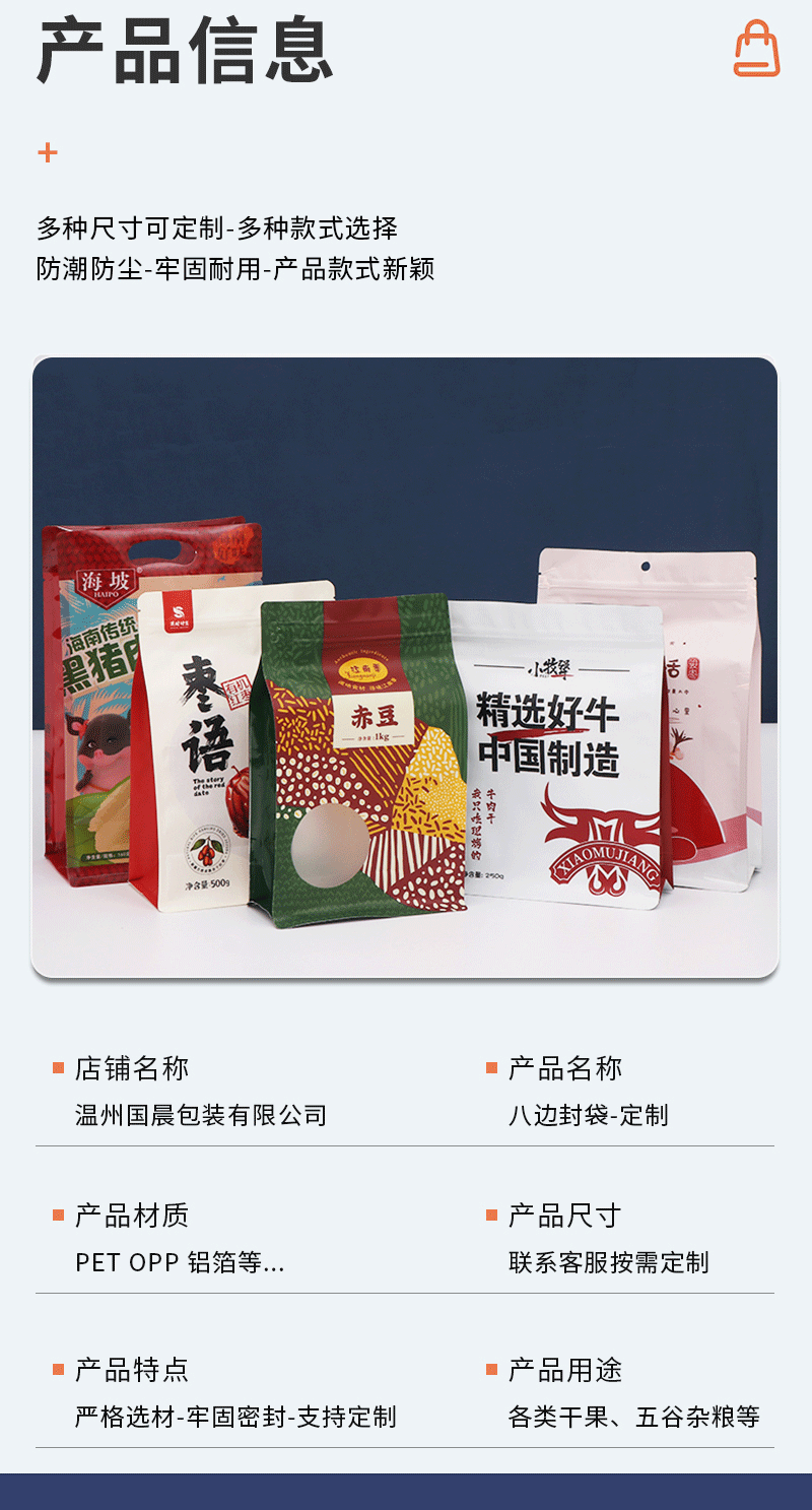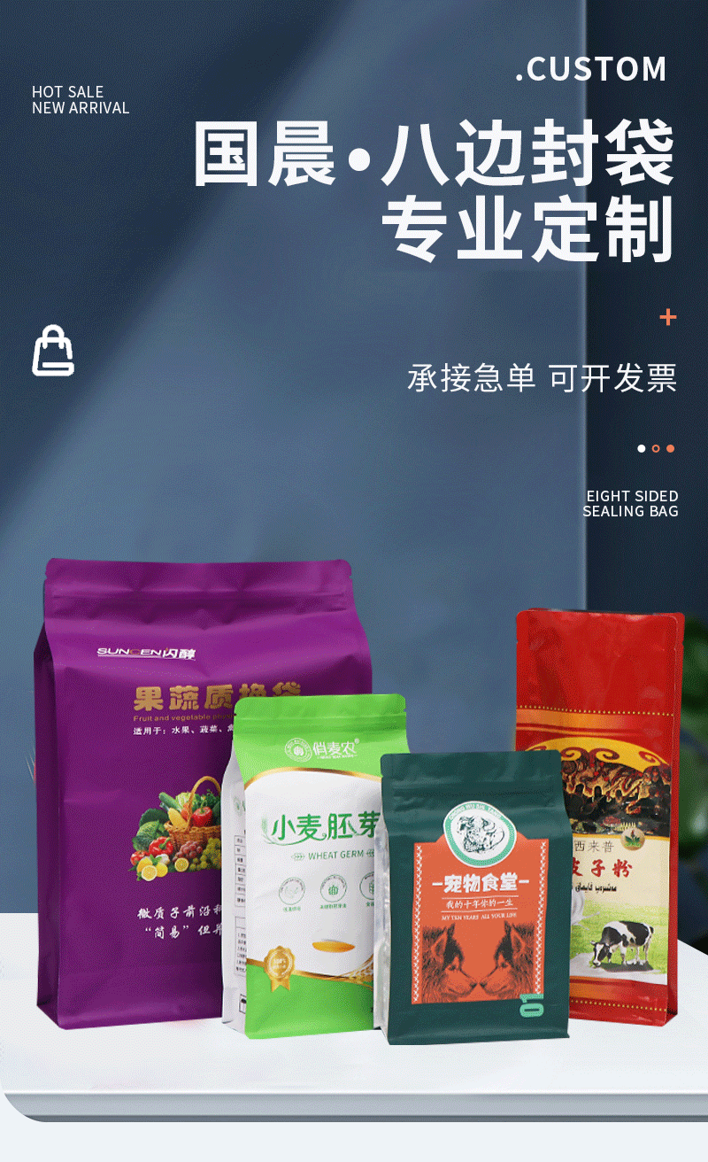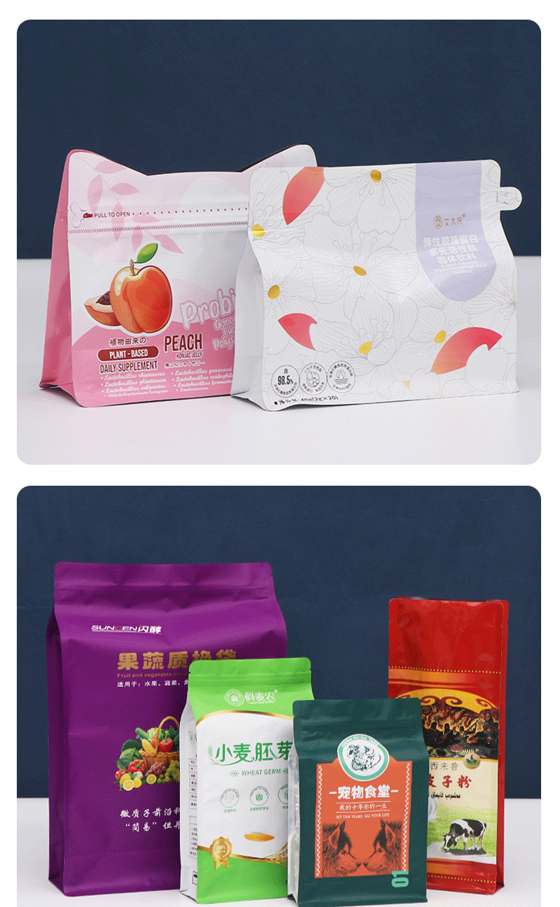 소량 식품 포장 백, 맞춤형 애완 동물 진공 백, 인쇄 및 고가치 8면 밀봉 지퍼 밀봉 백