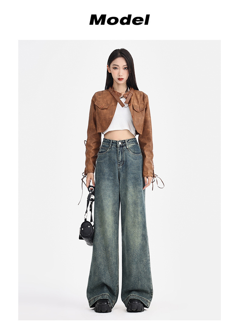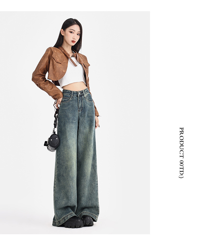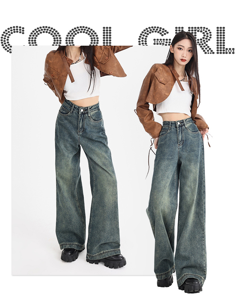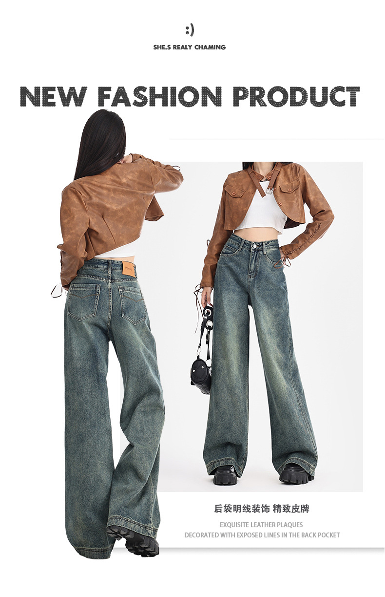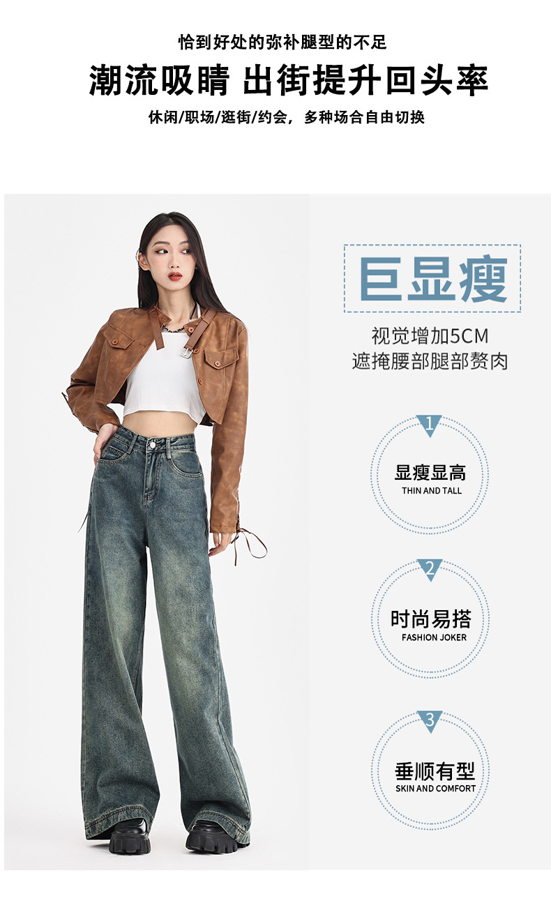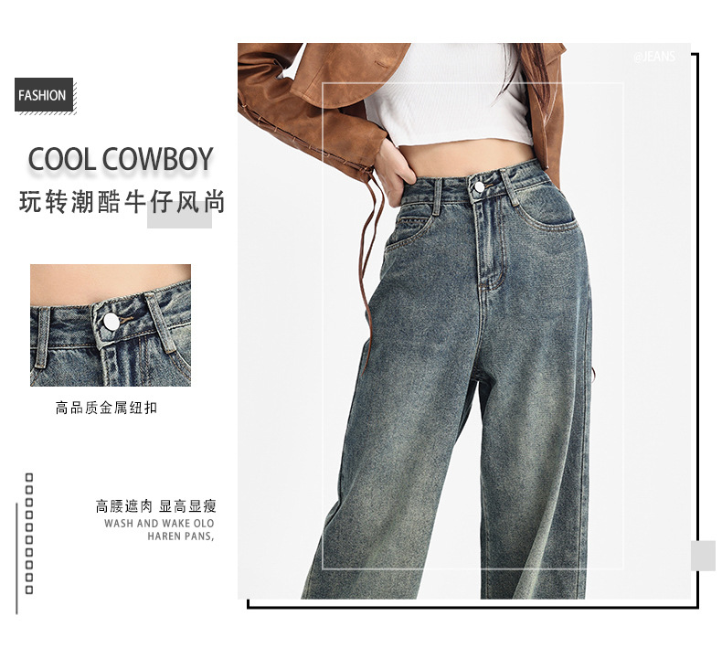 【实拍】高腰阔腿复古牛仔裤女秋季2023年新款宽松显瘦直筒拖地裤스토어 가기