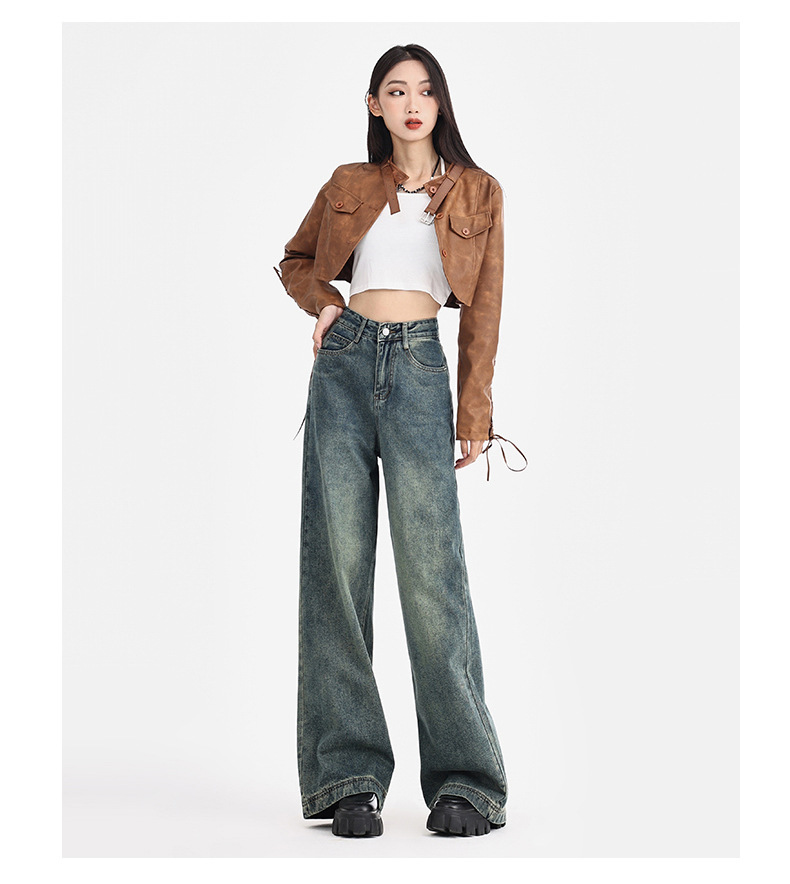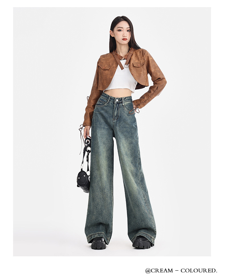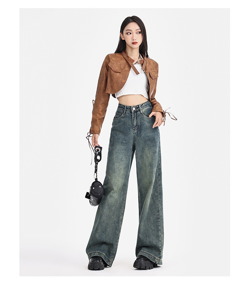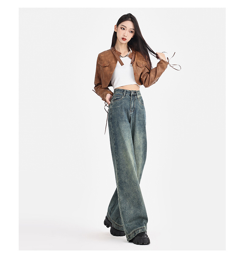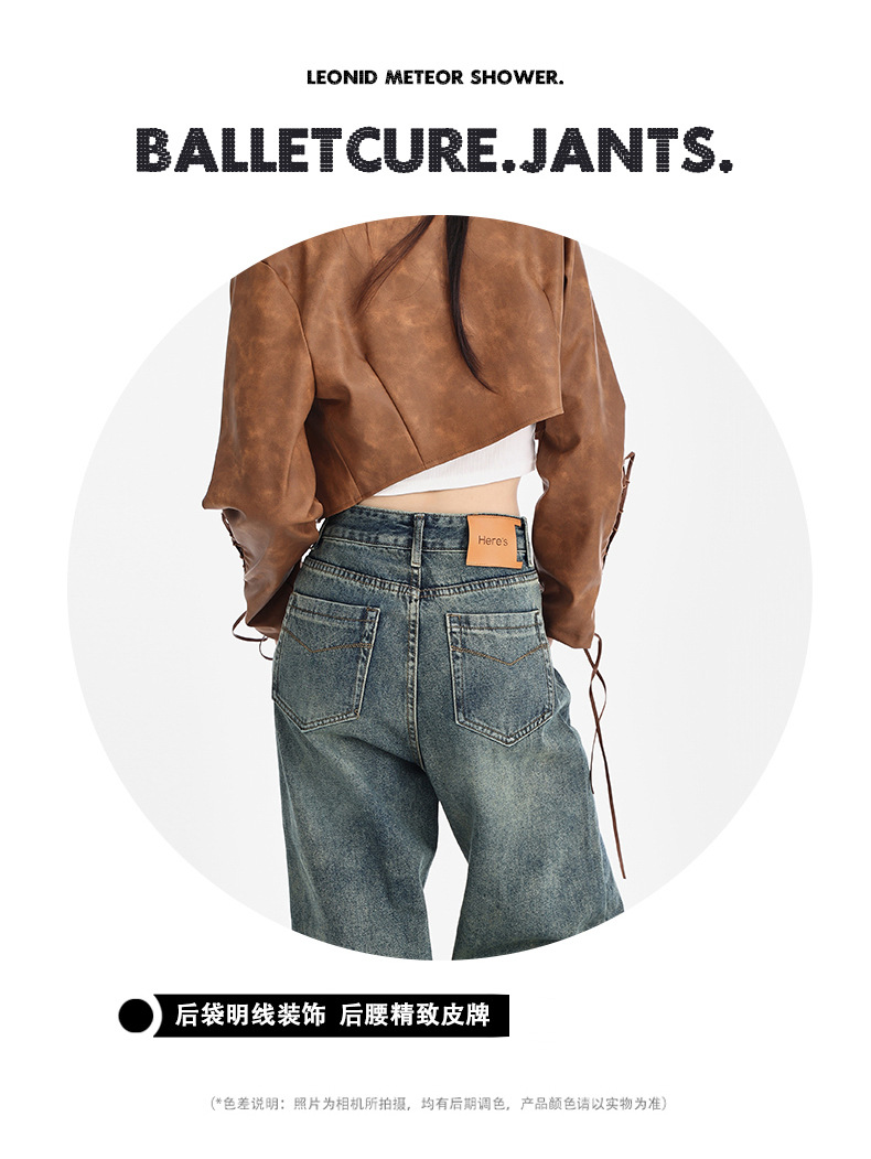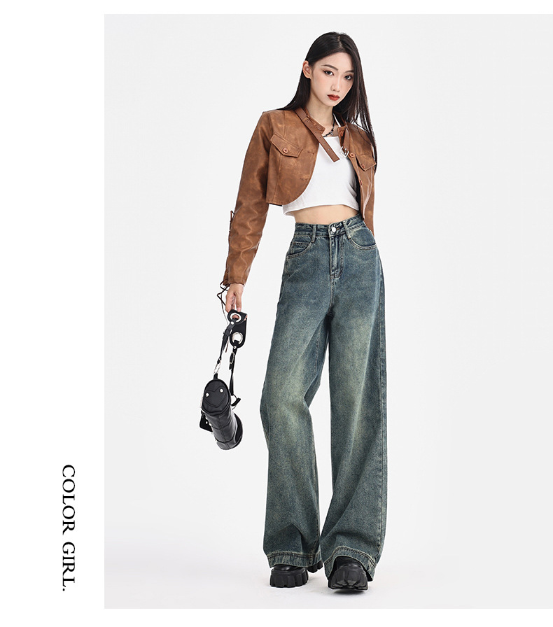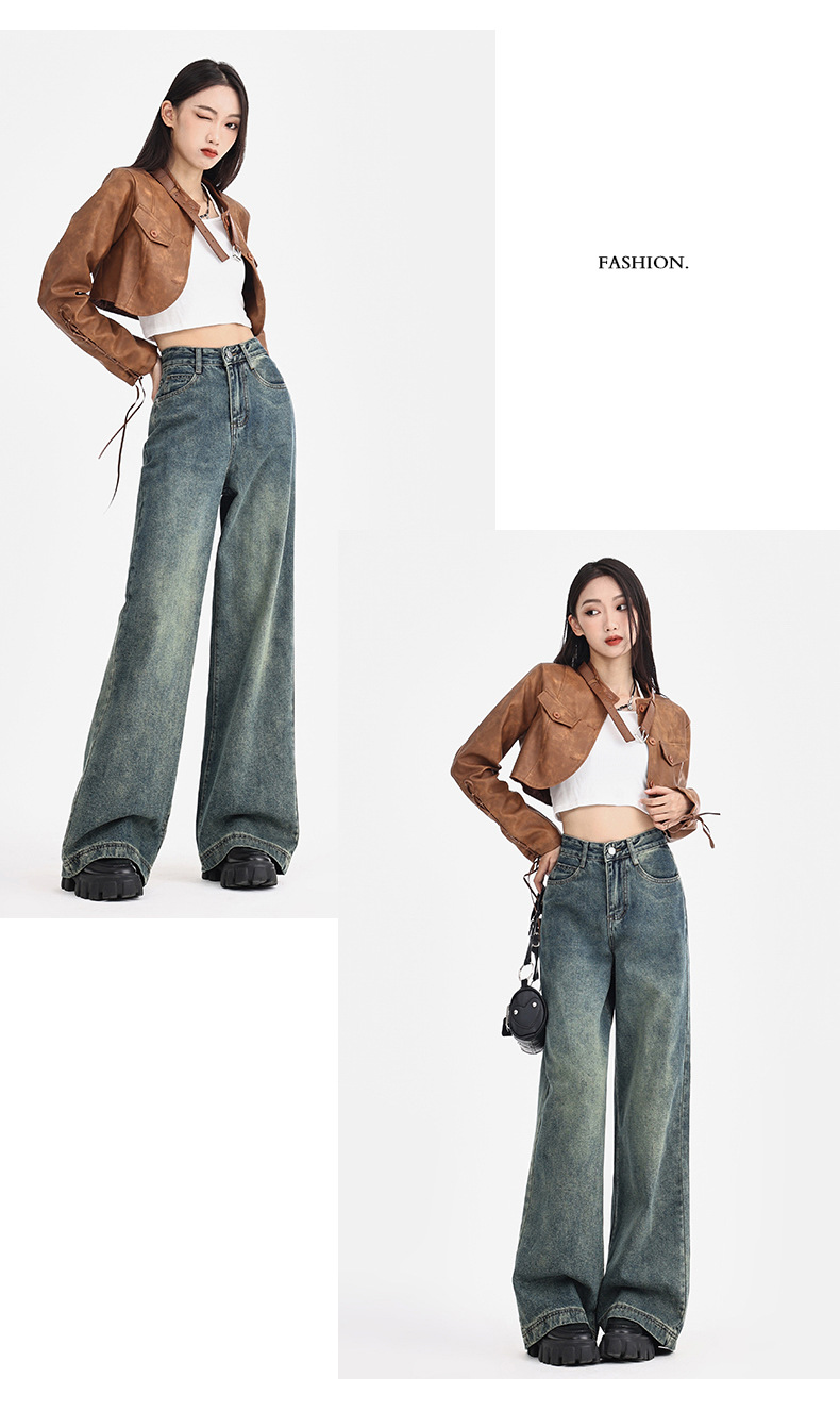 【实拍】高腰阔腿复古牛仔裤女秋季2023年新款宽松显瘦直筒拖地裤스토어 가기