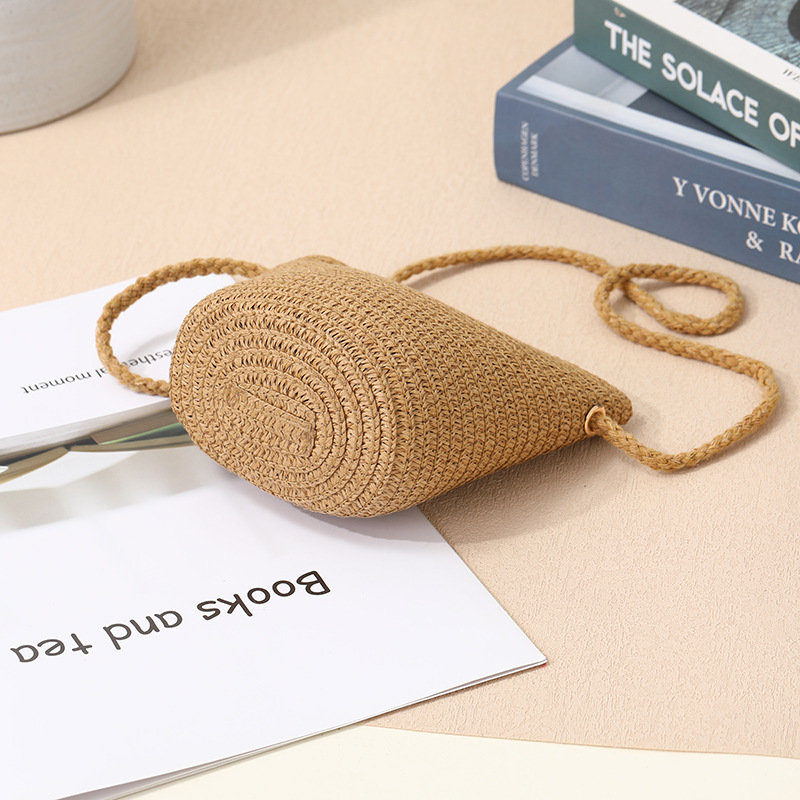 여름 해변 해변 밀짚 가방 짠 가방 여성 2025 새로운 어린이 귀여운 밀짚 가방 크로스 바디 동전 지갑 도매스토어 가기