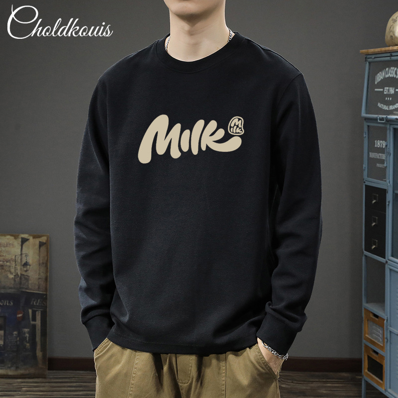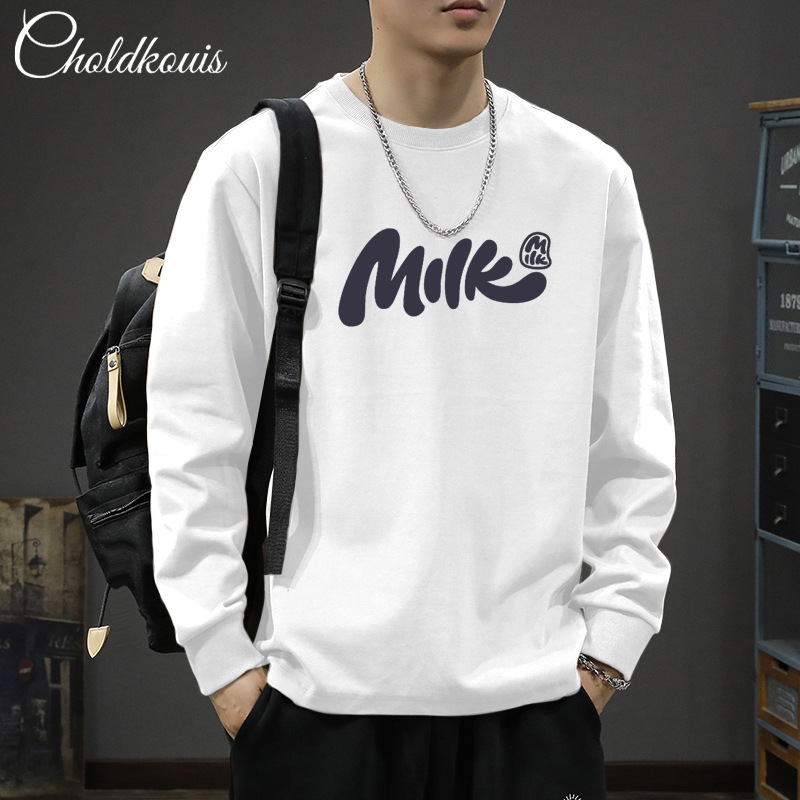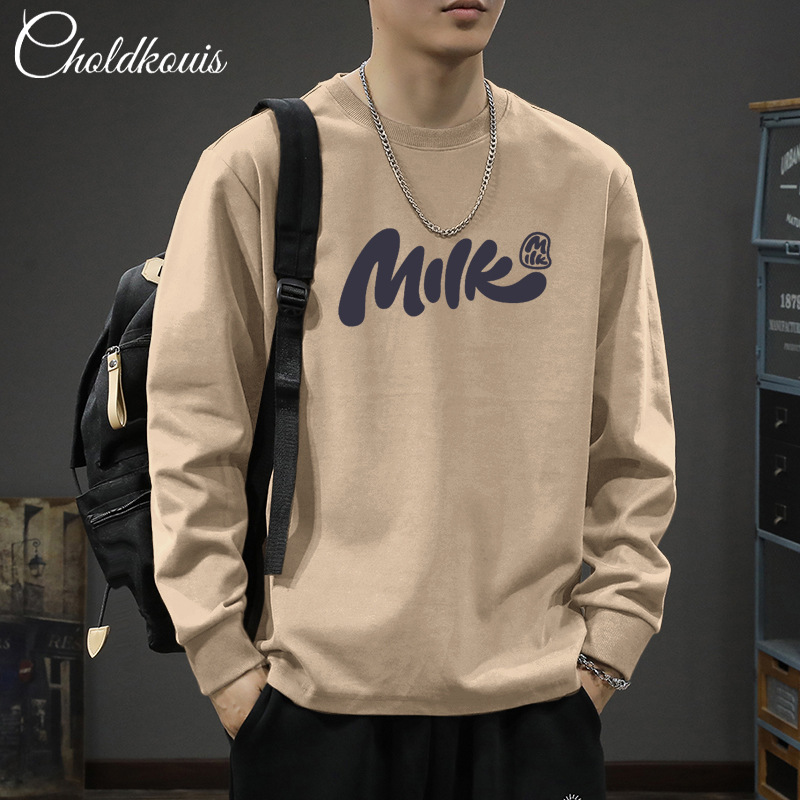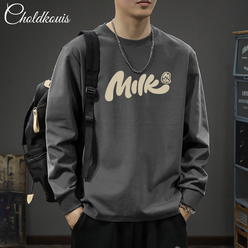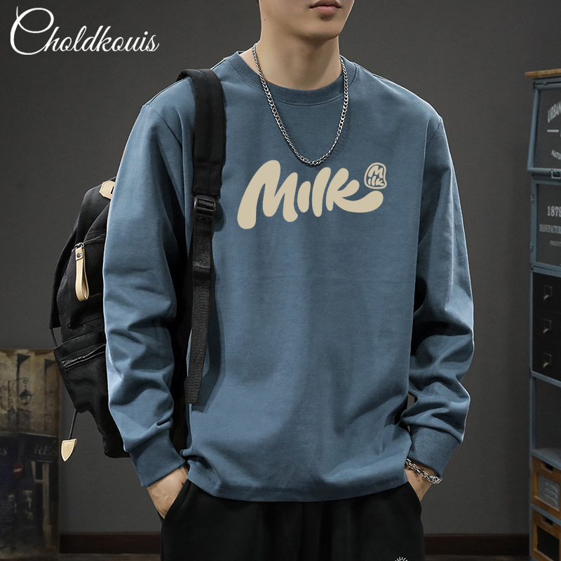 긴팔 둥근 목 남자의 두꺼운 봄과 가을베이스 셔츠 느슨한 긴팔 셔츠 순면 중량형 단색스토어 가기