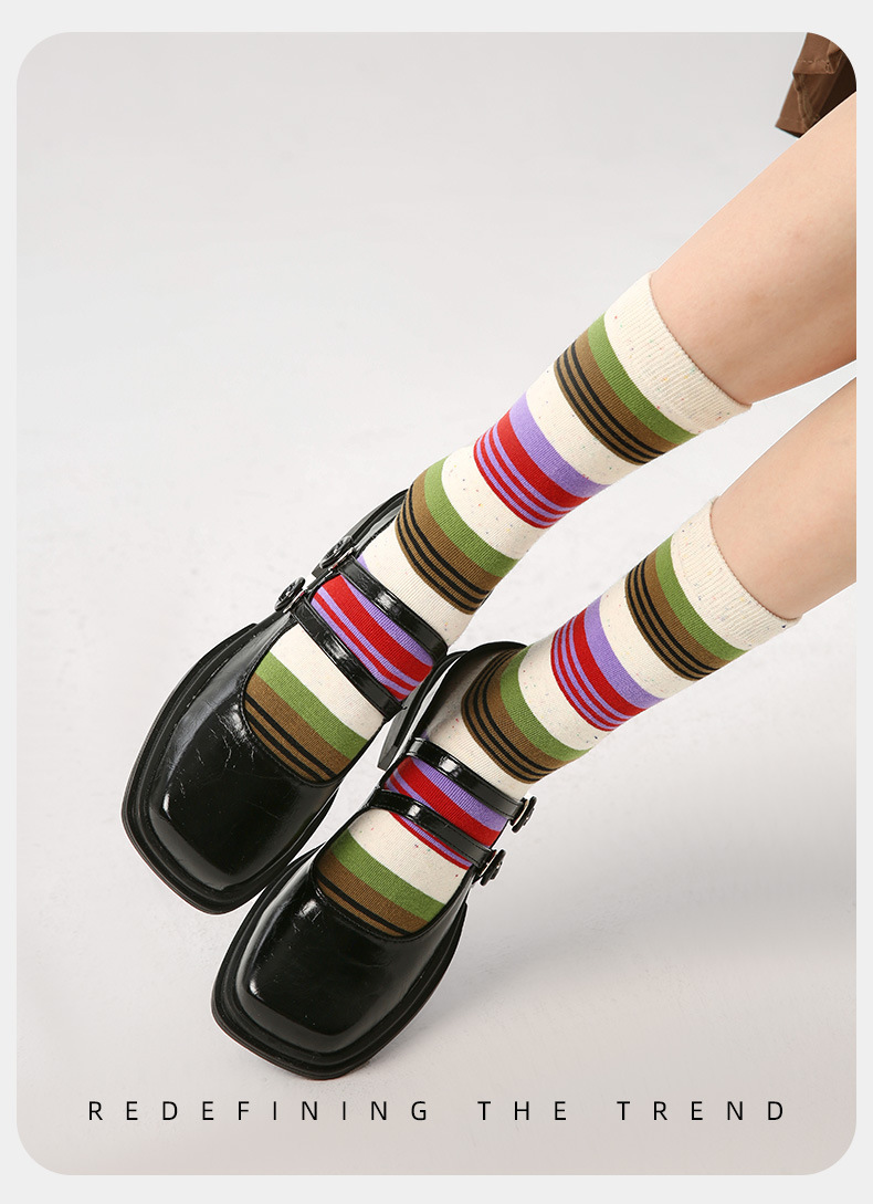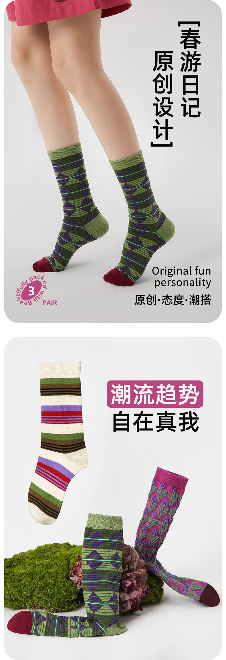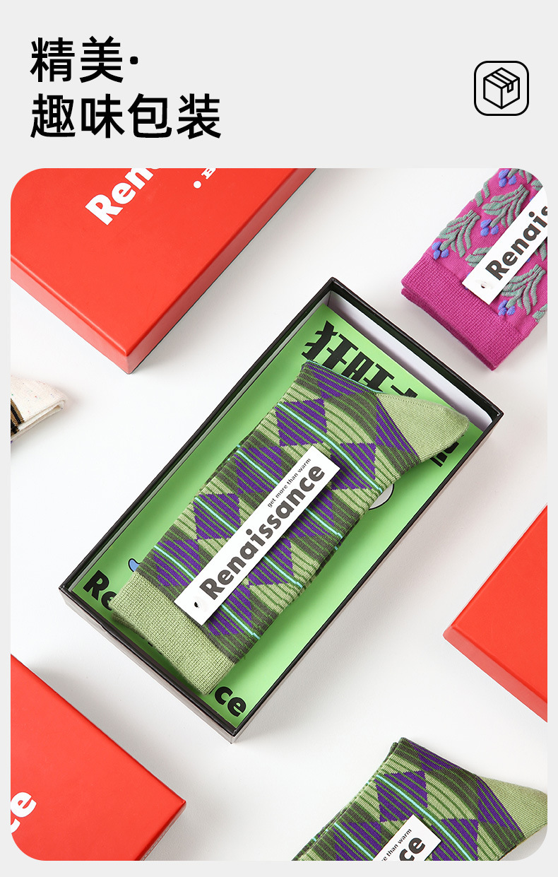 3 쌍-르네상스 오리지널 디자인 여성 양말 컬러 블록 스트라이프 콤비네이션 코튼 미드 튜브 양말 선물 상자 트렌디 브랜드 양말스토어 가기