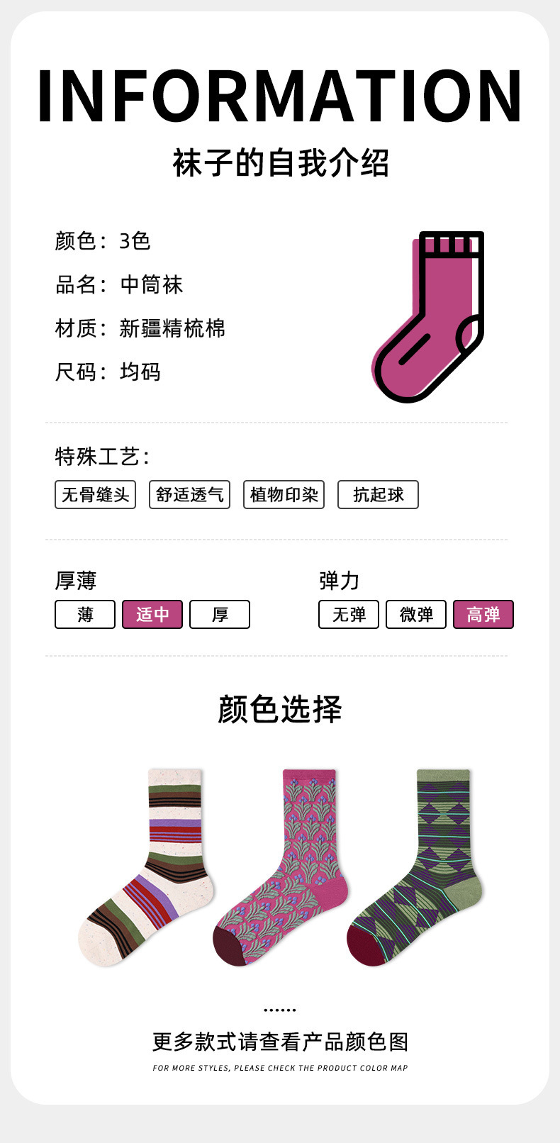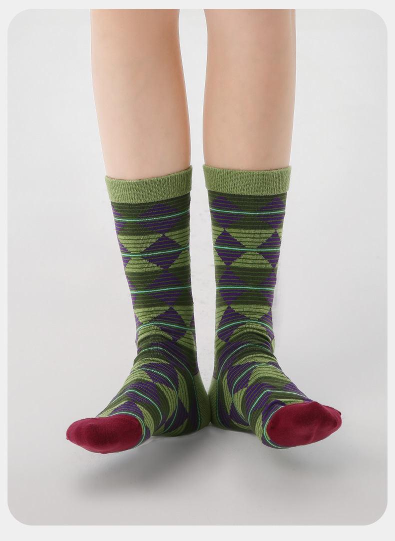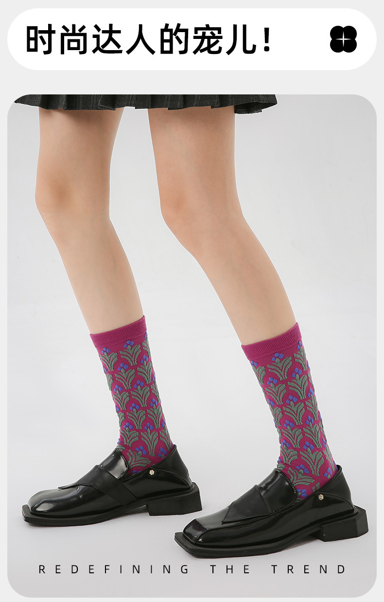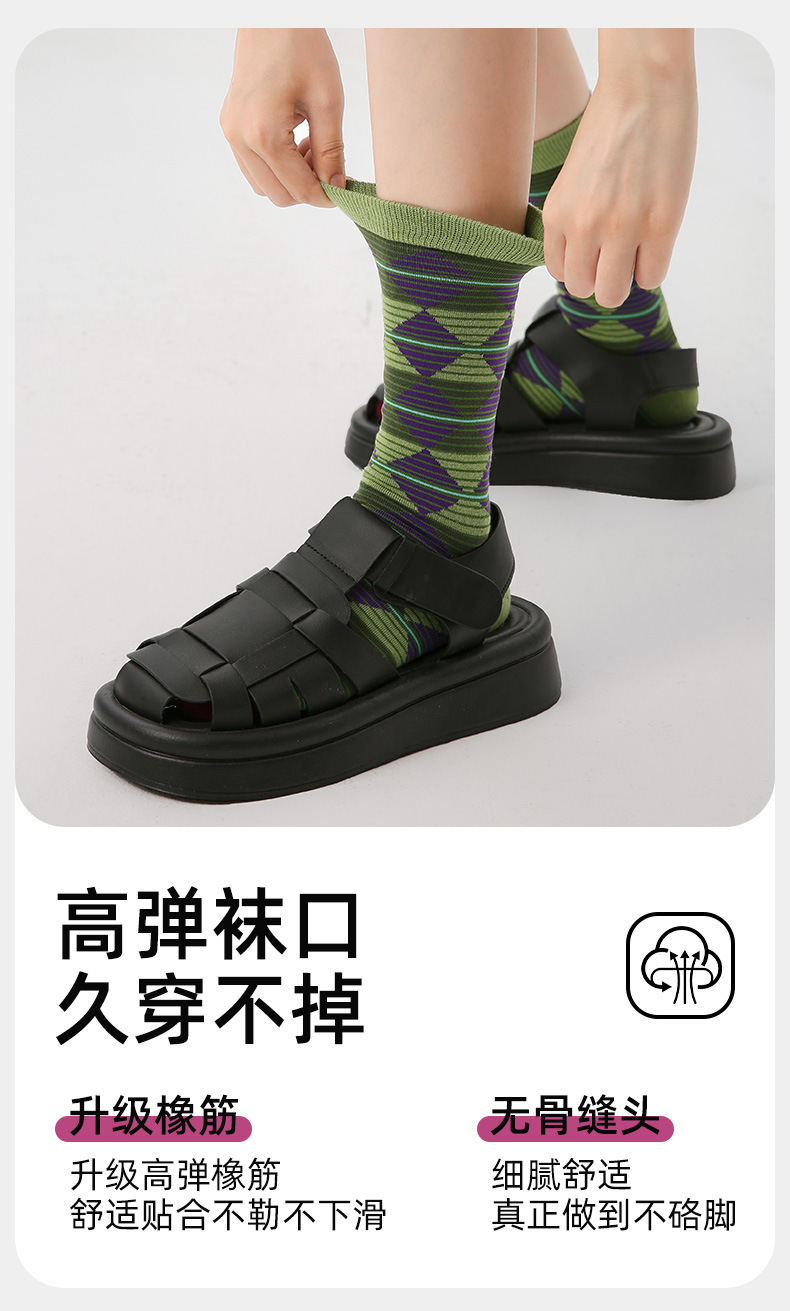 3 쌍-르네상스 오리지널 디자인 여성 양말 컬러 블록 스트라이프 콤비네이션 코튼 미드 튜브 양말 선물 상자 트렌디 브랜드 양말스토어 가기