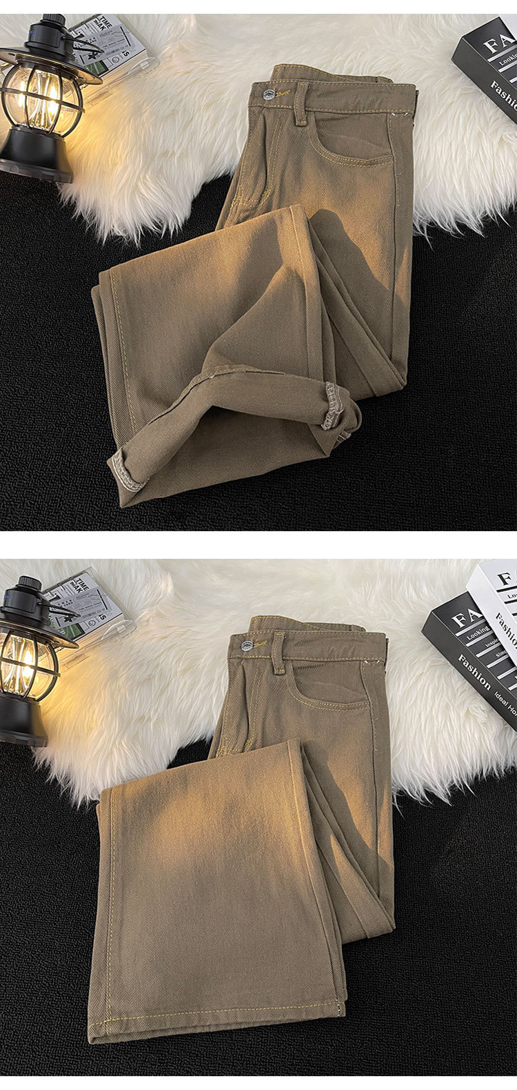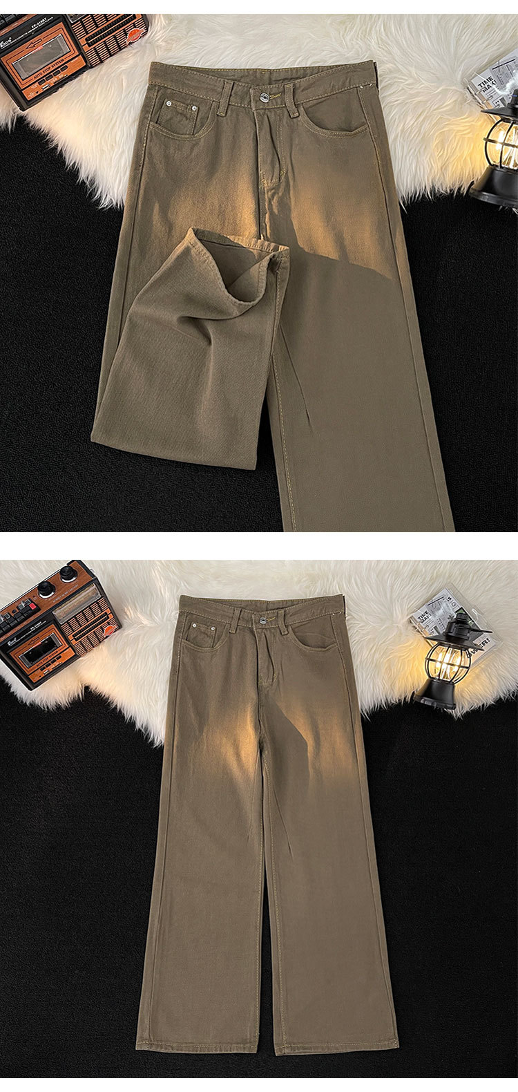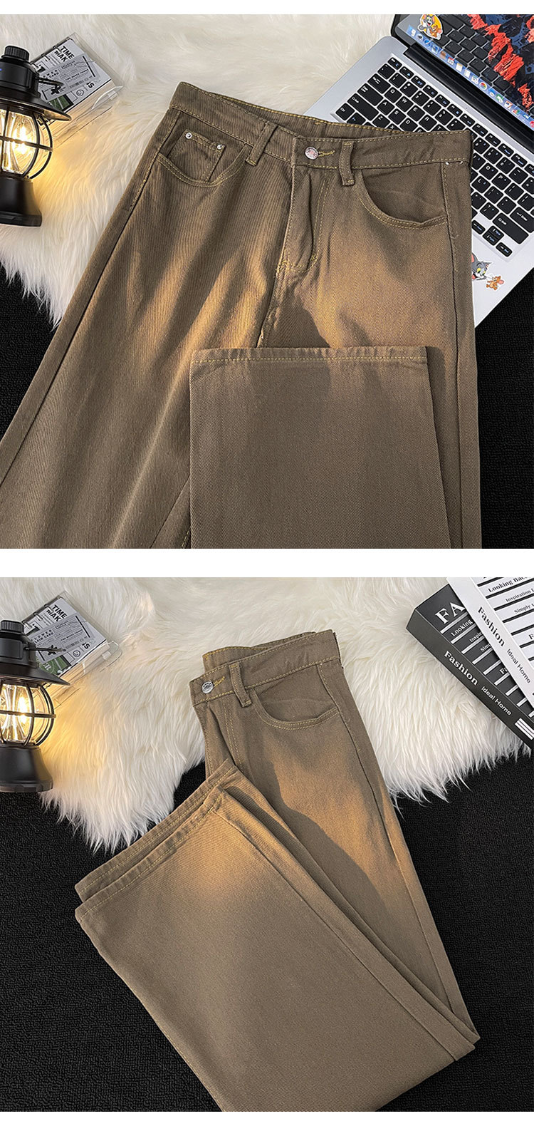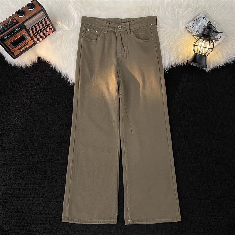 남성용 아메리칸 하이 스트리트 스트레이트 레그 바닥 길이 청바지, 레트로 디스트레스드 BF 루즈 캐주얼 슬리밍 워싱 와이드 레그 팬츠스토어 가기