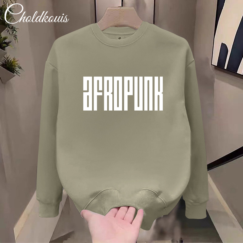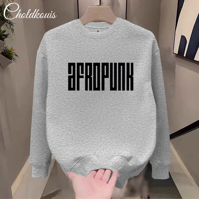 • 오트밀 그레이 라운드넥 스웨트셔츠 플러스 벨벳 스타일-801 [GL]
