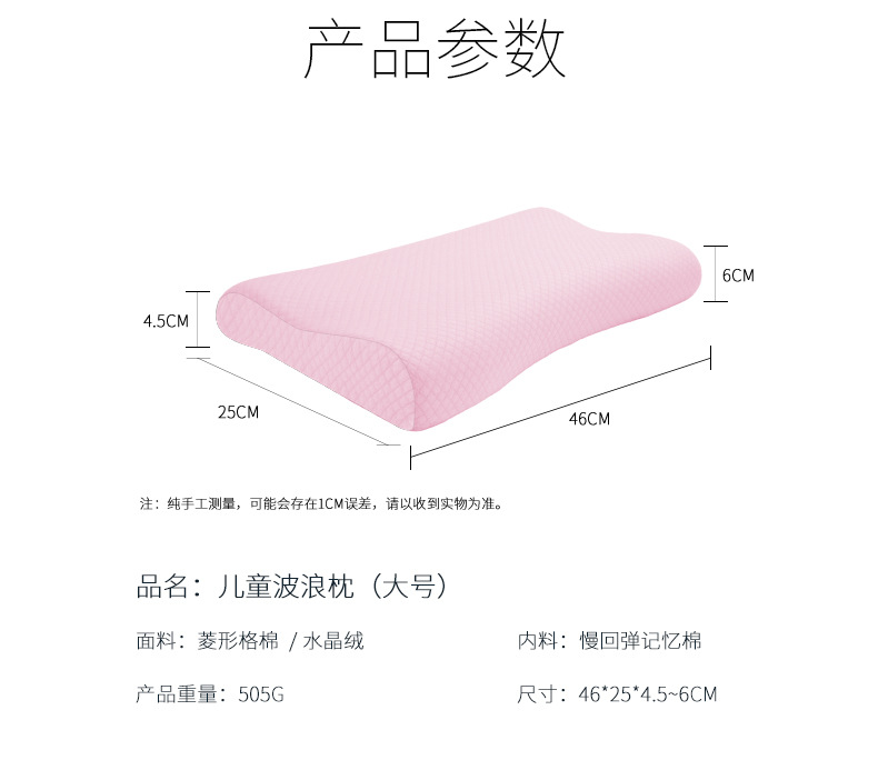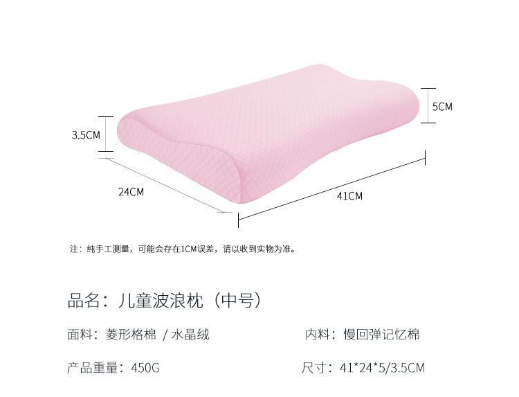 • 중형 어린이 물결 모양 수면 베개 핑크 벨벳