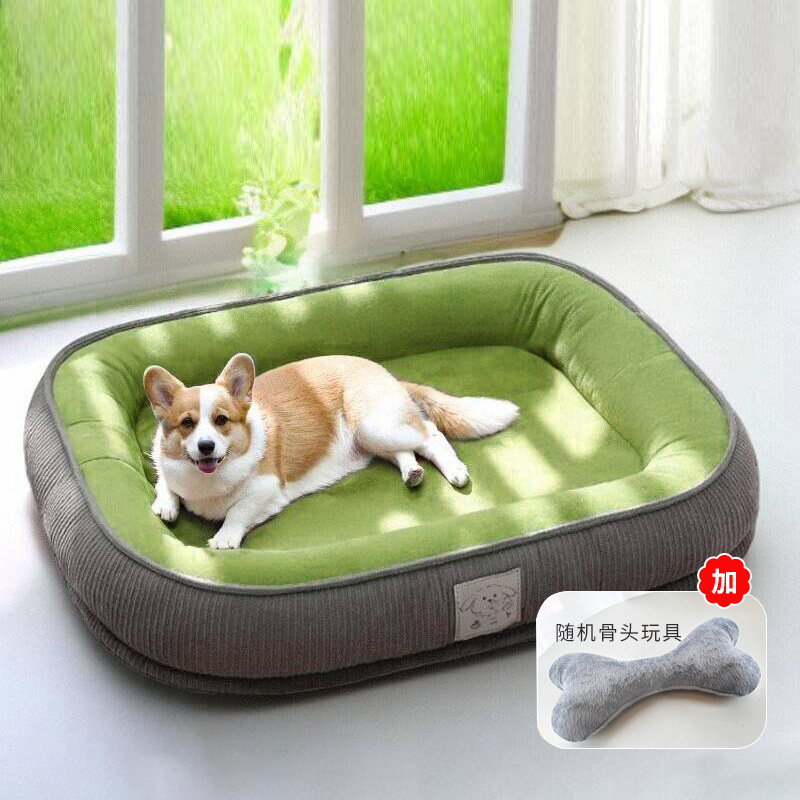 • [고급 애견집] 더블 레이어 고급 탈부착 및 세탁 가능한 그린 + 뼈 장난감