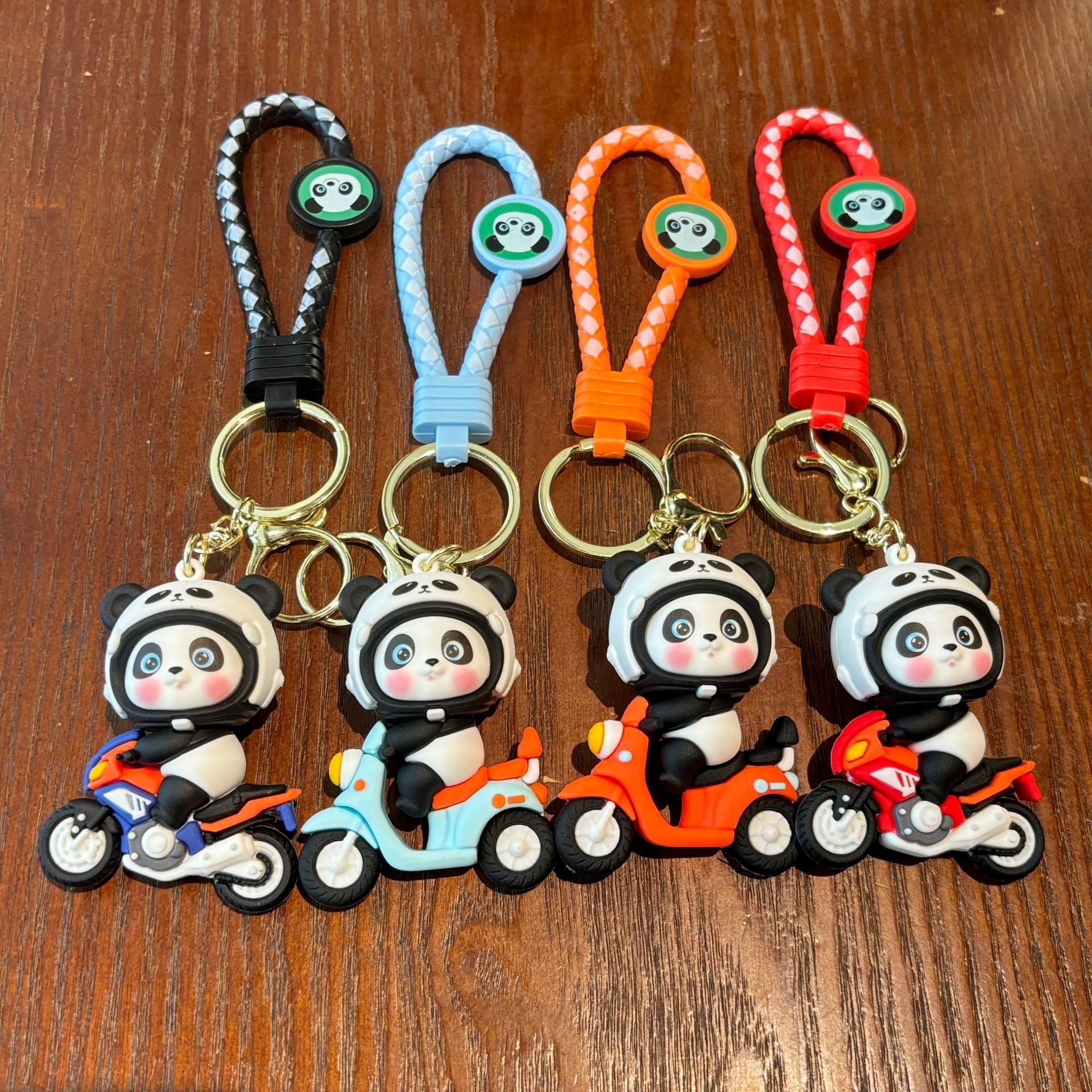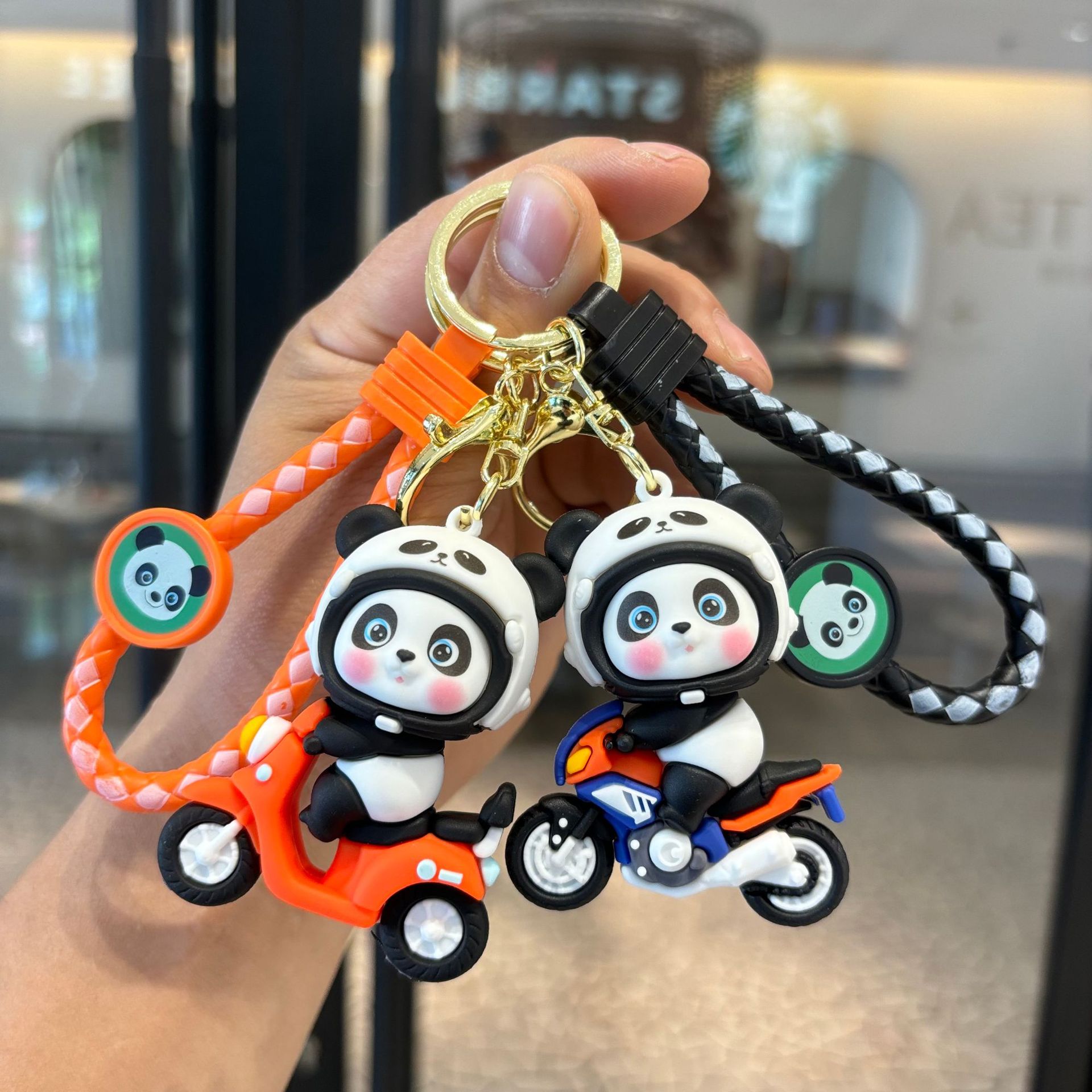 만화 빨간 팬더 전기 자동차 열쇠 고리 부드러운 고무 인형 자동차 열쇠 고리 학생 학교 가방 펜던트 작은 선물