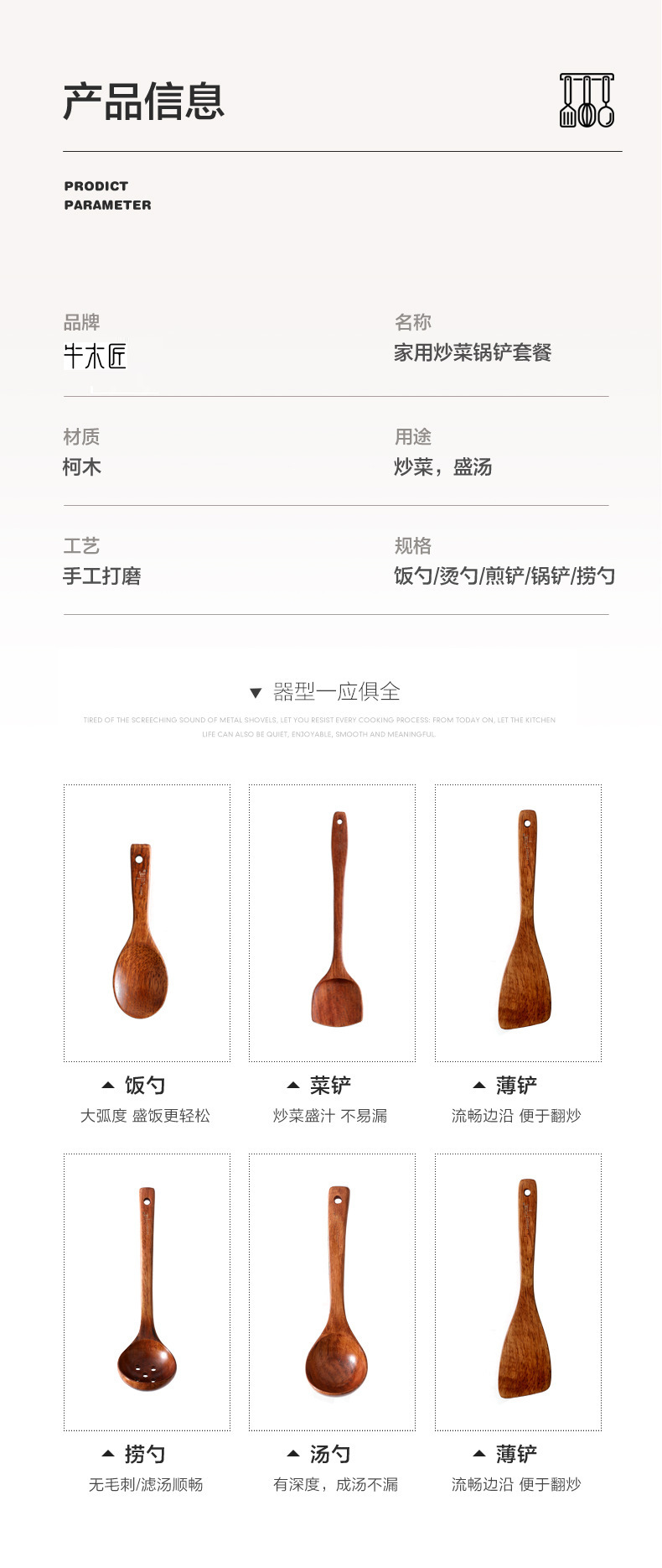 Niu Carpenter Kemu 주걱 수프 스푼 주방 용품 세트 요리 가정용 주걱 주걱 요리 나무 주걱 스푼 프라이팬스토어 가기