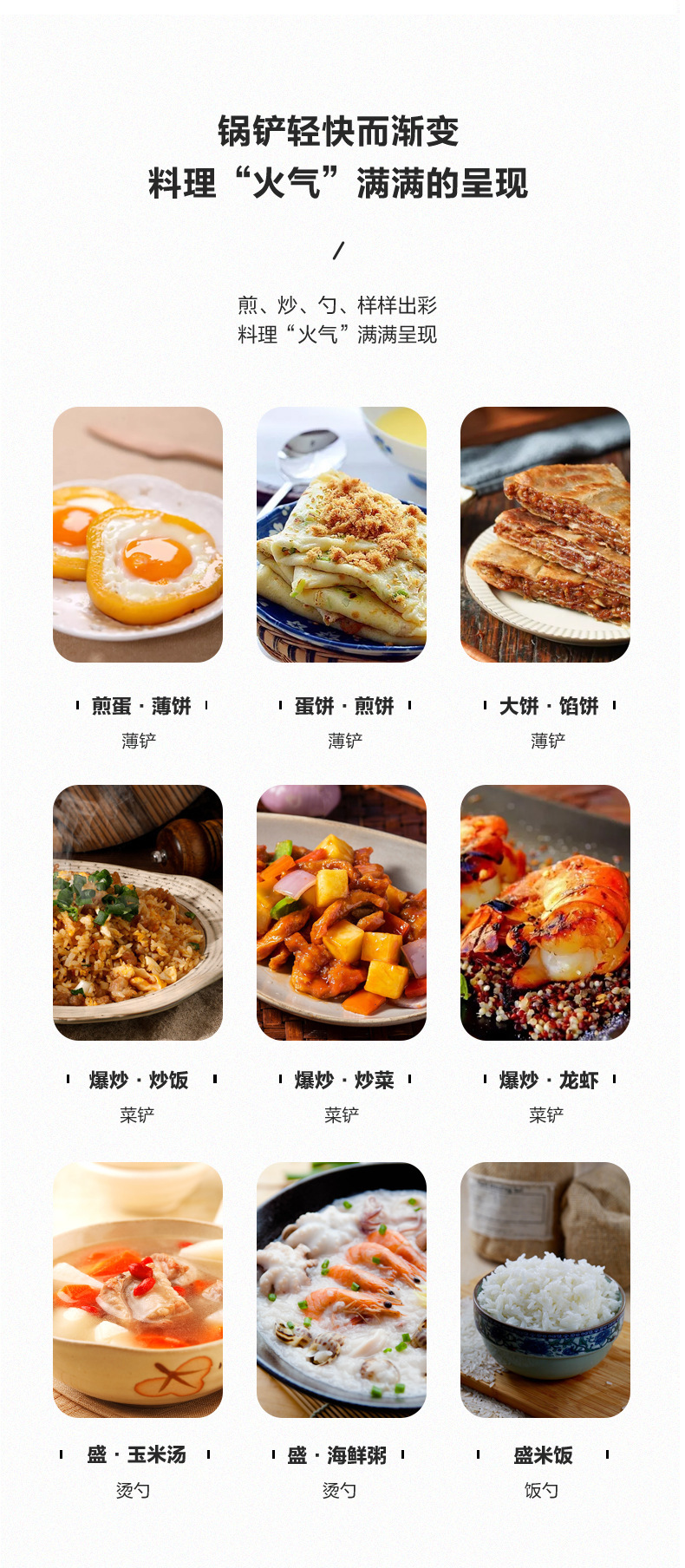 • 5종 세트(대형 주걱 + 경사 주걱 + 직선 손잡이 스푼 + 곡선 손잡이 스푼 + 깊은 주걱)
