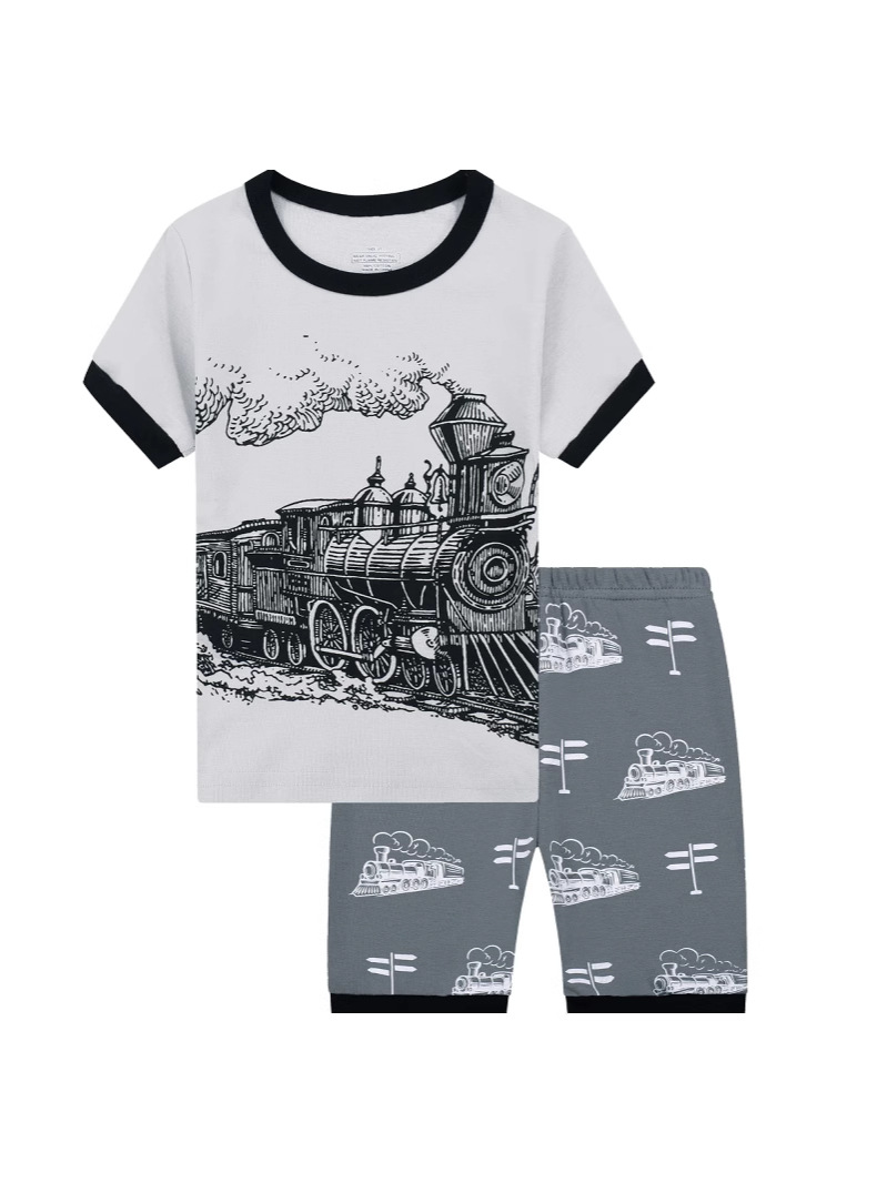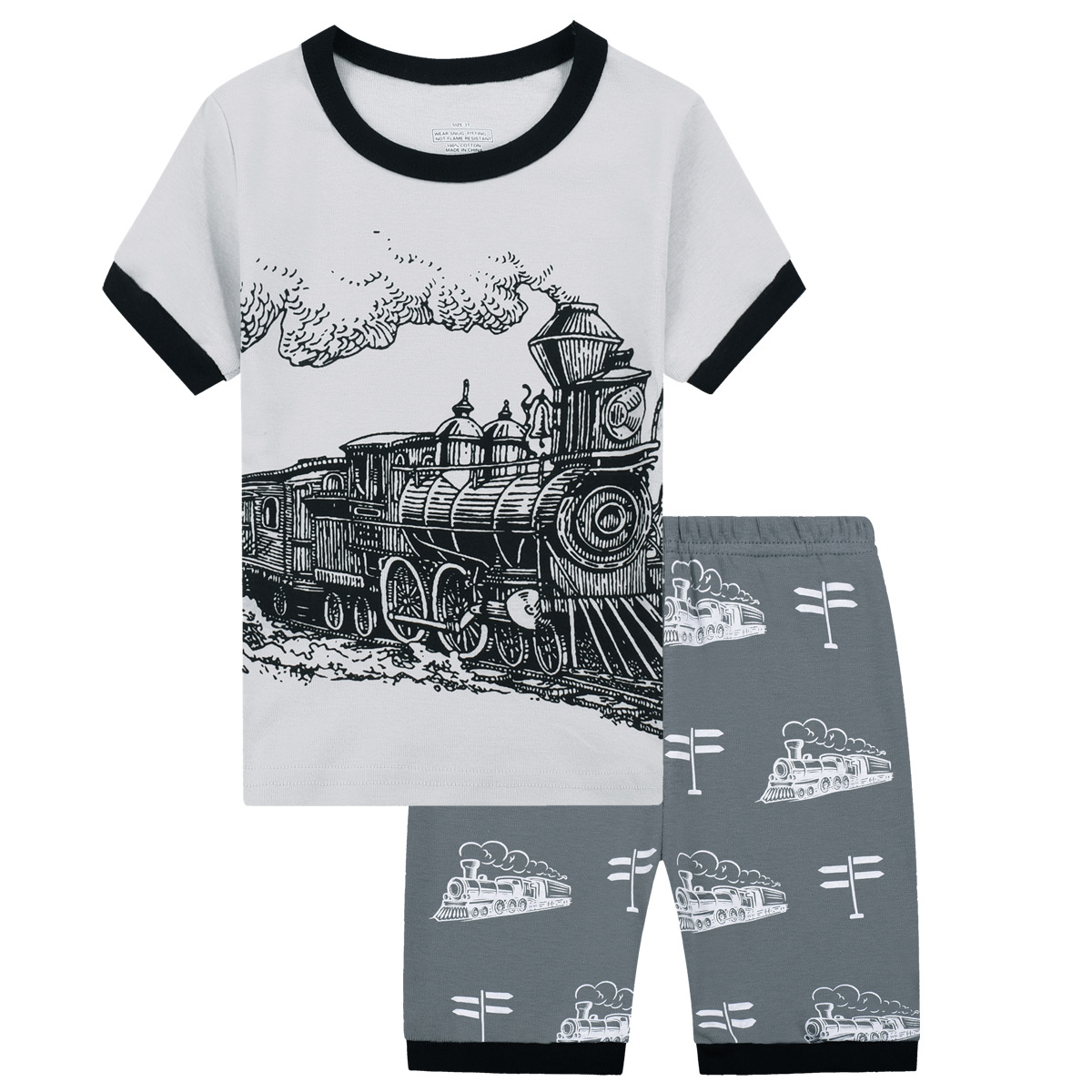 유럽과 미국의 어린이 착용 홈 옷 파자마 소년 여름 폭발 반팔 반바지 만화 기차 머리 세트