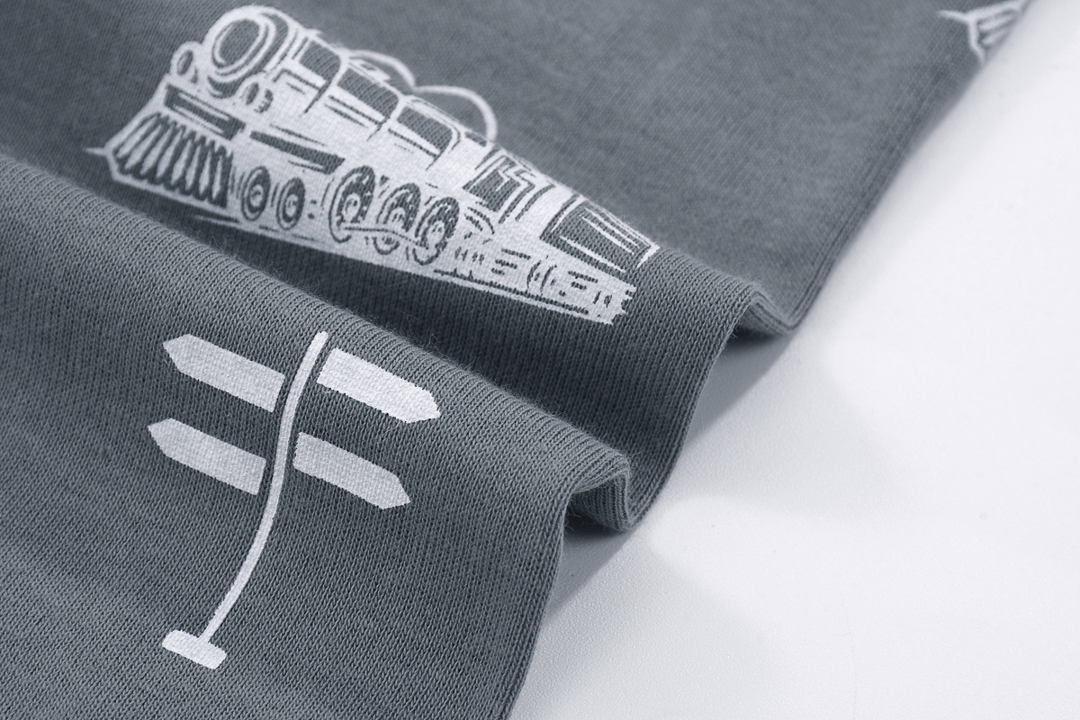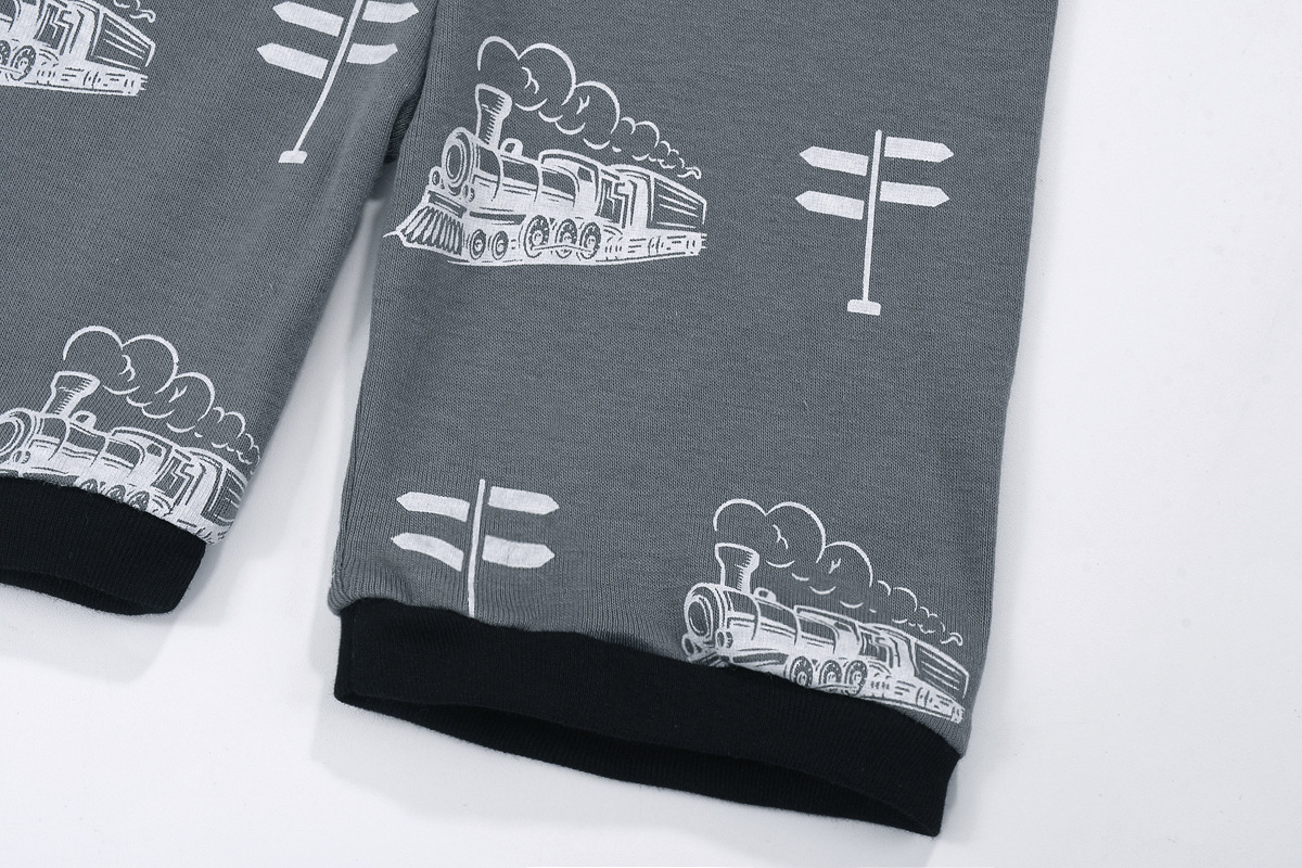 유럽과 미국의 어린이 착용 홈 옷 파자마 소년 여름 폭발 반팔 반바지 만화 기차 머리 세트스토어 가기