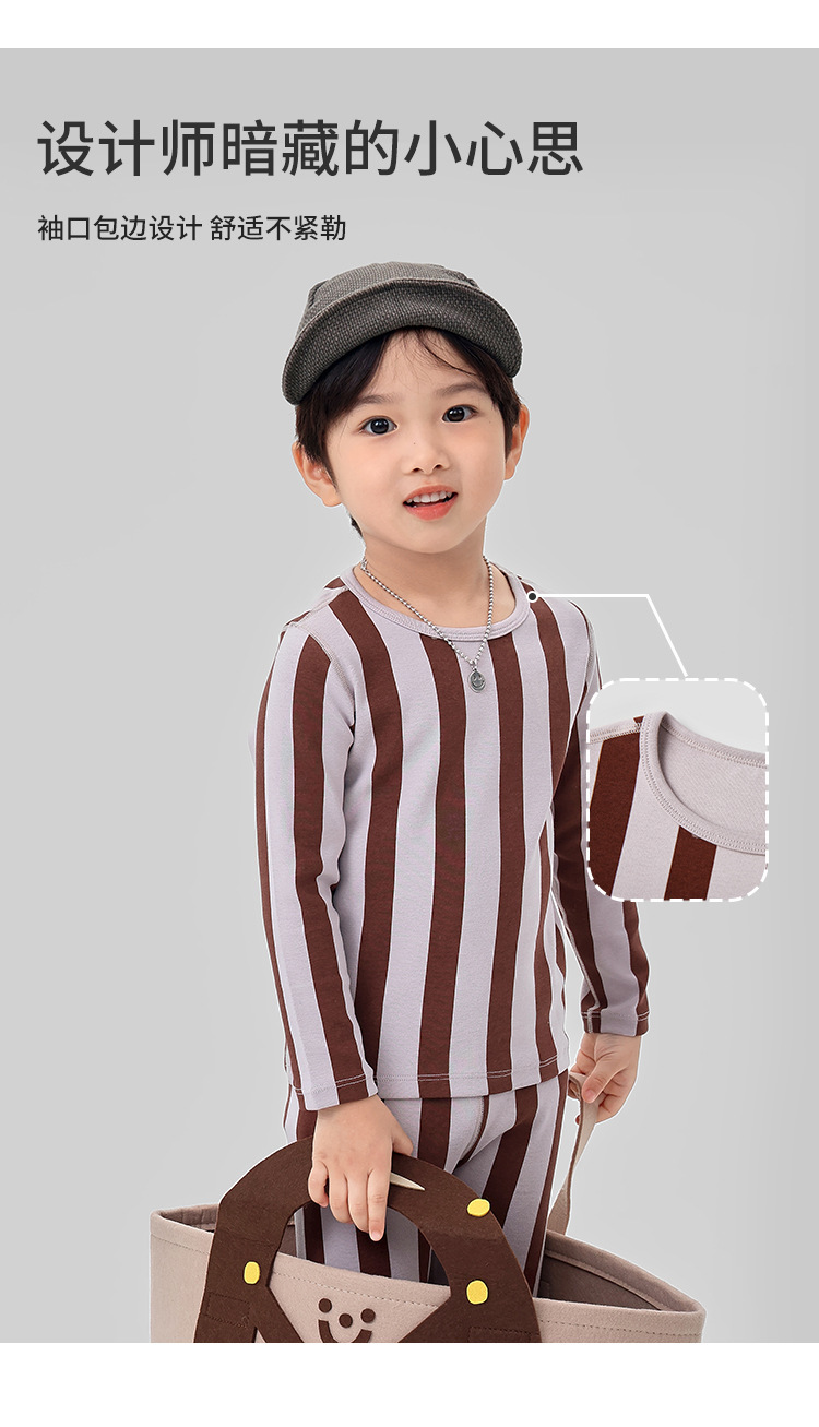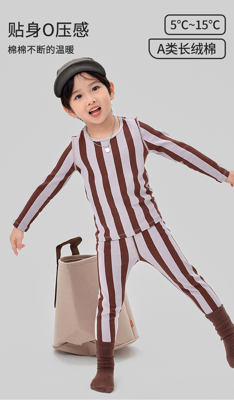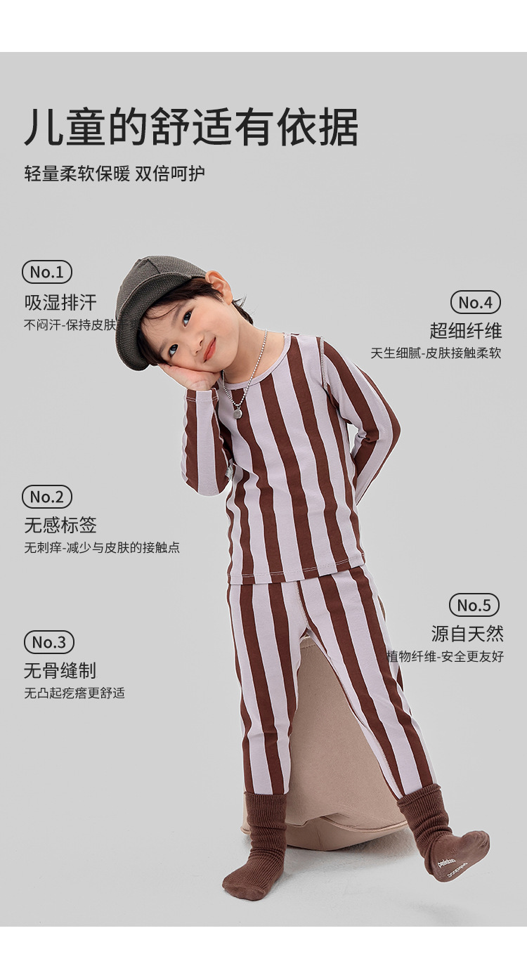 ZYZ 가을 겨울 신작 아동복 심플 스트라이프 보온 속옷 세트 A급 울 풀업 아동 잠옷