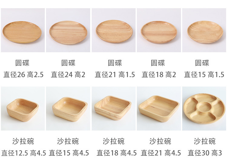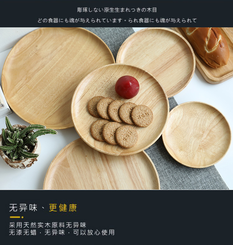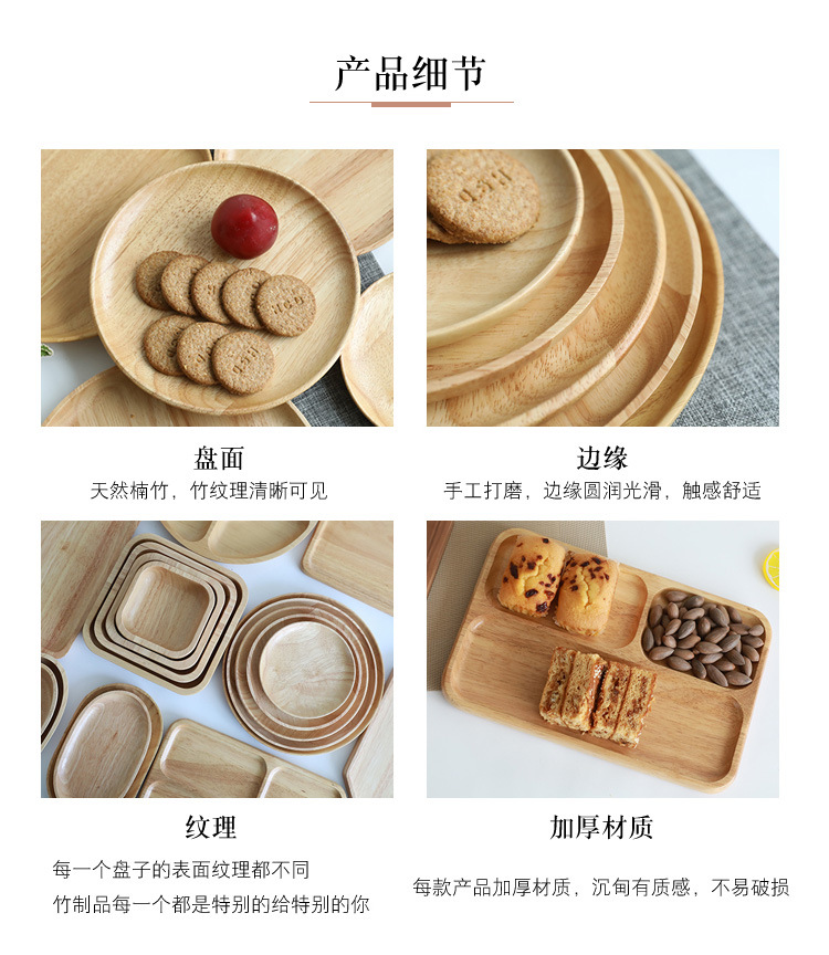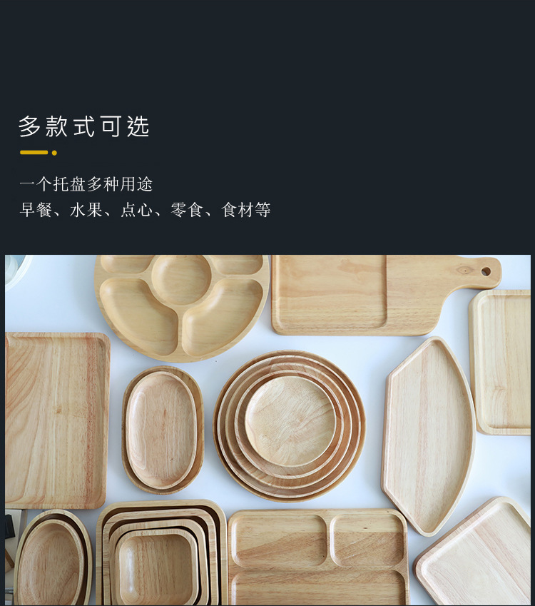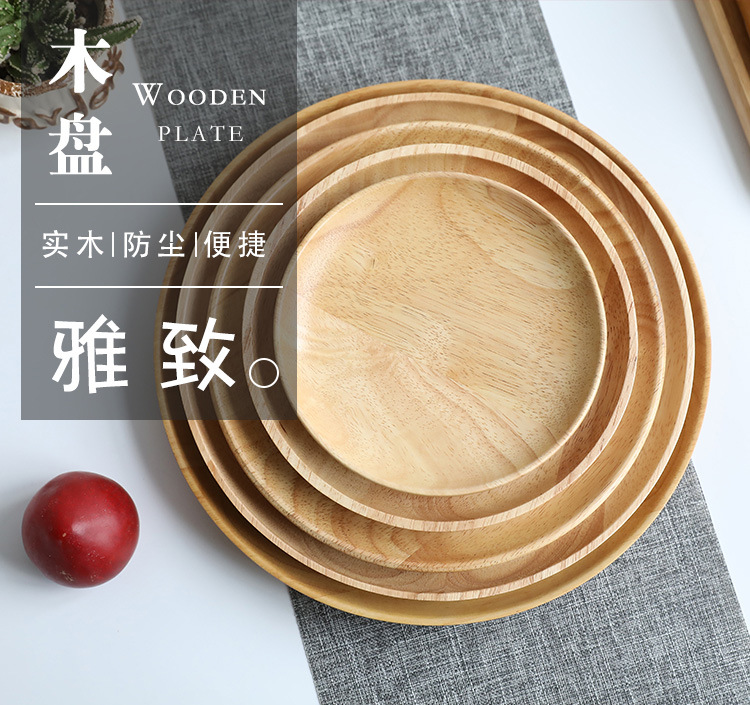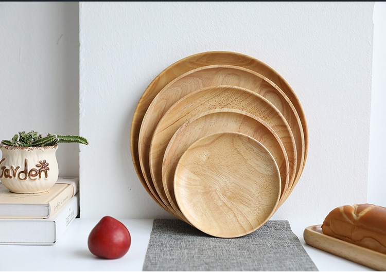 플레이트 고급스러운 스타일 도매 디너 플레이트 나무 접시 고무 나무 나무 단단한 나무 나무 트레이스토어 가기