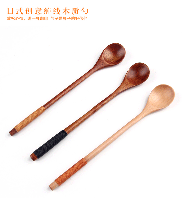 도매 고급 커피 스푼, 교반 스틱, 쌀 스푼, 와이어 감싸진 나무 스푼, 긴 손잡이 스푼, 가정용 나무 스푼
