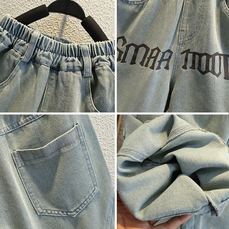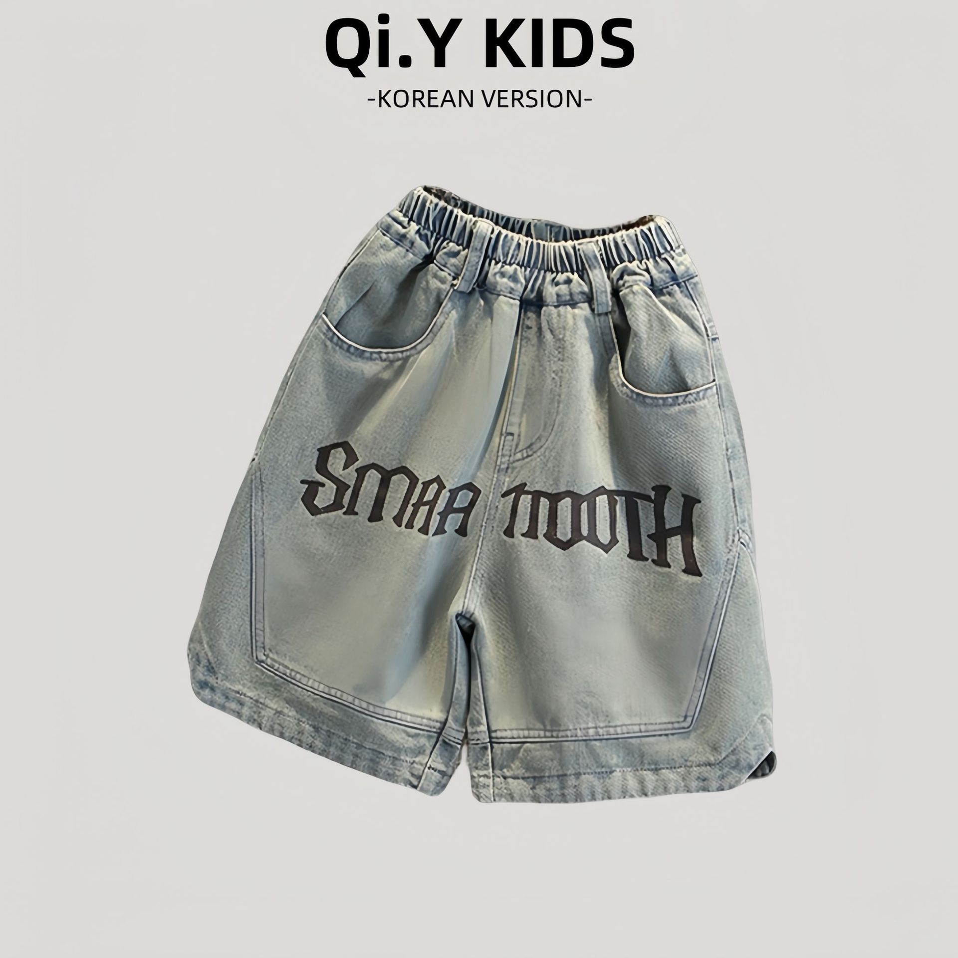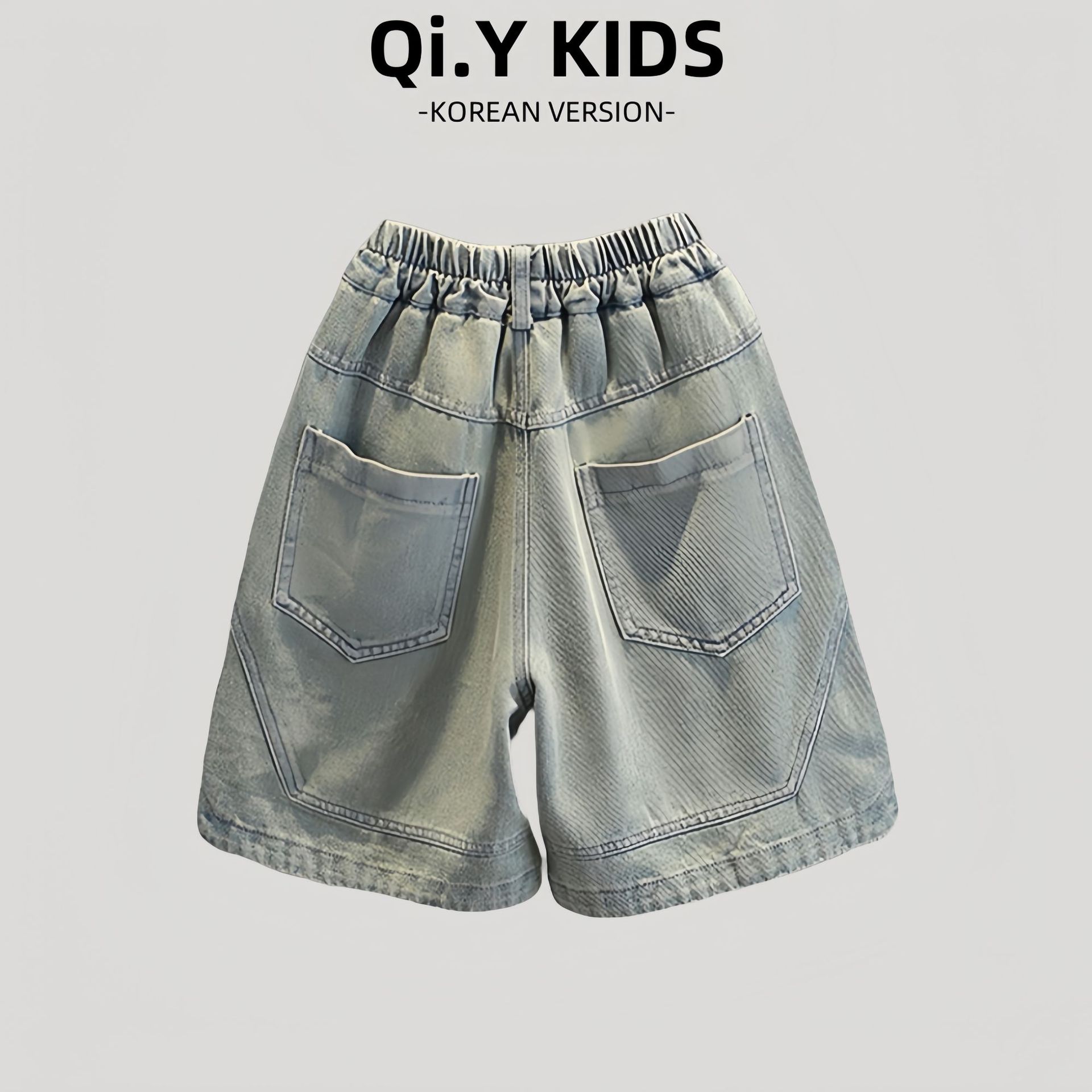 남자들의 여름 데님 반바지 2025 여름 새로운 서양식 어린이 얇은 바지 한국 캐주얼 바지 유행스토어 가기