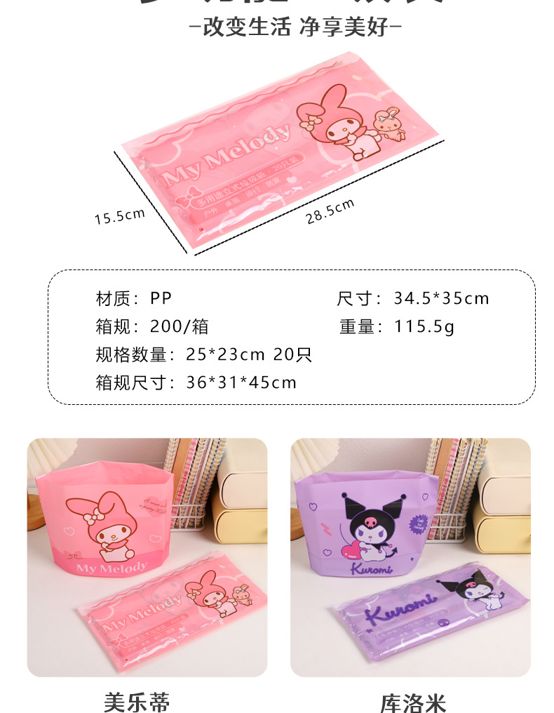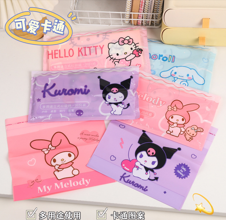 산리오 정품 공인 자동차 쓰레기 봉투 일회용 책상 접착식 다기능 쓰레기 봉투 청소 봉투