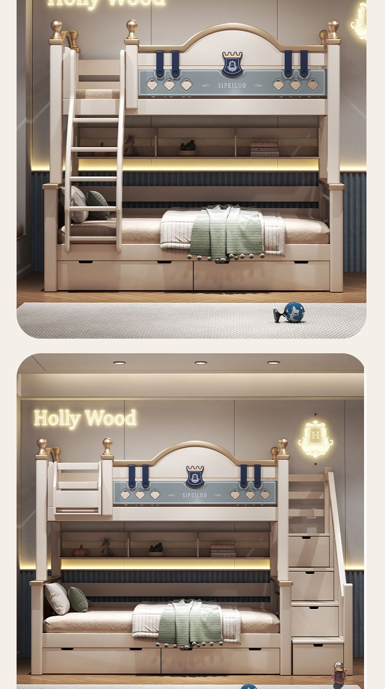 체리우드 이층침대, 이층침대, 다기능 조합 하이앤로우 침대, 공주침대, 이층침대