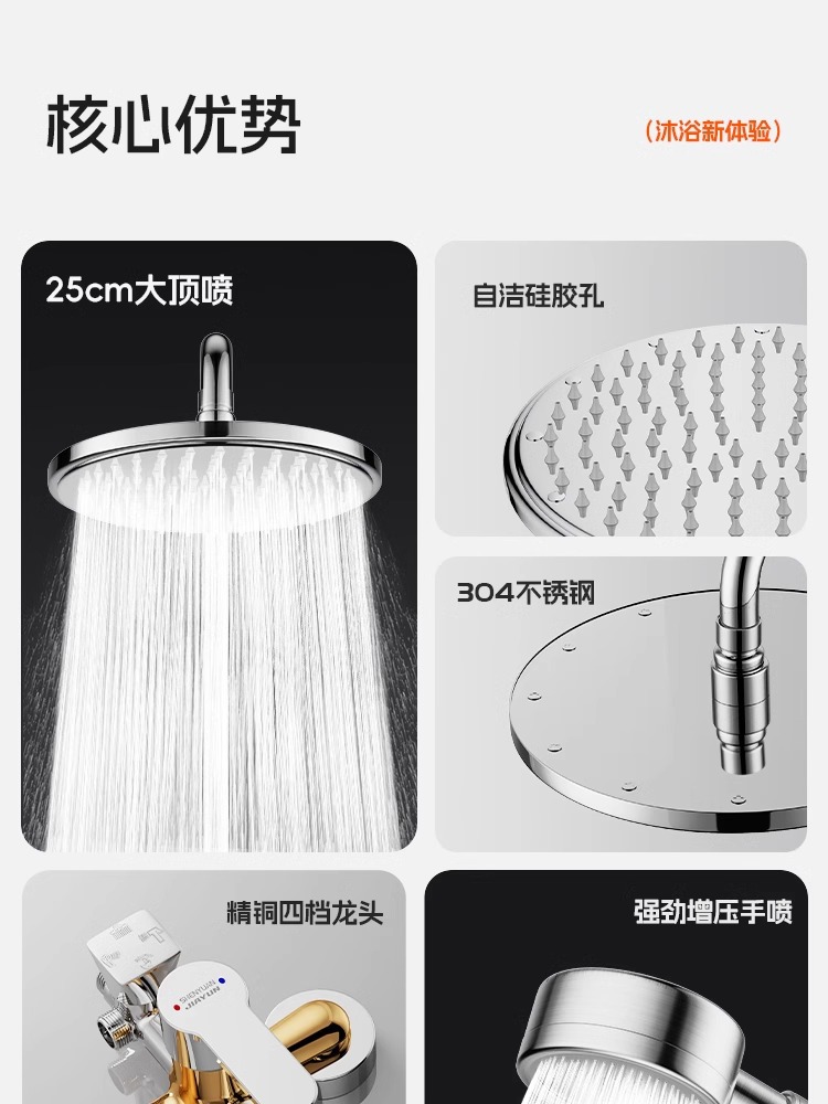 욕실 304 스테인레스 스틸 샤워 세트, 욕실 항온 정밀 구리 욕실 용품 목욕 부스터 세트