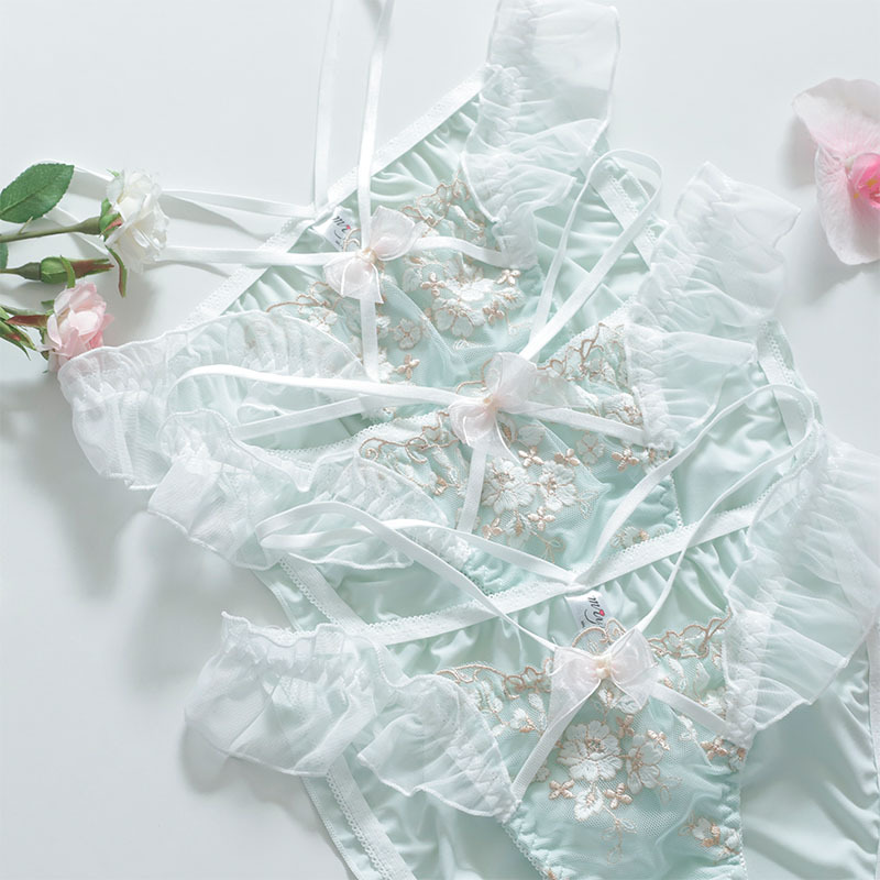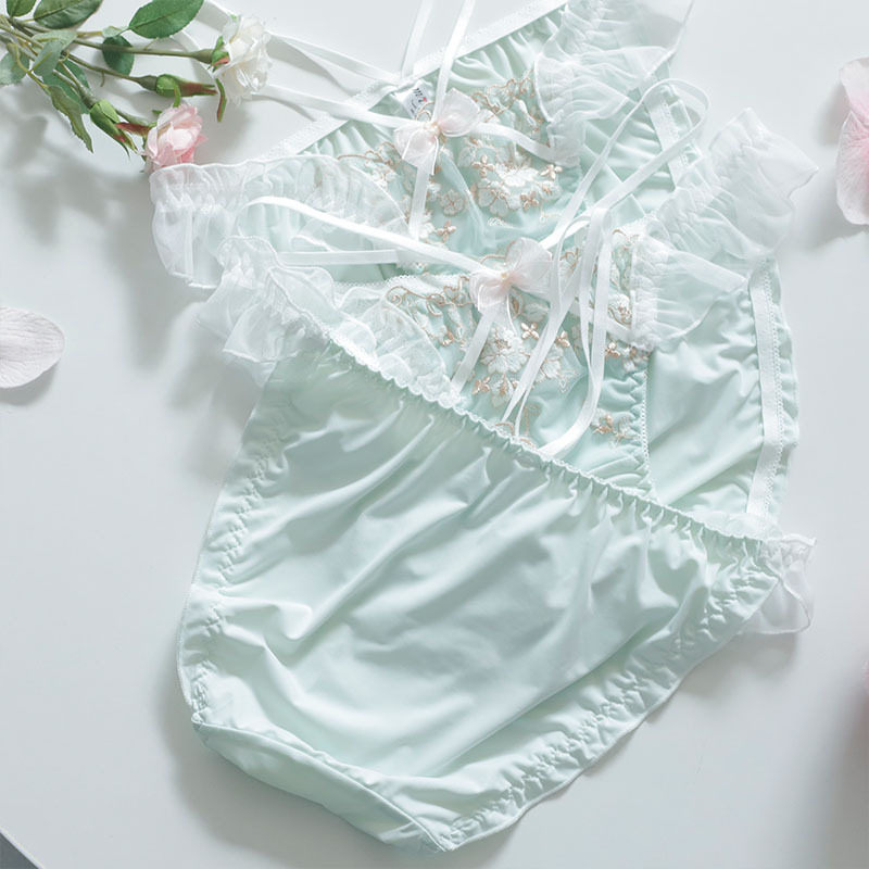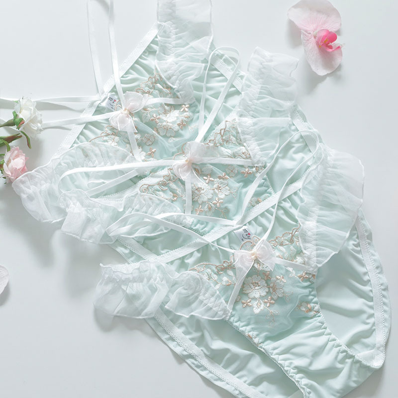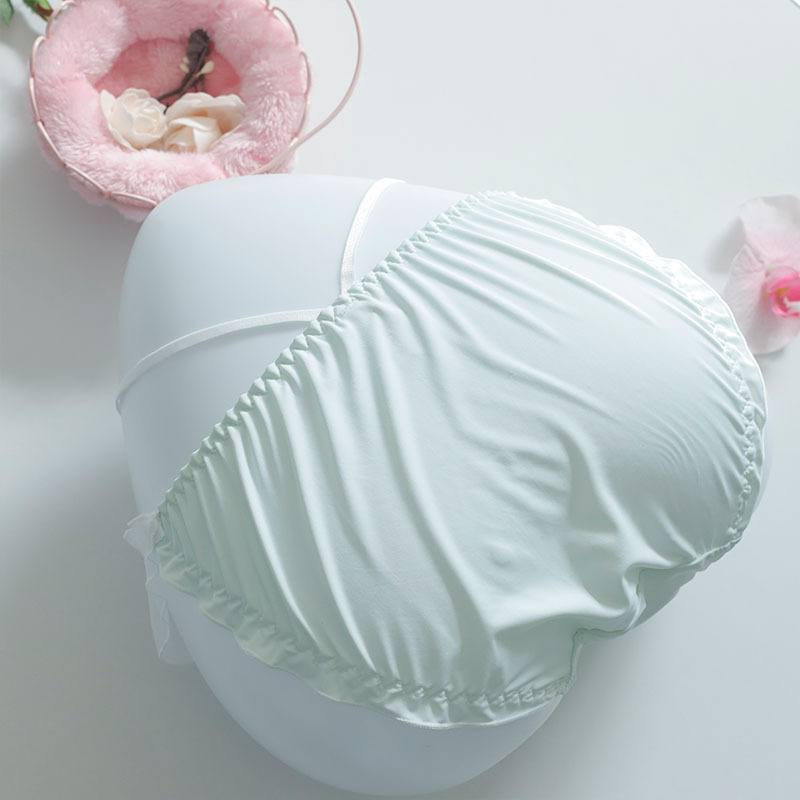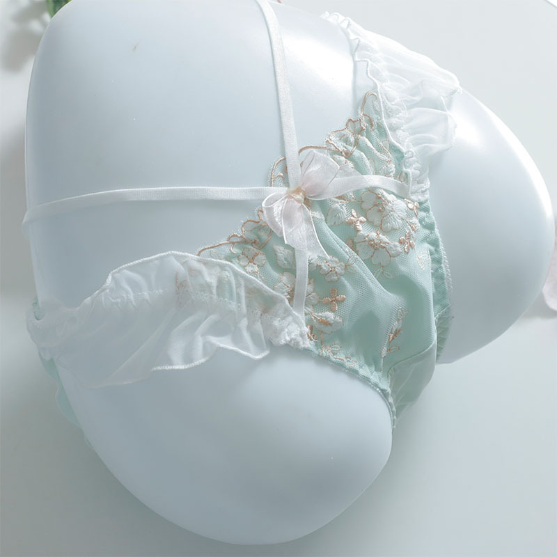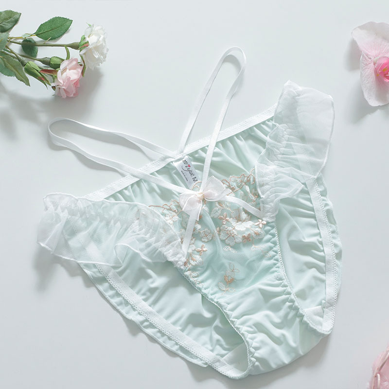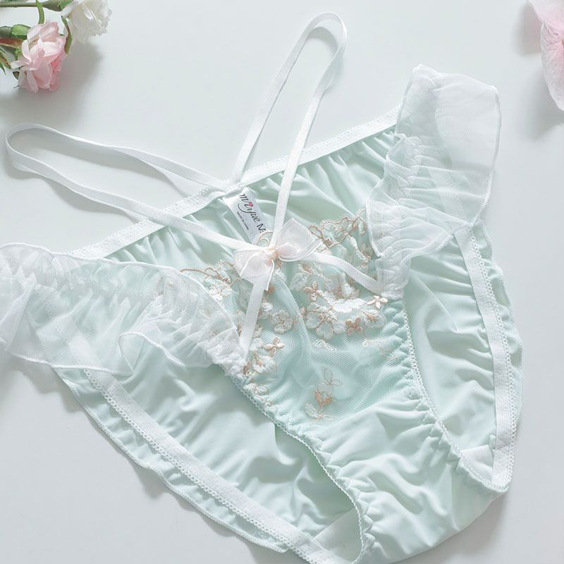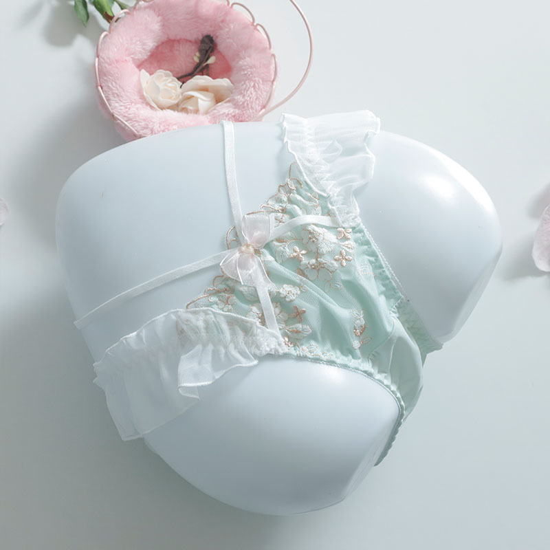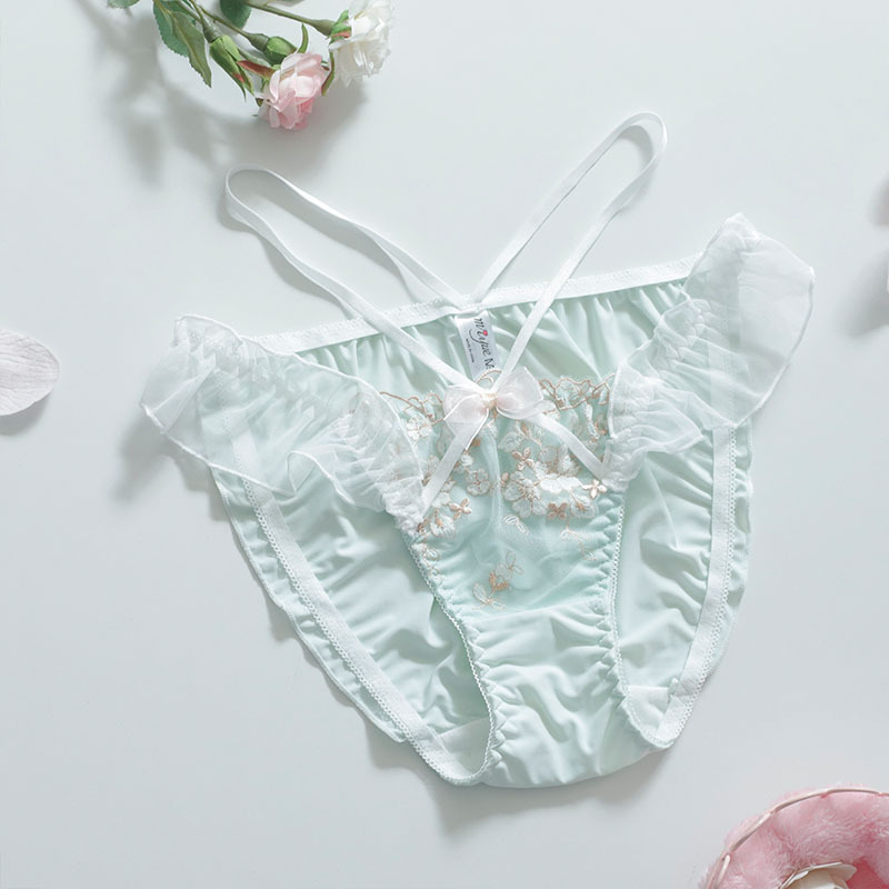 새로운 여성 속옷 로우 웨이스트 아이스 실크 자수 녹색 플라잉 에지 섹시하고 매력적인 여학생 시원하고 통기성이 뛰어난 반바지