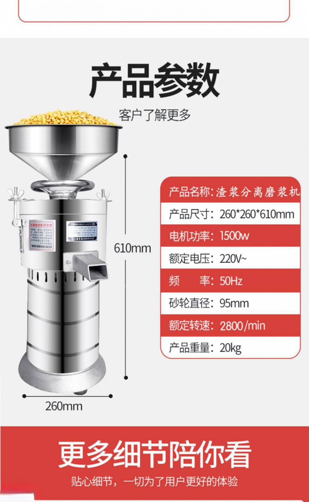 상업적인 작은 콩 우유 분쇄기 두부 기계 가구 잔류 펄프 자동적인 분리 펄프 두드리는 도야 꽃 기계 물 밀스토어 가기