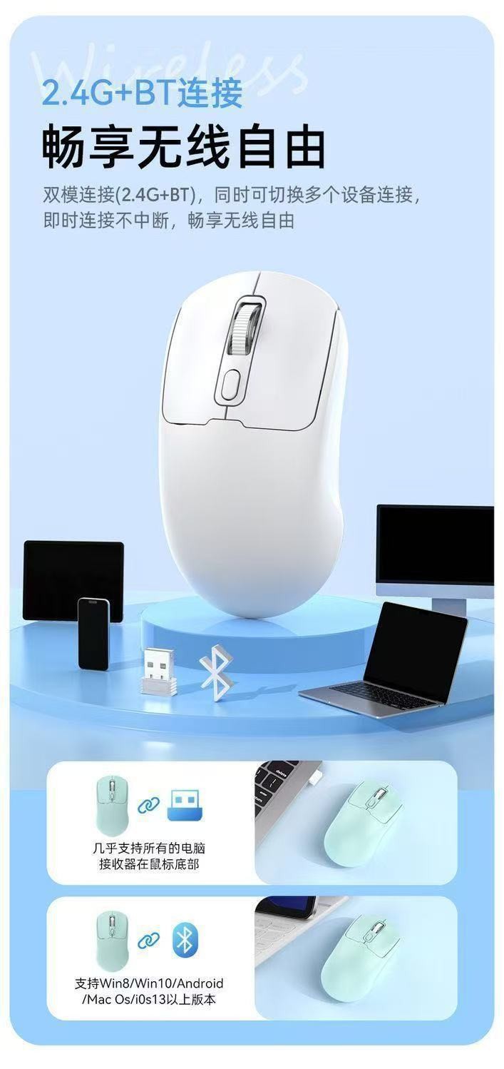 소스 공장 도매 재고 블루투스 마우스 2.4G 듀얼 모드 게임 비즈니스 오피스 뮤트 듀얼 모드 무선 마우스
