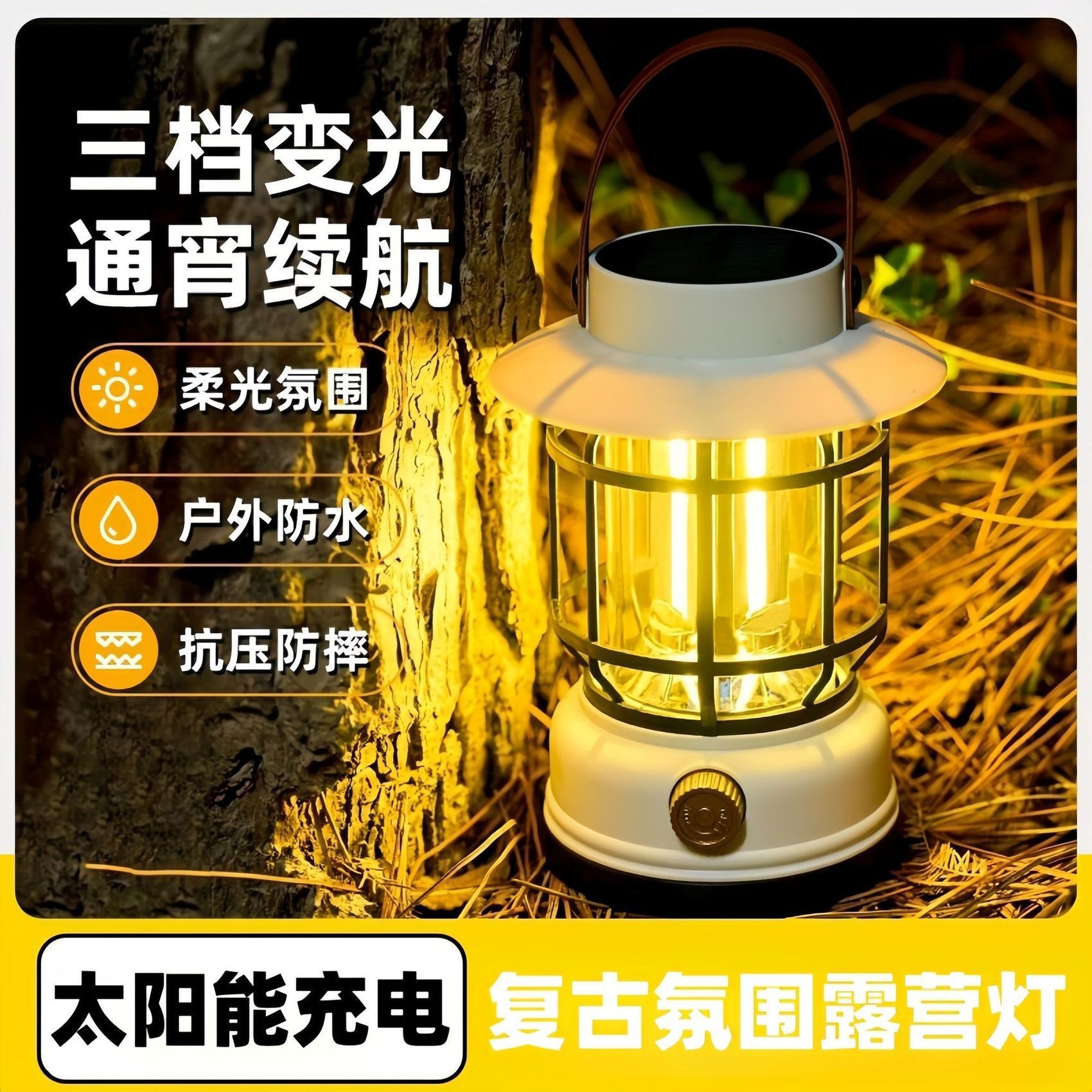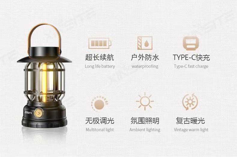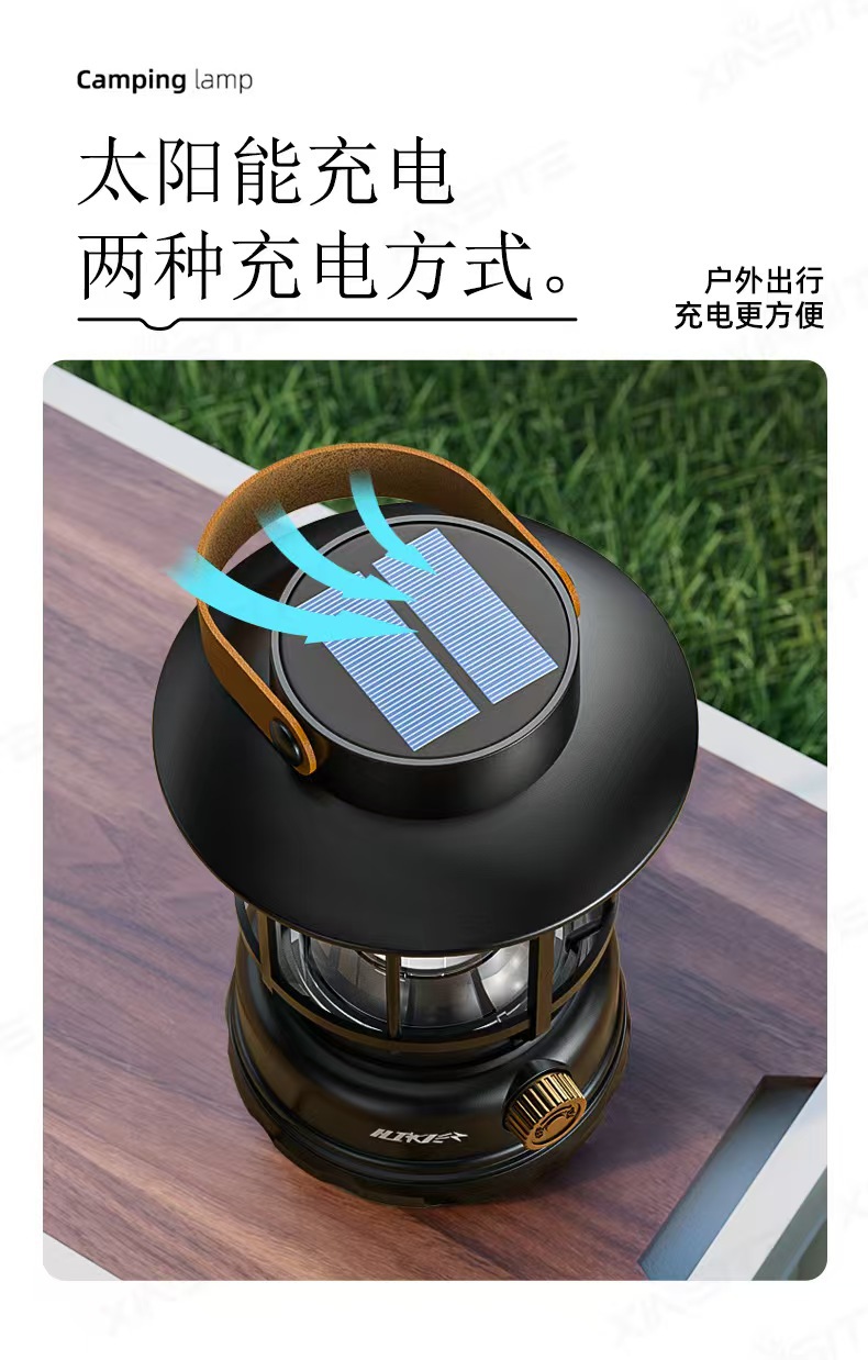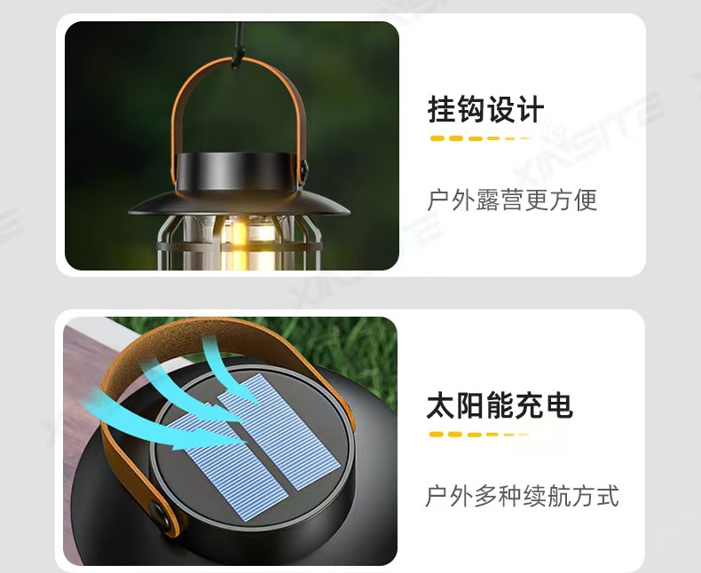 태양광 캠핑 램프, 캠핑 램프, 충전식 휴대용 야외 조명, 긴 배터리 수명 캠프 텐트 램프, 복고풍 말 랜턴