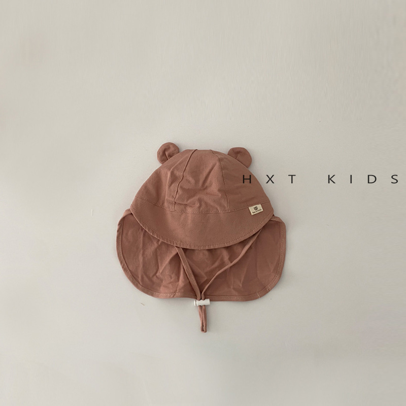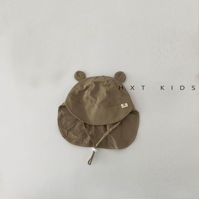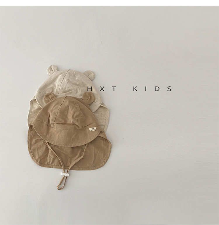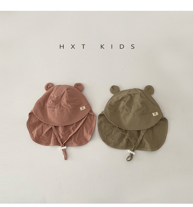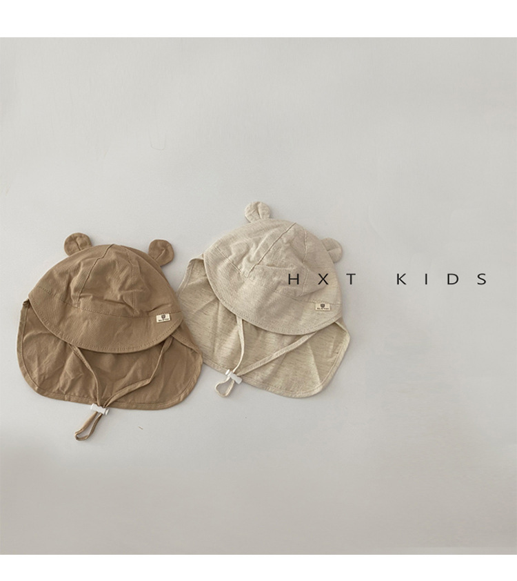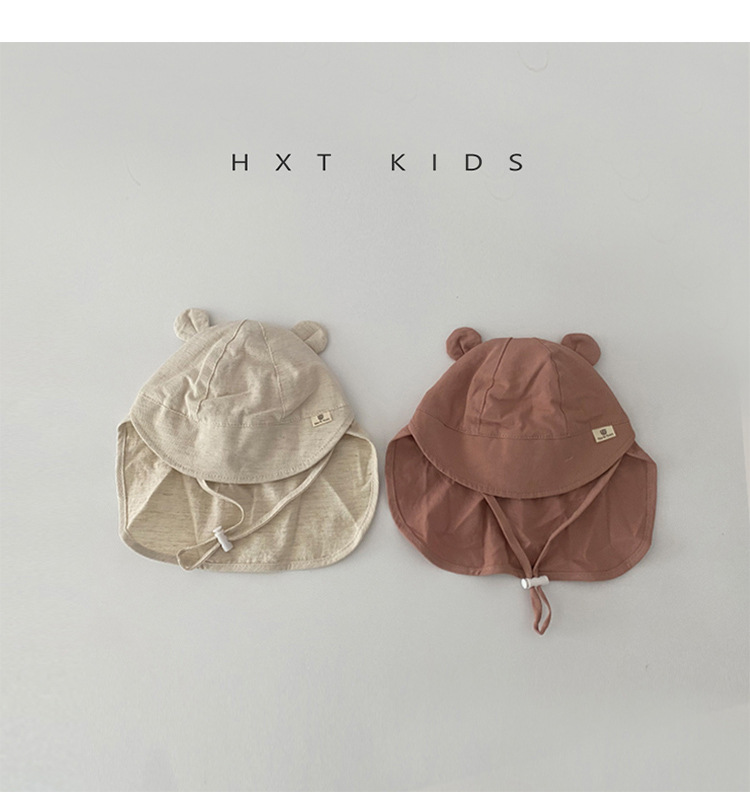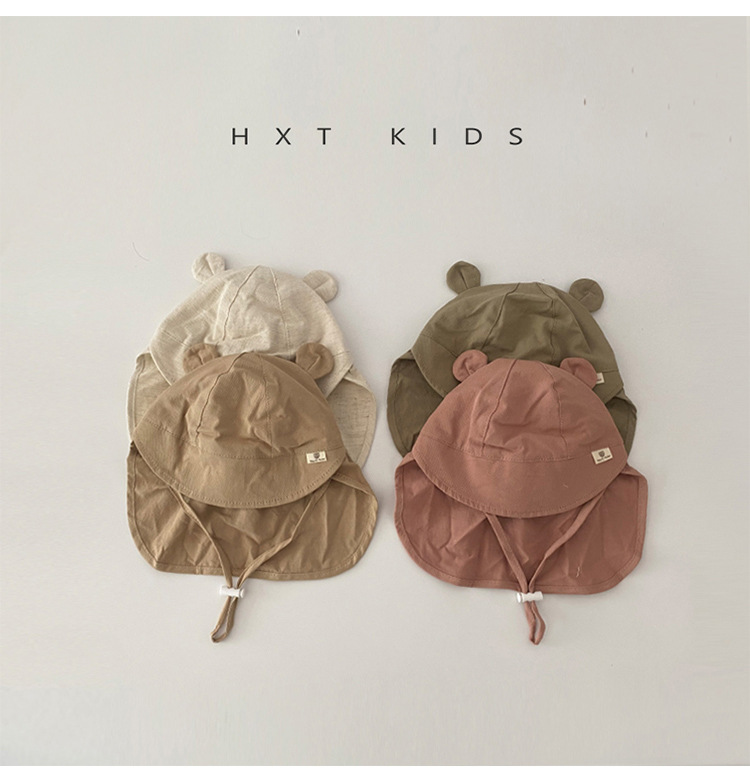 아기 모자 봄과 가을 얇은 스타일 슈퍼 귀여운 곰 태양 보호 목도리 모자 유아 아기 레이스 업 태양 보호 모자 여름