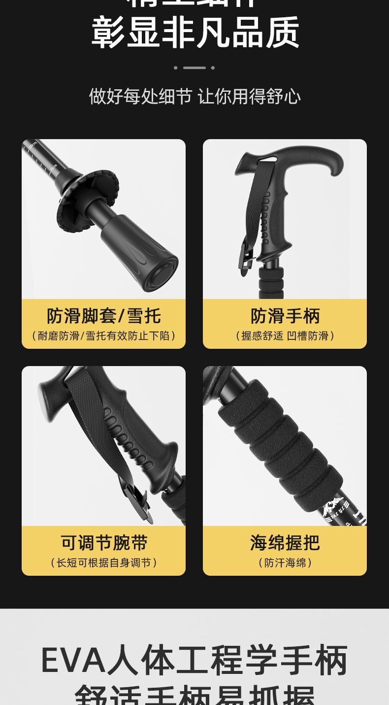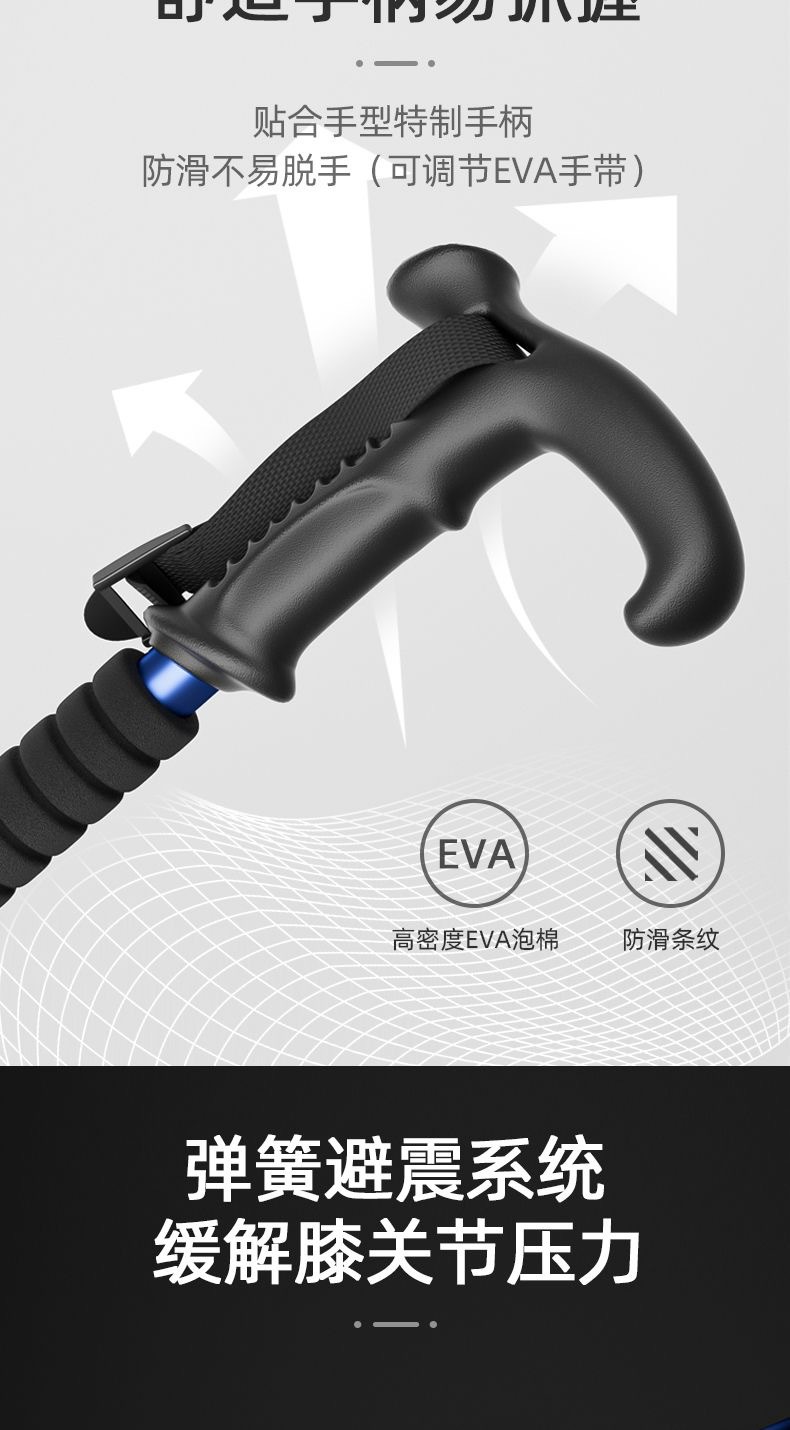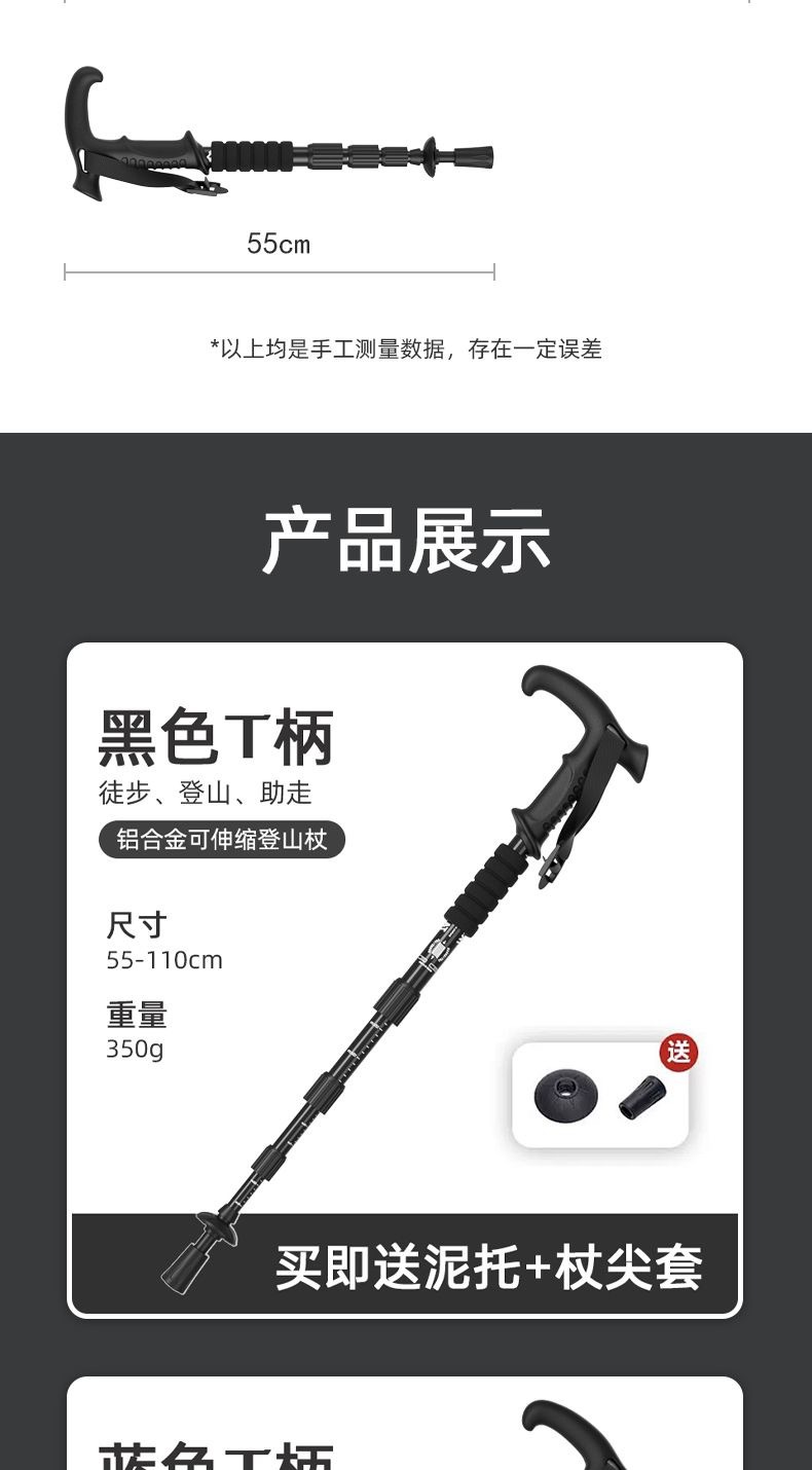 곡선 손잡이 T 손잡이 직선 손잡이 트레킹 스틱 알루미늄 합금 텔레스코픽 지팡이 야외 하이킹 크로스 컨트리 조절 가능한 경량 지팡이