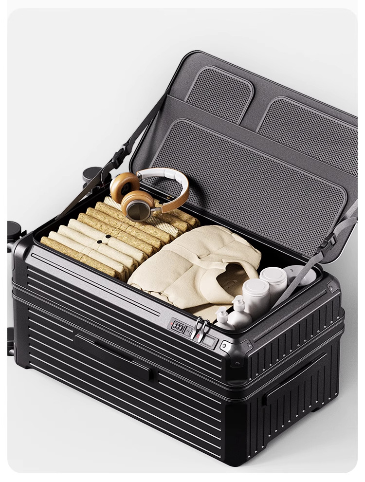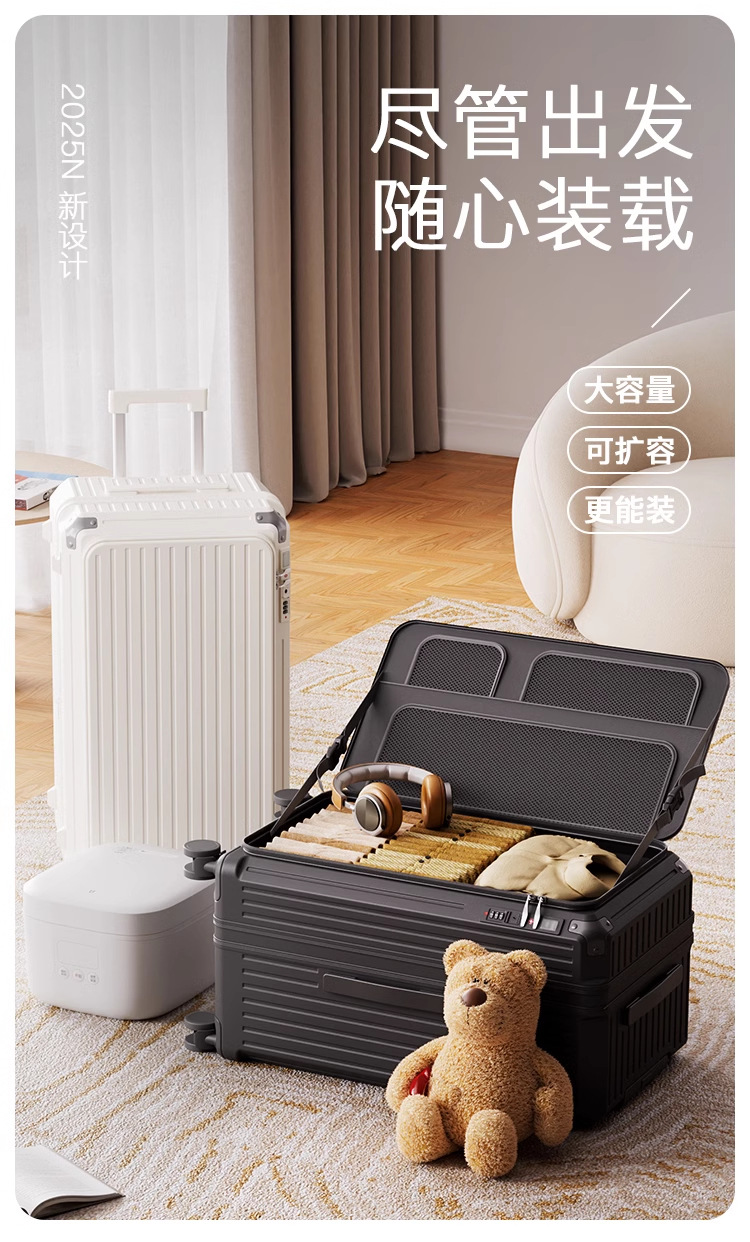 전면 개방형 뚜껑 트렁크, 대용량, 확장형, 새로운 트롤리 케이스, 여성용 비밀번호 가죽 케이스, 남성용 여행용 케이스, 긁힘 방지